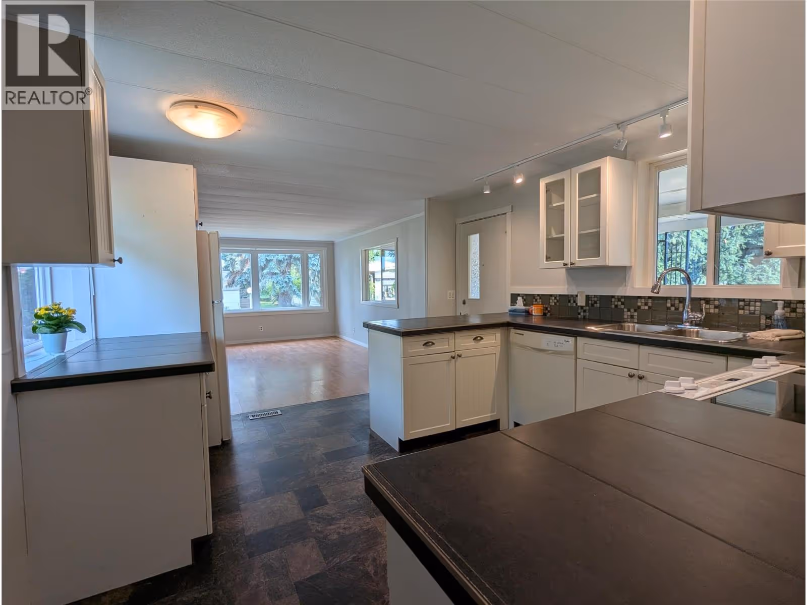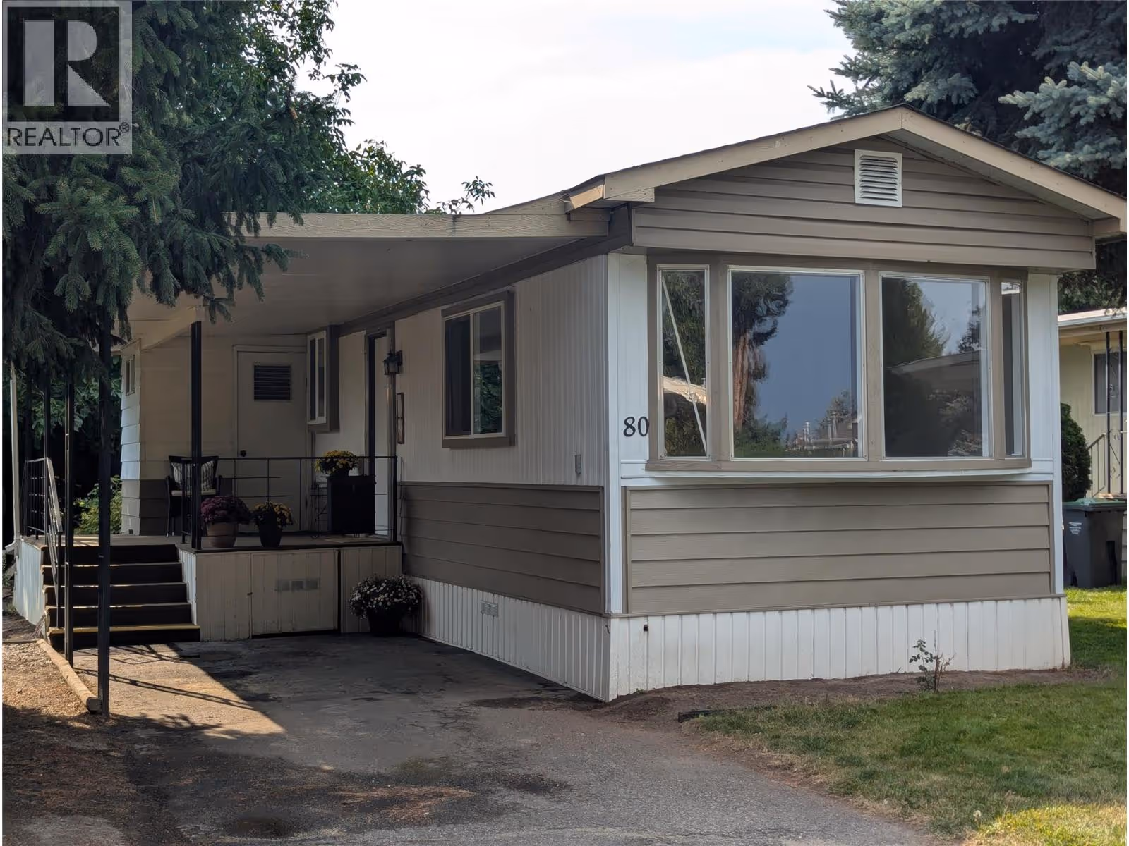 Great value in a beautiful park steps to Gyro Beach, shopping, services and all that South Pandosy has to offer. This home has been newly painted and shows very well. Open plan with a newer kitchen, windows and roof and a covered cosy porch. There is a large shed and covered parking and a second open parking spot. The lot backs onto a green space with lots of shaded outdoor area in the quietest section of the park. The park allows pets with approval, is 55+ age restricted and no rentals are allowed. RV/ Boat storage available $75/Month. Although the park was sold to a developer 6 years ago there are no present plans to develop. In the case of development the owners are entitled to the assessed value as per the provincial guidelines. Come and view today! This home ticks all the boxes. (id:58842)