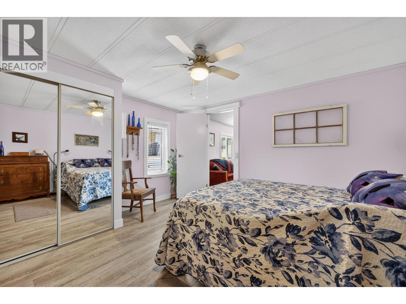 Welcome to easy, carefree living in this beautifully updated 2 bed, 2 bath home in a sought-after 55+ community. If you’re ready to downsize your space but upgrade your lifestyle, this is it. Inside, everything has been thoughtfully refreshed with new flooring throughout, modern trim, new drywall, and a bright, clean feel that makes the home feel like new. The smart split-bedroom layout offers great privacy for guests, while both bedrooms are generously sized, easily fitting king beds. The kitchen is fresh and functional with new cabinetry, countertops, a charming coffee nook, and a moveable island for added flexibility. Just off the deck, a separate bonus room offers the perfect space for a home office or extra guest area. Key updates like a newer furnace/AC and hot water tank mean peace of mind. Step outside and this is where the lifestyle really shines. The private yard has been beautifully landscaped with new garden beds, rockwork, and patio areas. Enjoy your covered deck, relax under the gazebo, or putter away in your own “he shed/she shed” setup, complete with a powered shed and greenhouse. Located just minutes from Gallagher’s Golf, wineries, and trails right out your back door, this is the perfect spot for golf lovers or anyone looking to enjoy the Okanagan lifestyle. Whether you’re heading south for the winter or simply want a low-maintenance home base, this property makes it easy to lock up and go. Move-in ready, low maintenance, and designed for living, not upkeep. (id:58842)