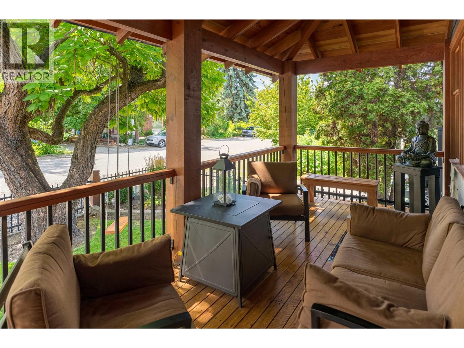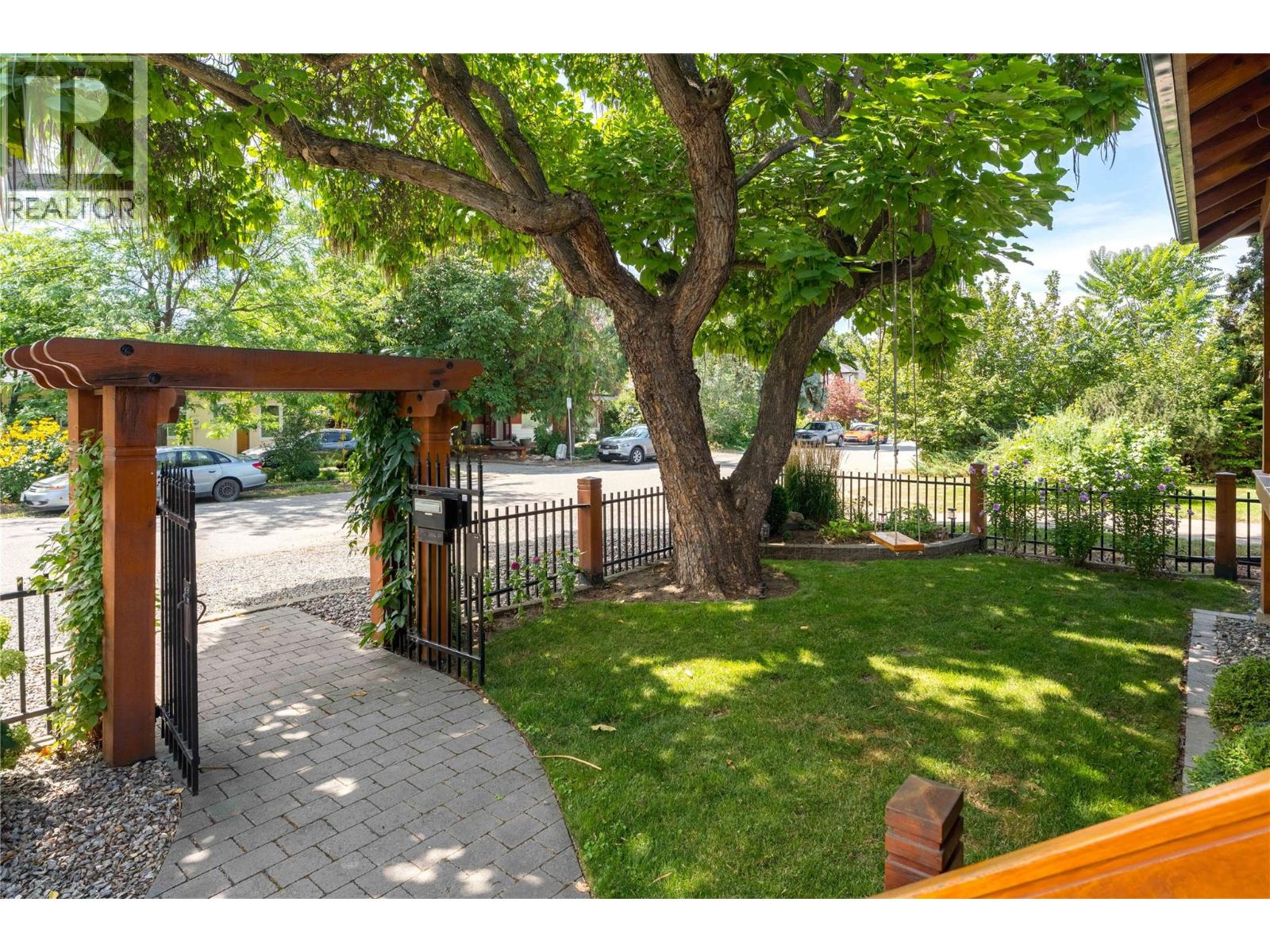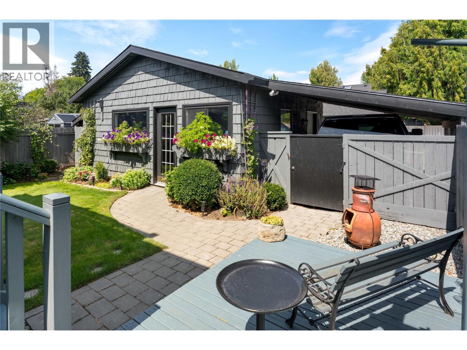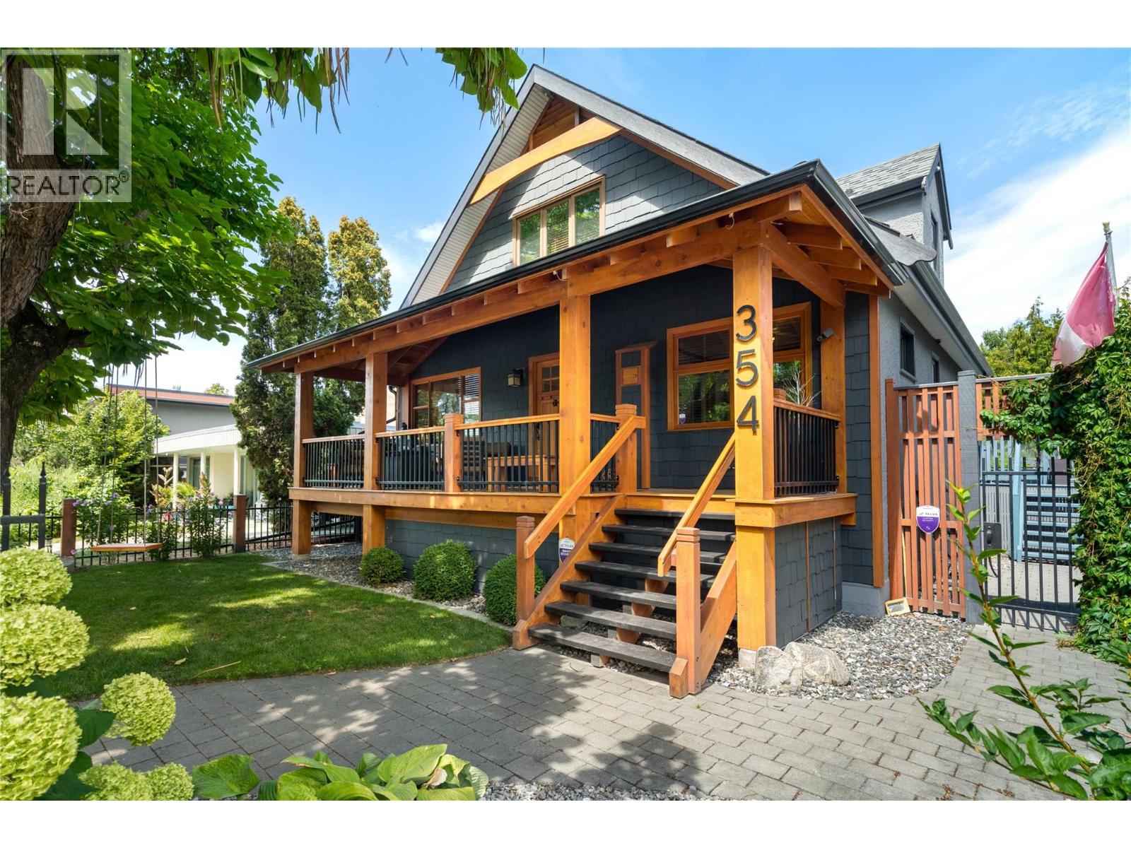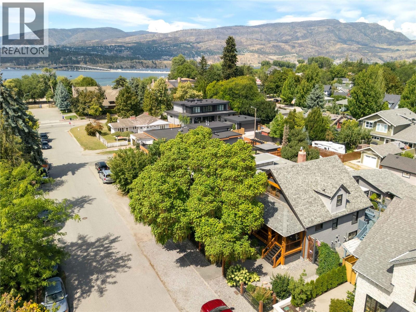 A rare offering just steps to the sand—where timeless design meets daily luxury in one of Kelowna’s most coveted neighbourhoods!! Privately nestled beneath a canopy of mature trees, this distinctive residence blends West Coast charm with elevated elegance. Thoughtfully & meticulously cared for, the home offers warmth, versatility & unmatched lifestyle just one block from the lake. Crafted for both beauty & function, the custom Glen Canyon kitchen is a true showpiece—featuring natural stone countertops, heated flooring, accent lighting, built-in display shelving, gas range & custom wood cabinetry. Refinished maple hardwood flows seamlessly through the main living spaces, framed by crown moulding, tray ceilings & rich wood accents. Large windows flood the home with natural light, creating a calm, airy feel throughout. Offering 4 bedrooms in total—including a main-level bedroom & two up—the home also includes a fully self-contained one-bedroom in-law suite with a private entrance. Outdoor living is at its finest with a covered front porch, sun-filled terrace & hot tub-ready private yard with wood burning stove—all surrounded by lush, low-maintenance landscaping. A detached double garage/studio with 220 power, alley access & zoning for a carriage home offers incredible long-term potential. Parking is abundant, with space for a boat or RV. This is a legacy property in a location that rarely becomes available—walk to the beach, schools, parks & Kelowna’s vibrant downtown core. (id:58842)