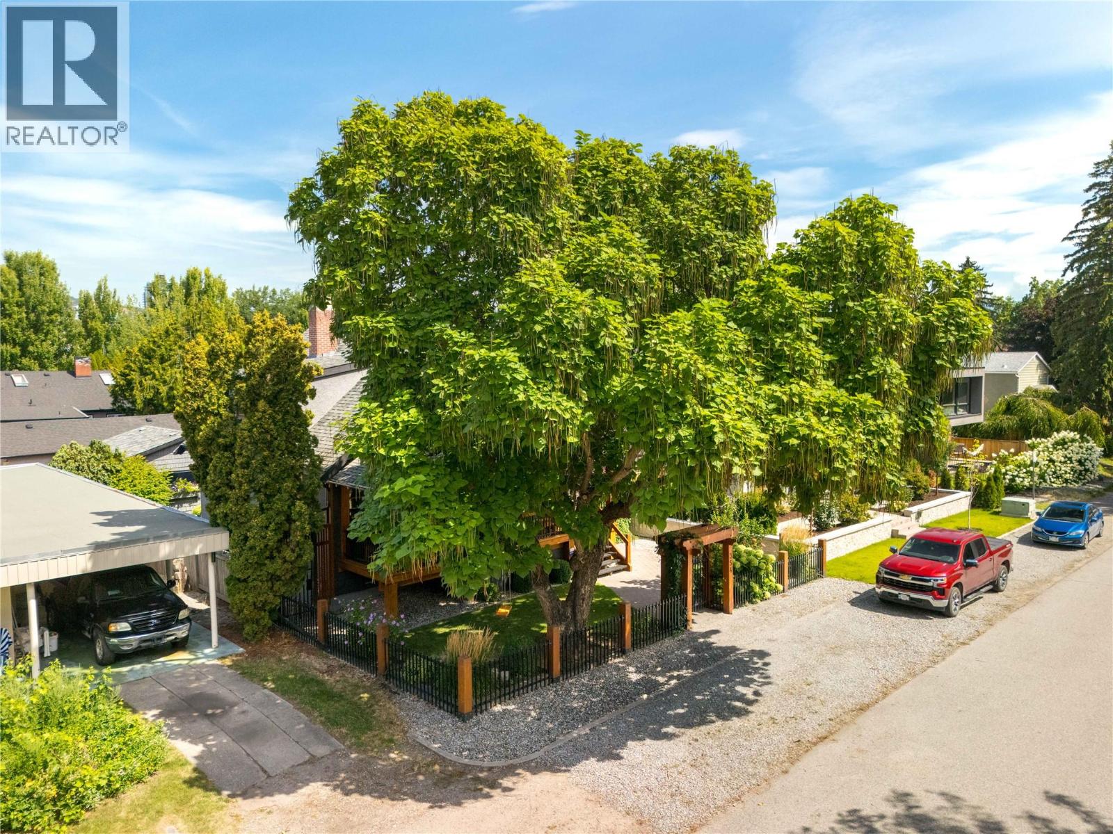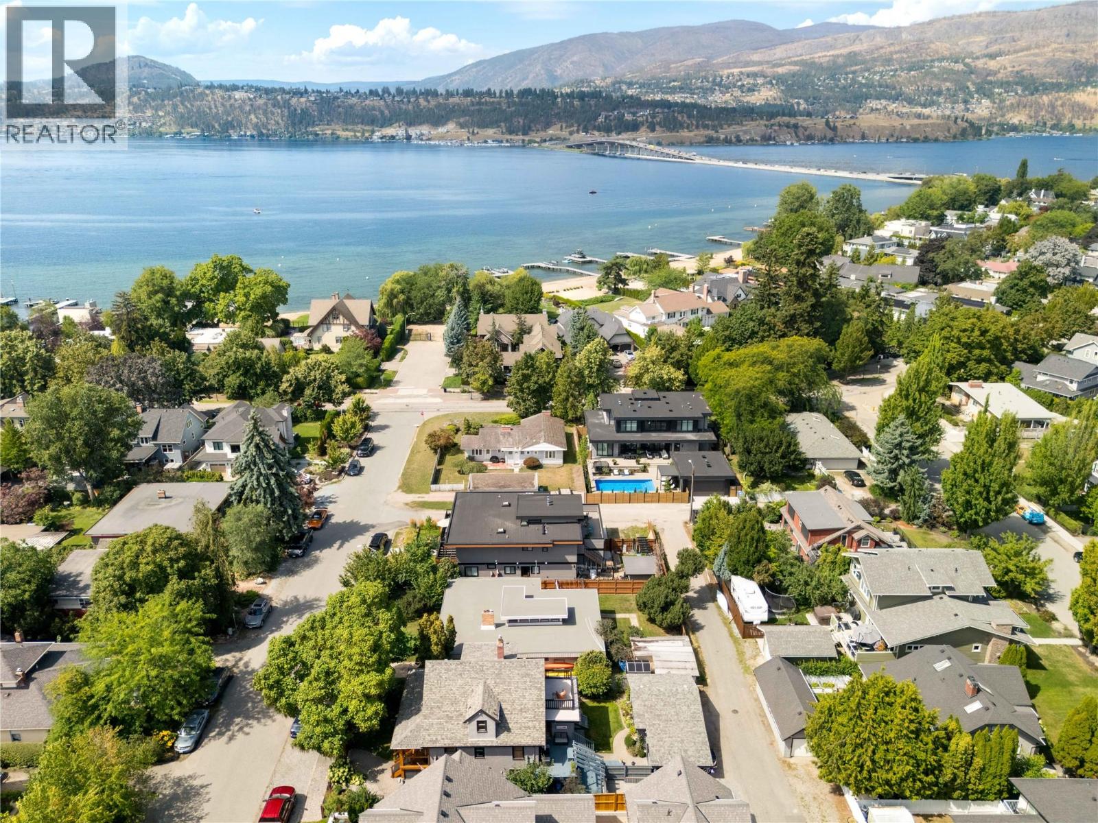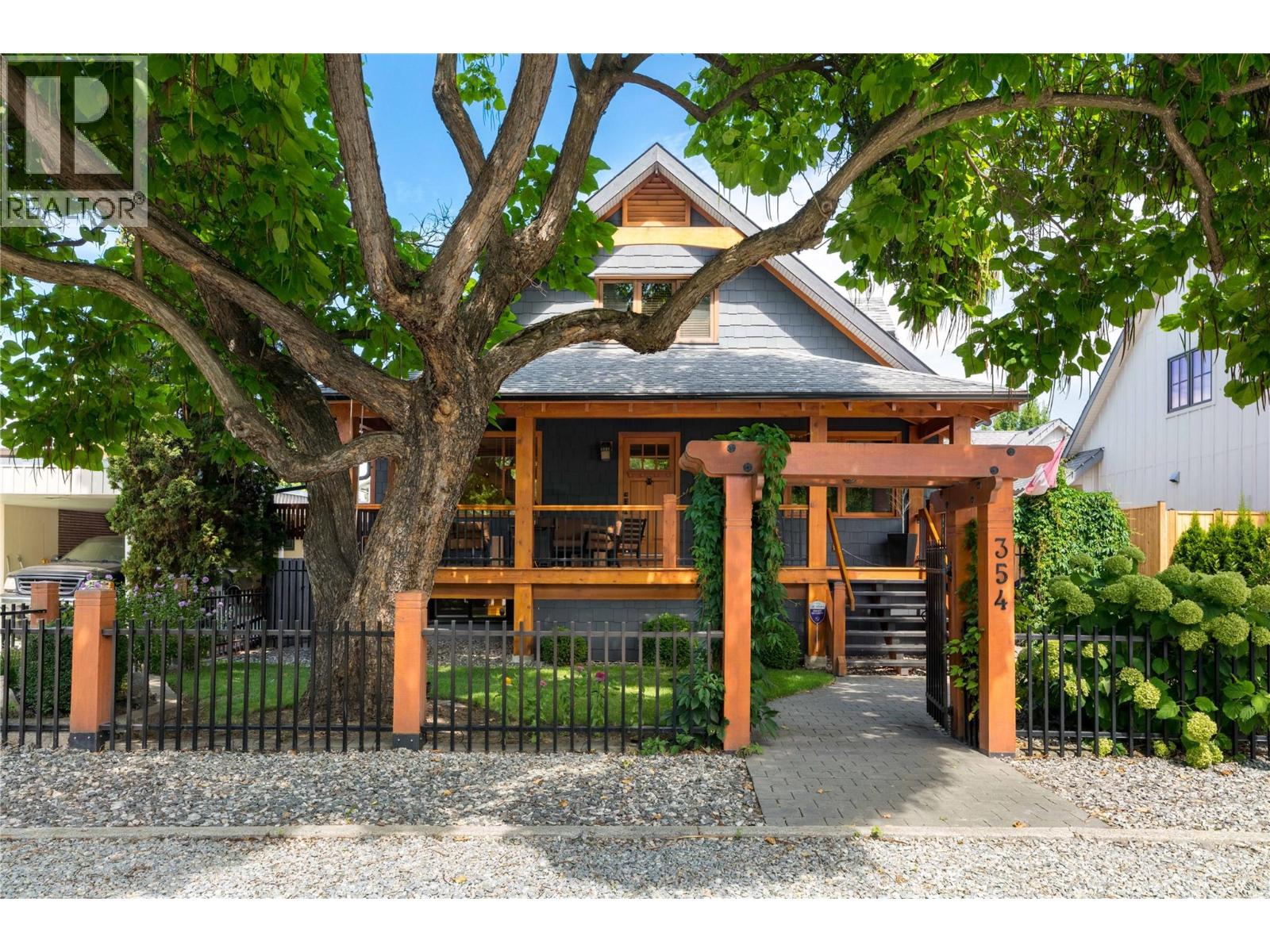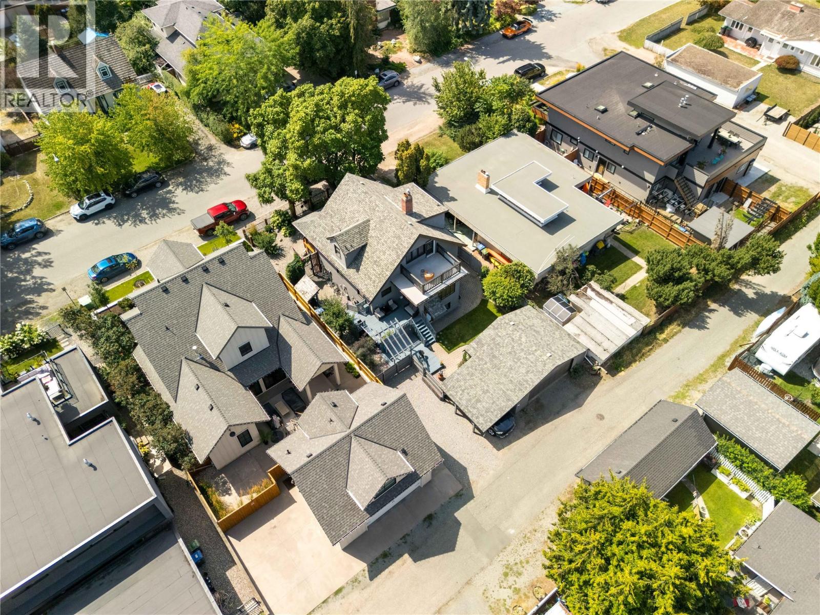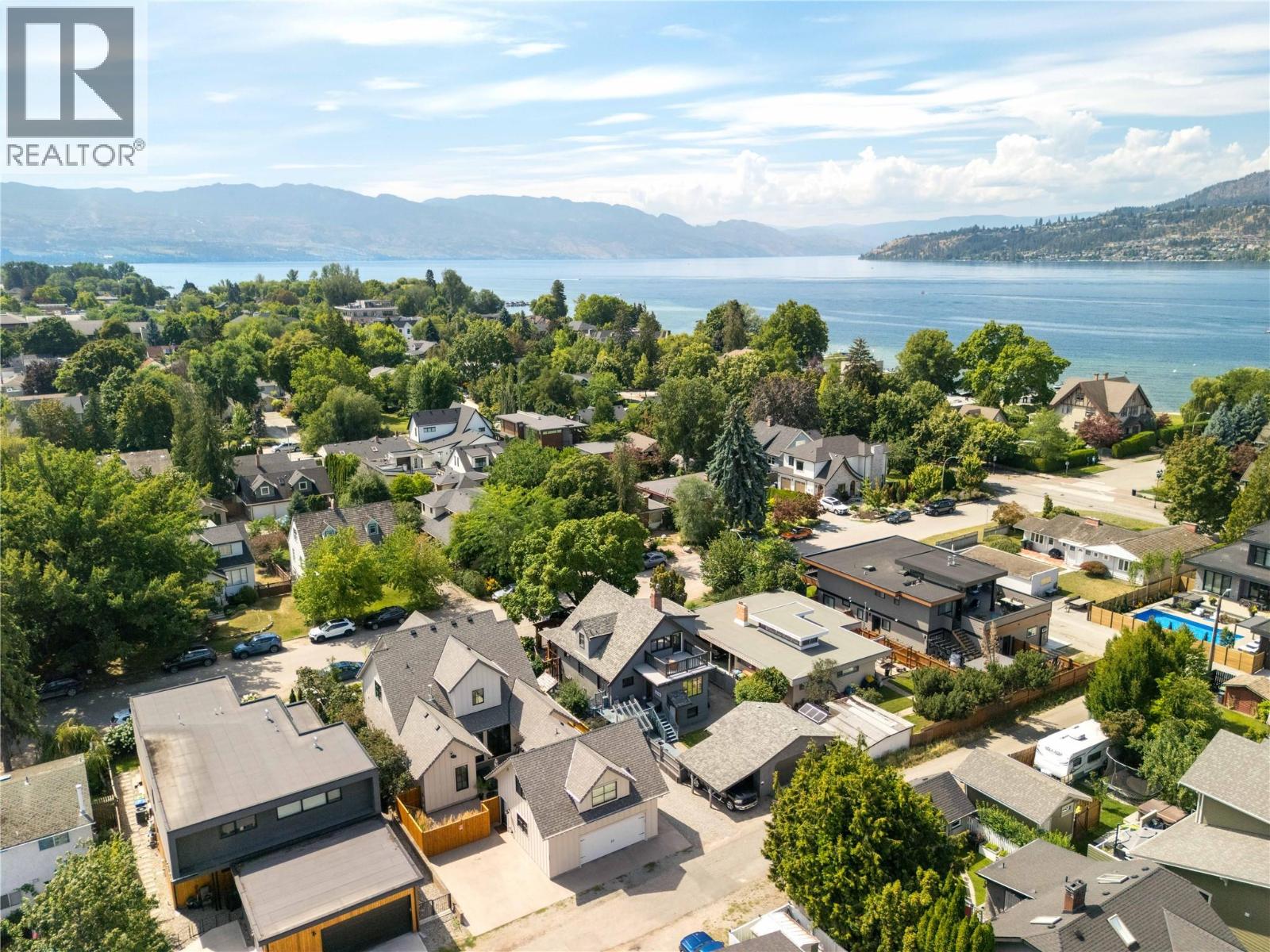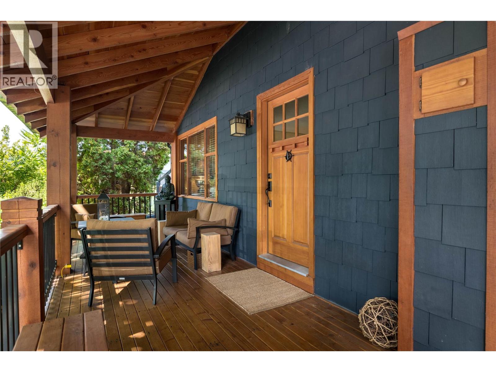 A rare offering just steps to the sand—where timeless design meets daily luxury in one of Kelowna’s most coveted neighbourhoods!! Privately nestled beneath a canopy of mature trees, this distinctive residence blends West Coast charm with elevated elegance. Thoughtfully & meticulously cared for, the home offers warmth, versatility & unmatched lifestyle just one block from the lake. Crafted for both beauty & function, the custom Glen Canyon kitchen is a true showpiece—featuring natural stone countertops, heated flooring, accent lighting, built-in display shelving, gas range & custom wood cabinetry. Refinished maple hardwood flows seamlessly through the main living spaces, framed by crown moulding, tray ceilings & rich wood accents. Large windows flood the home with natural light, creating a calm, airy feel throughout. Offering 4 bedrooms in total—including a main-level bedroom & two up—the home also includes a fully self-contained one-bedroom in-law suite with a private entrance. Outdoor living is at its finest with a covered front porch, sun-filled terrace & hot tub-ready private yard with wood burning stove—all surrounded by lush, low-maintenance landscaping. A detached double garage/studio with 220 power, alley access & zoning for a carriage home offers incredible long-term potential. Parking is abundant, with space for a boat or RV. This is a legacy property in a location that rarely becomes available—walk to the beach, schools, parks & Kelowna’s vibrant downtown core. (id:58842)