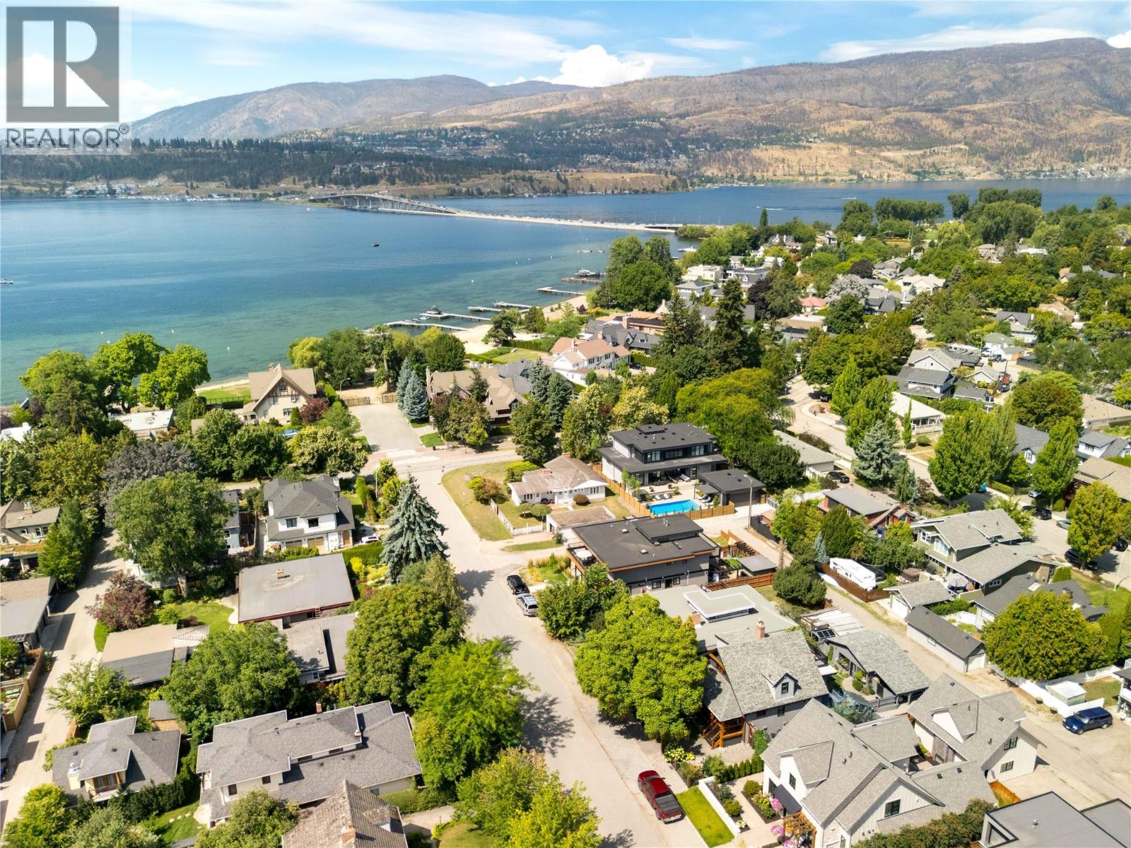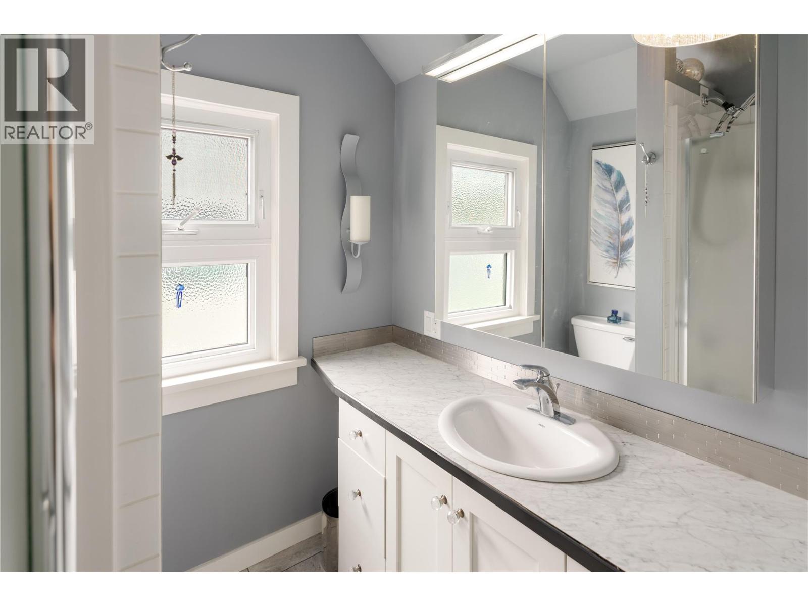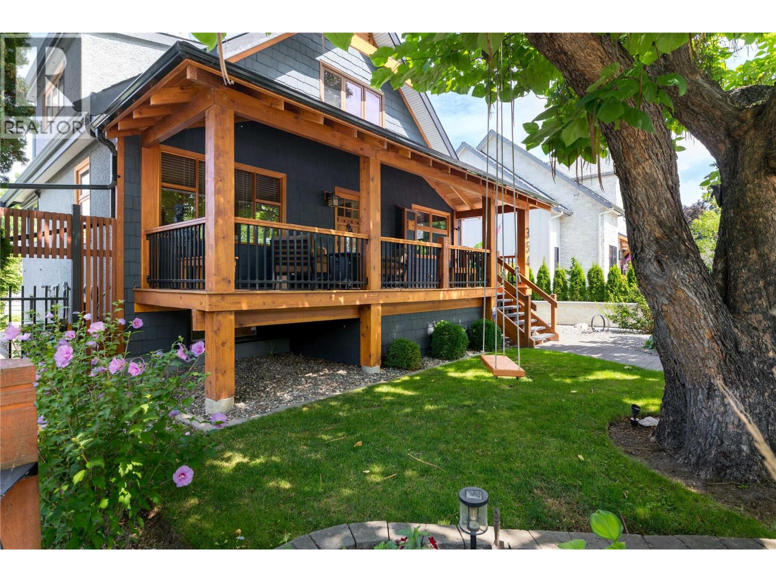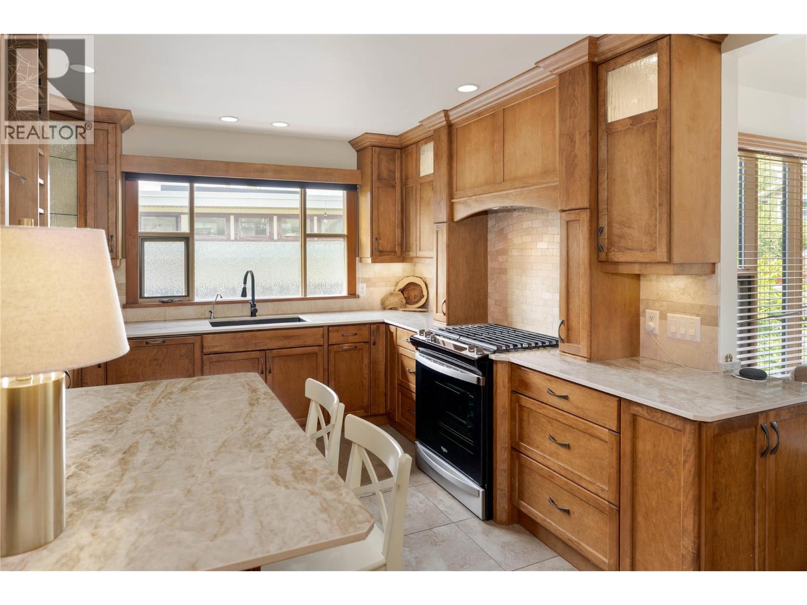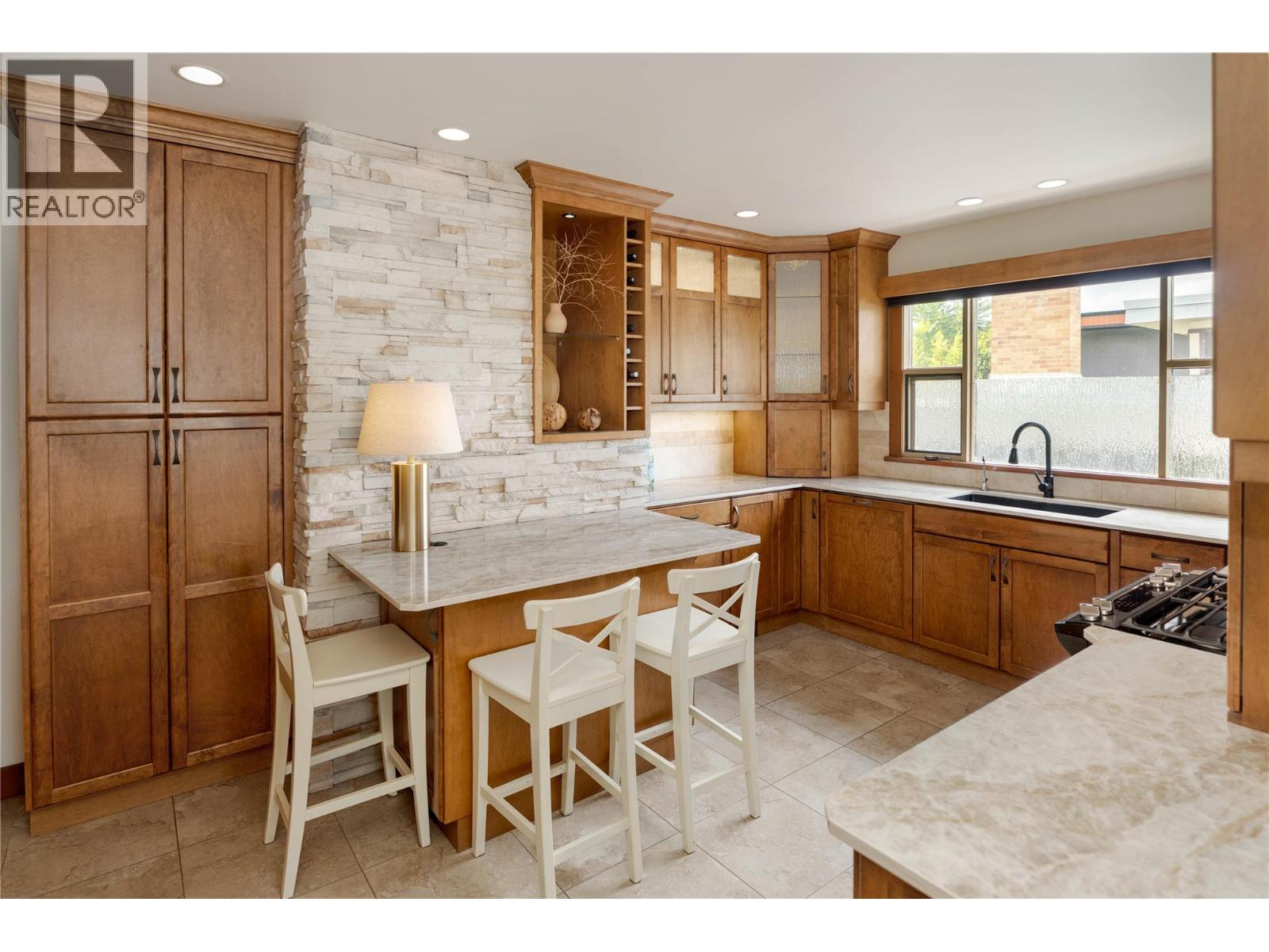 A rare offering just steps to the sand—where timeless design meets daily luxury in one of Kelowna’s most coveted neighbourhoods!! Privately nestled beneath a canopy of mature trees, this distinctive residence blends West Coast charm with elevated elegance. Thoughtfully & meticulously cared for, the home offers warmth, versatility & unmatched lifestyle just one block from the lake. Crafted for both beauty & function, the custom Glen Canyon kitchen is a true showpiece—featuring natural stone countertops, heated flooring, accent lighting, built-in display shelving, gas range & custom wood cabinetry. Refinished maple hardwood flows seamlessly through the main living spaces, framed by crown moulding, tray ceilings & rich wood accents. Large windows flood the home with natural light, creating a calm, airy feel throughout. Offering 4 bedrooms in total—including a main-level bedroom & two up—the home also includes a fully self-contained one-bedroom in-law suite with a private entrance. Outdoor living is at its finest with a covered front porch, sun-filled terrace & hot tub-ready private yard with wood burning stove—all surrounded by lush, low-maintenance landscaping. A detached double garage/studio with 220 power, alley access & zoning for a carriage home offers incredible long-term potential. Parking is abundant, with space for a boat or RV. This is a legacy property in a location that rarely becomes available—walk to the beach, schools, parks & Kelowna’s vibrant downtown core. (id:58842)