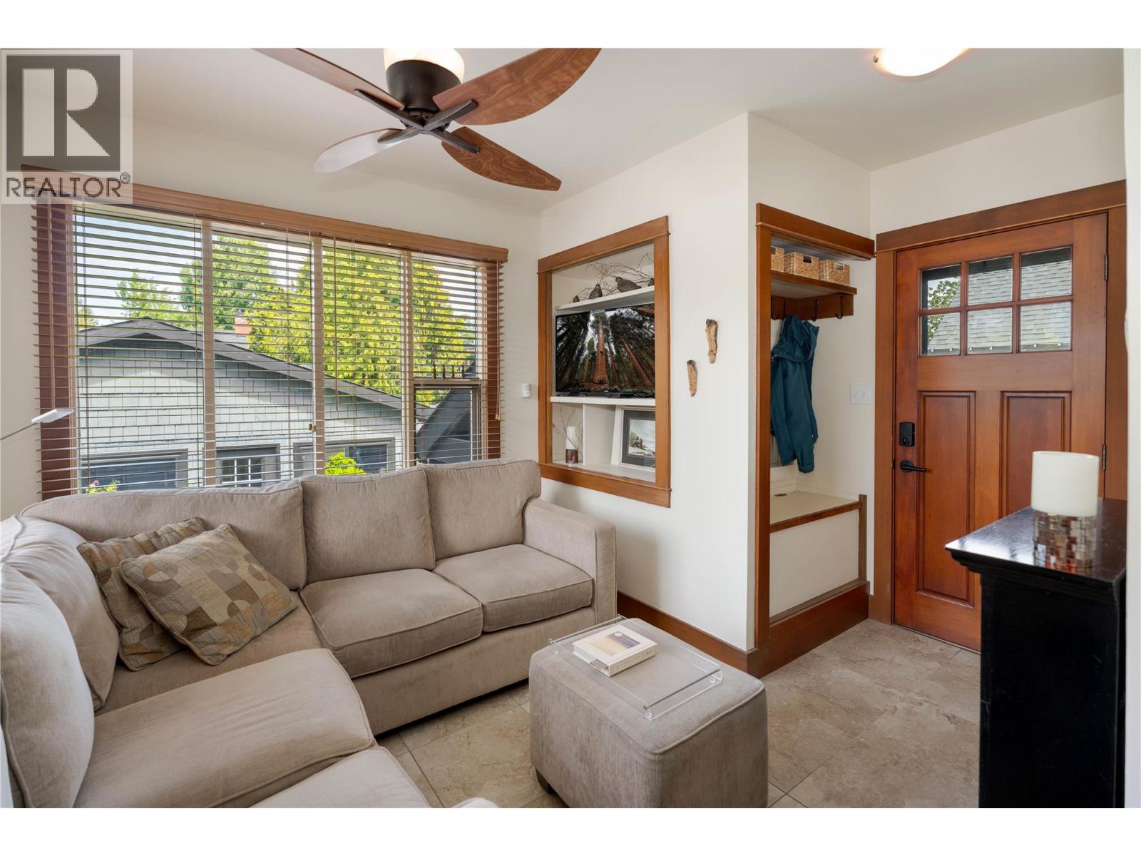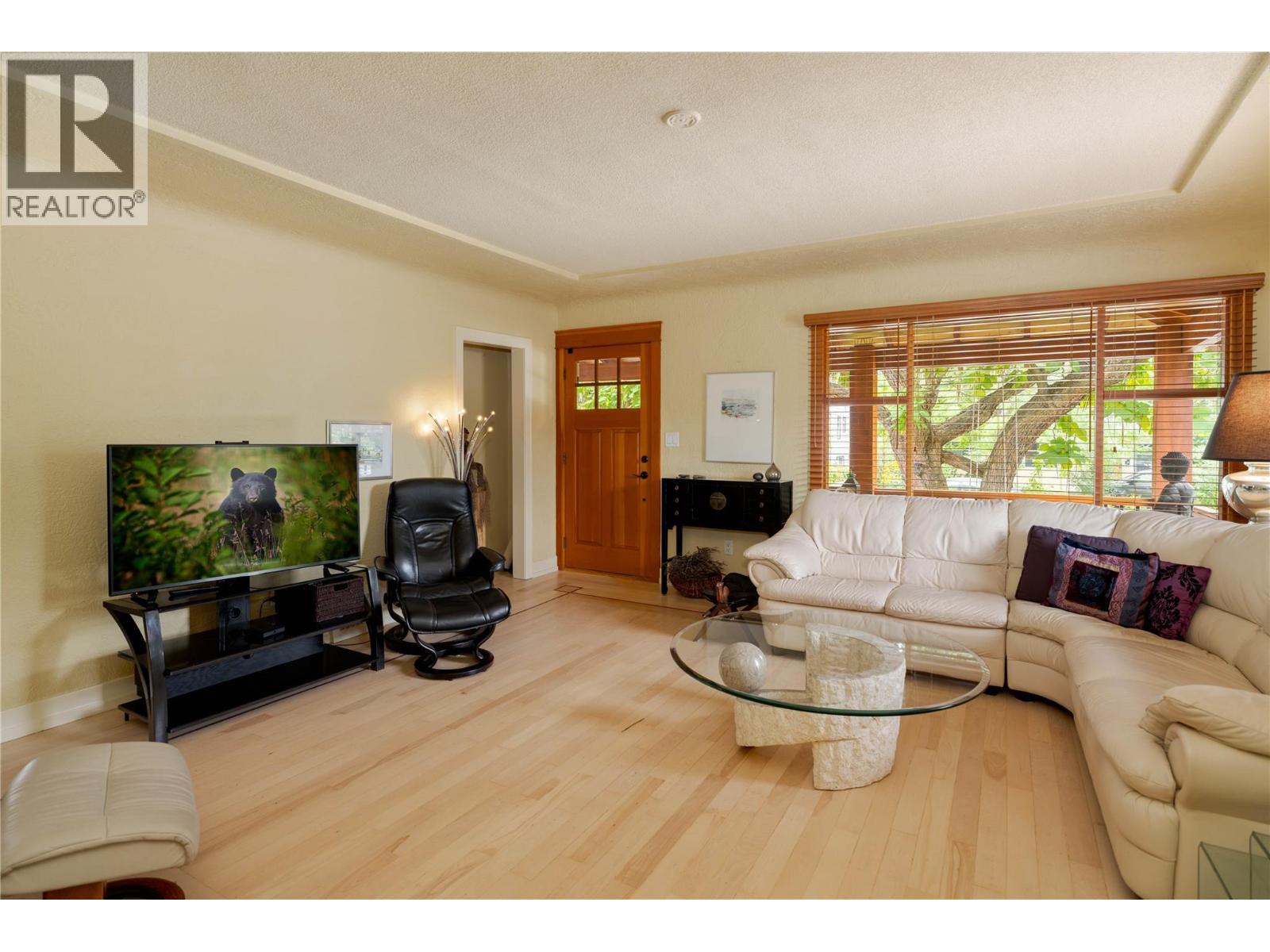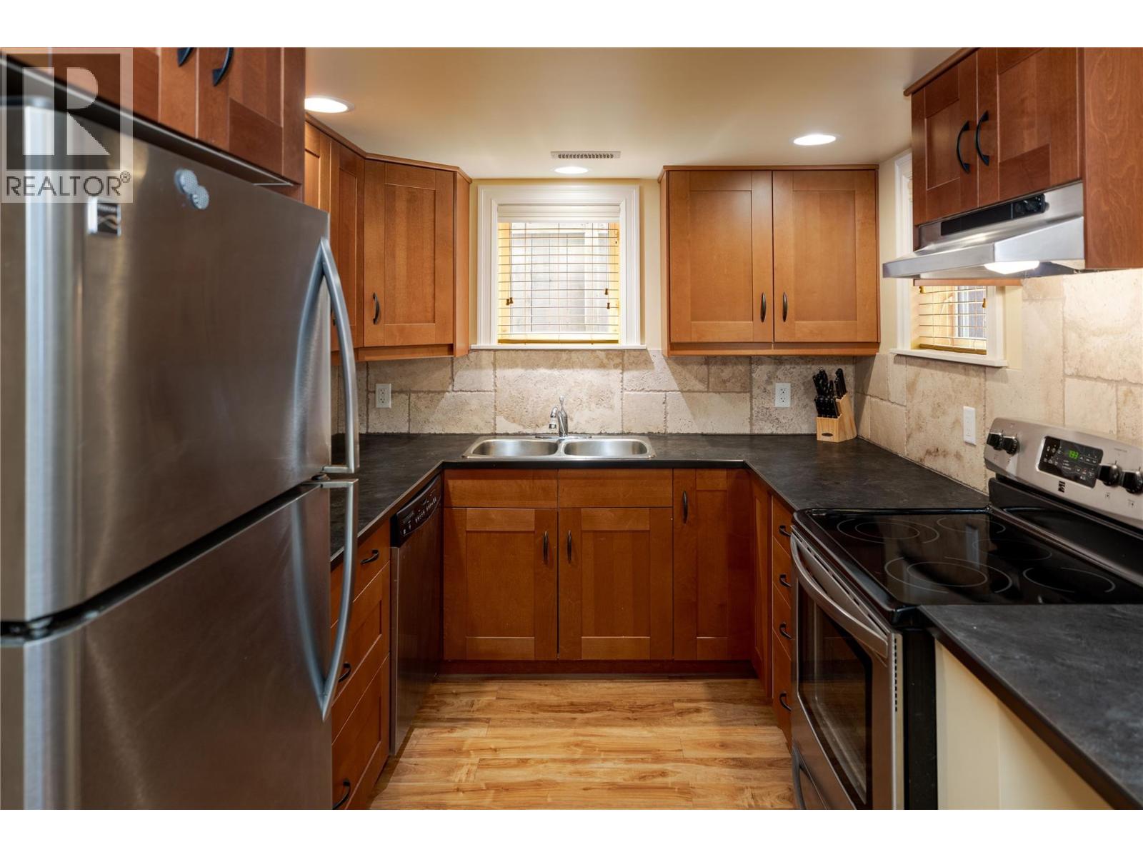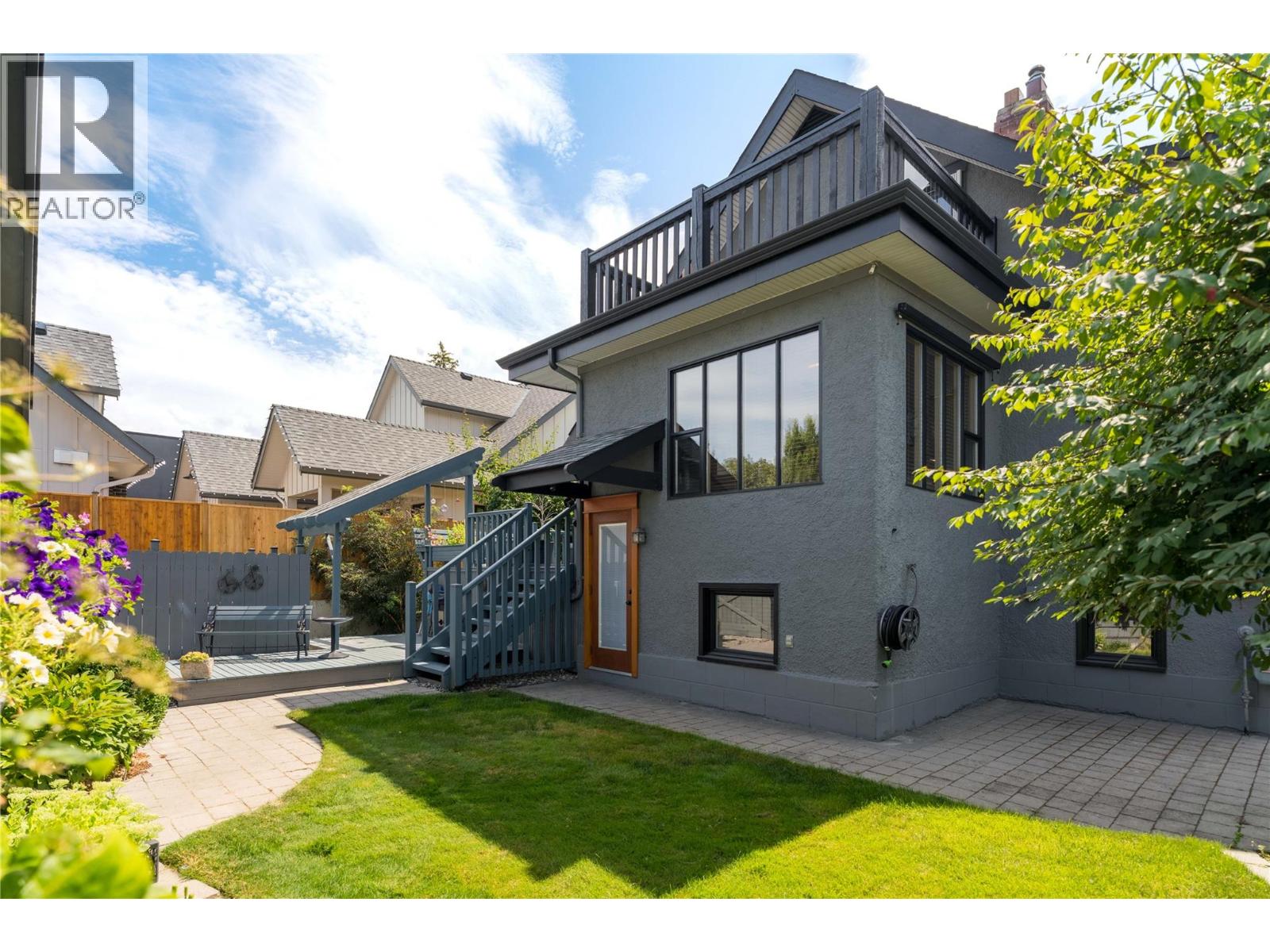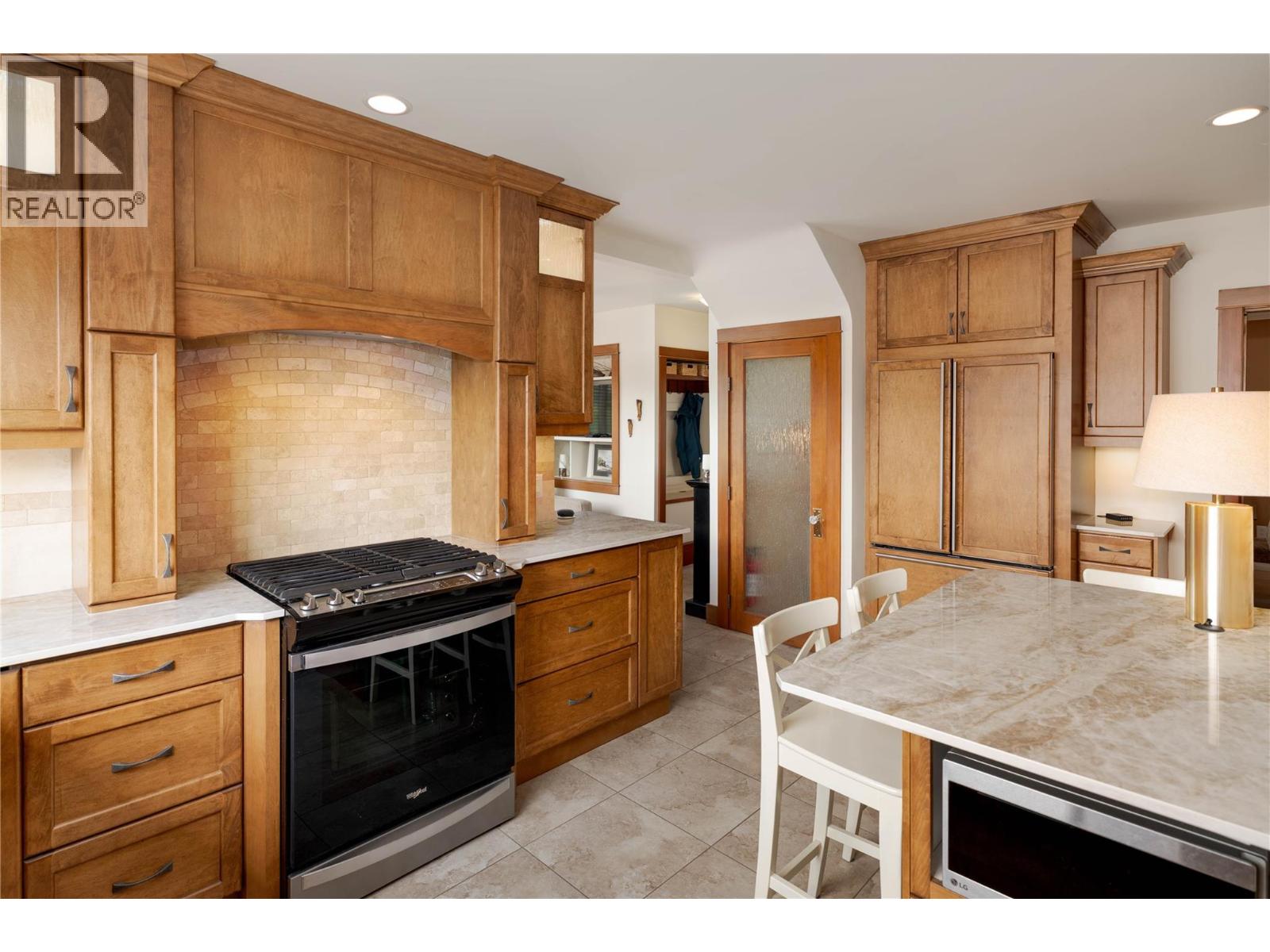 A rare offering just steps to the sand—where timeless design meets daily luxury in one of Kelowna’s most coveted neighbourhoods!! Privately nestled beneath a canopy of mature trees, this distinctive residence blends West Coast charm with elevated elegance. Thoughtfully & meticulously cared for, the home offers warmth, versatility & unmatched lifestyle just one block from the lake. Crafted for both beauty & function, the custom Glen Canyon kitchen is a true showpiece—featuring natural stone countertops, heated flooring, accent lighting, built-in display shelving, gas range & custom wood cabinetry. Refinished maple hardwood flows seamlessly through the main living spaces, framed by crown moulding, tray ceilings & rich wood accents. Large windows flood the home with natural light, creating a calm, airy feel throughout. Offering 4 bedrooms in total—including a main-level bedroom & two up—the home also includes a fully self-contained one-bedroom in-law suite with a private entrance. Outdoor living is at its finest with a covered front porch, sun-filled terrace & hot tub-ready private yard with wood burning stove—all surrounded by lush, low-maintenance landscaping. A detached double garage/studio with 220 power, alley access & zoning for a carriage home offers incredible long-term potential. Parking is abundant, with space for a boat or RV. This is a legacy property in a location that rarely becomes available—walk to the beach, schools, parks & Kelowna’s vibrant downtown core. (id:58842)