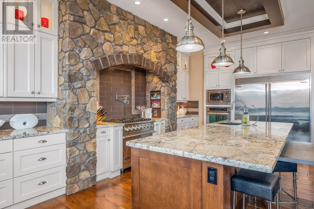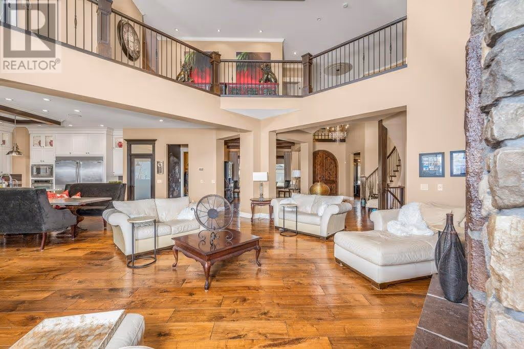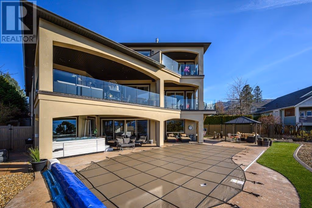 This exquisite lakeview estate blends thoughtful design, high-end finishes, and panoramic mountain and lake views from every level. Spanning over 7,700 sqft across three levels, this architectural masterpiece is as functional as it is beautiful. The open-concept main and upper levels offer 4,600 sqft of refined living space, perfectly positioned to take in the views. At the heart of the home is a chef’s dream kitchen, featuring an 8-burner gas stove, double ovens, a double-wide refrigerator, walk-in pantry, and expansive counters with under-cabinet lighting—all overlooking the lake. The primary suite offers a luxurious escape with heated tile floors, a spa-like ensuite with soaker tub, 10mm glass shower, and a custom dressing room with stunning views. Each of the five additional bedrooms includes its own private ensuite, ensuring comfort and privacy for guests or family. The 3,100 sqft walkout basement features heated concrete floors, a wine room, and a suspended slab theater. Step outside to your saltwater pool and spacious deck—perfect for relaxing or entertaining. Additional highlights: Triple car garage. Two furnaces & new Navien Hot water tank. Dual laundry rooms, with newer washer and dryer. Powered blinds & built-in sound. Potential for nanny/in-law suite. Multiple decks and patios. Numerous upgrades and List of features attached in supplements. This is truly a must-see. Book your private showing today and experience lakeview living at its finest. (id:58842)