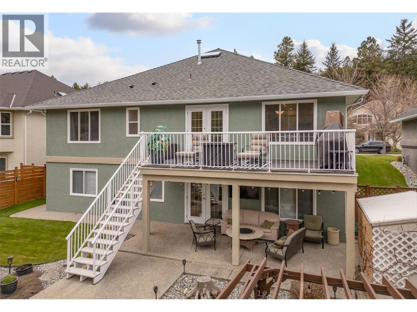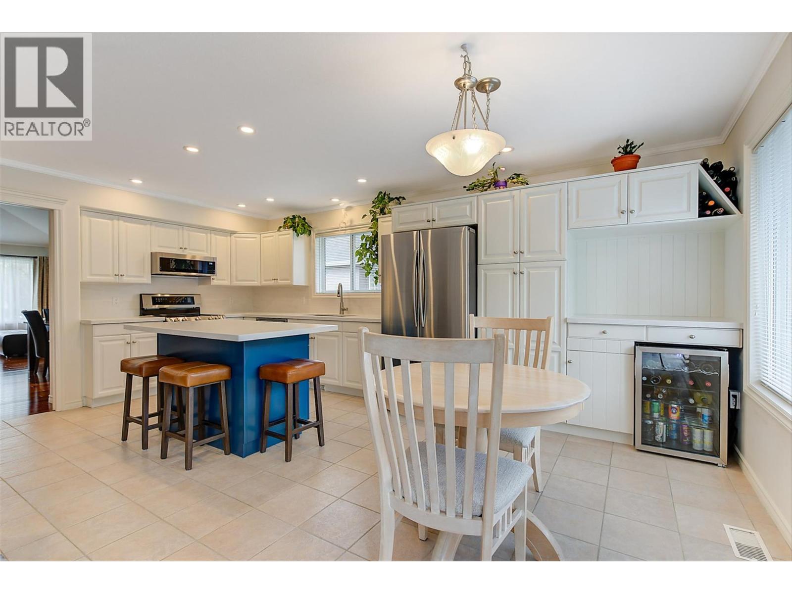 Welcome to this beautifully updated & spacious 5-bedroom rancher, with a walkout basement, in desirable Magic Estates. Offering 3 baths & over 3,000 sq ft of versatile living space, this home offers plenty of room for the entire family, perfect for teens! Step into a welcoming tiled foyer that flows seamlessly into rich hardwood flooring throughout the living & dining areas. Soaring vaulted ceilings add a bright, airy feel to the main living space, perfect for relaxing and entertaining. The large kitchen features a central island, tile flooring, & is part of a cozy family room with a gas fireplace. French doors lead out to a mountain-view deck complete with a gas BBQ hookup, ideal for summer evenings. Downstairs, the walkout basement boasts 3 generously sized bedrooms, a large rec room with a second gas fireplace, & more French doors opening to a covered patio and fenced backyard. There's also a spacious games room, which could easily be converted into a media room or home theatre. Bonus features include: Central AC, built-in vacuum system, underground sprinklers, direct access to Knox Mountain Park with hiking & biking trails just across the street. Recent renovations include: brand new vinyl decking, asphalt roof, fully renovated kitchen, removal of poly-B plumbing, recent furnace & A/C, & replaced hot water tank. Fresh paint & new carpets on the main floor. Don't miss your chance to own this updated and move-in-ready home in one of Kelowna’s most desirable neighborhoods! (id:58842)