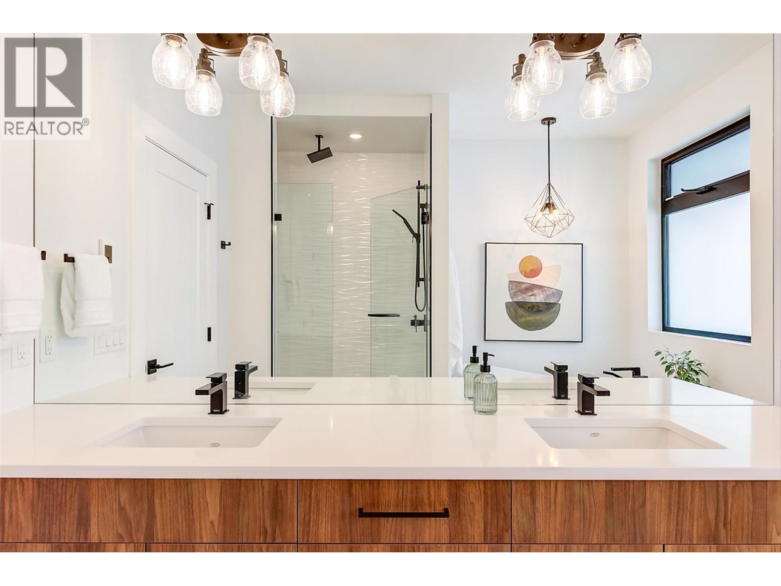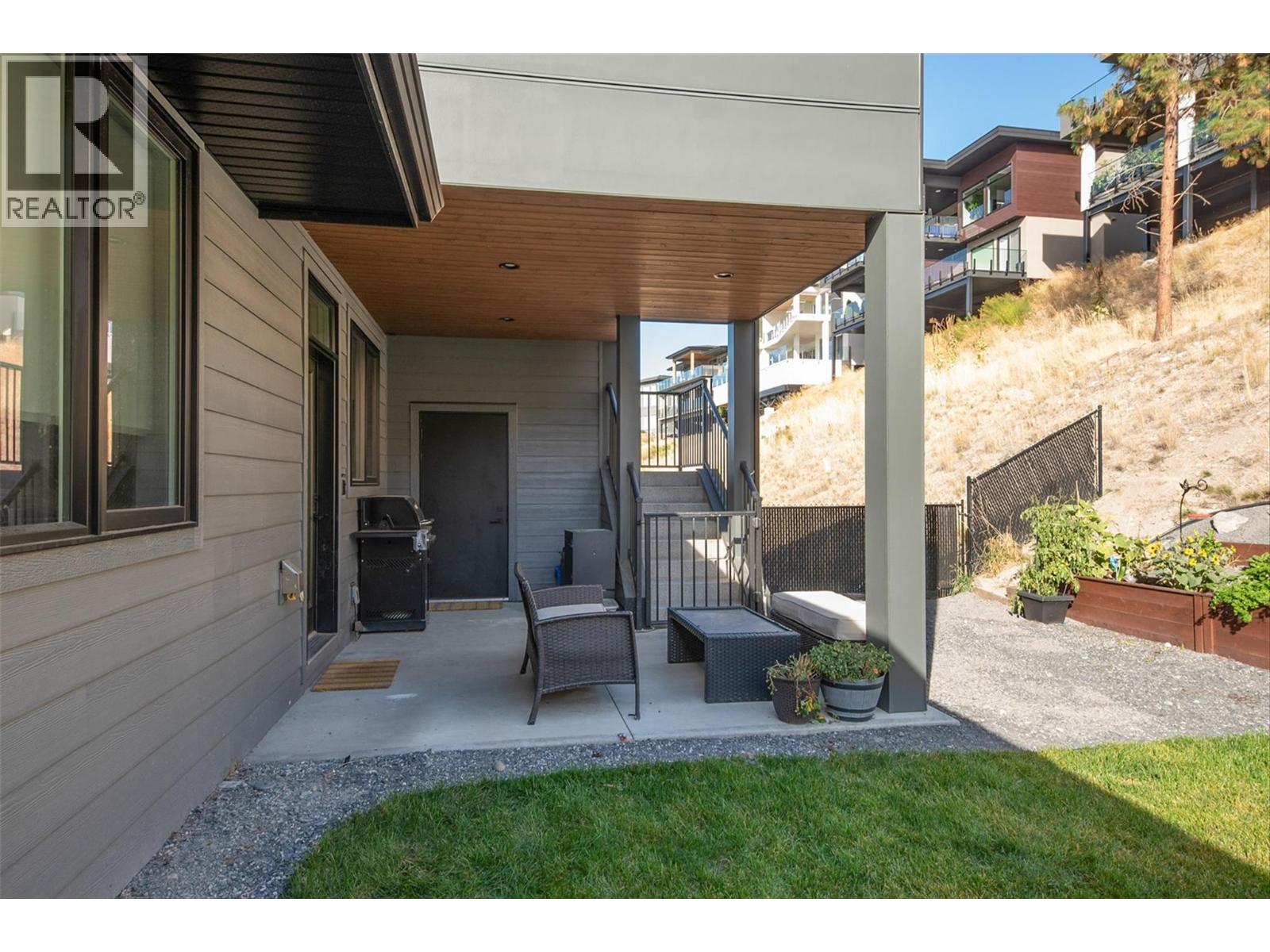 FANTASTICALLY RARE FIND in McKinley Beach!!! This Perfect Home Retreat has a 725 SF ROOF TOP PATIO W/ HOT TUB & LOUNGE OVERLOOKING OKANAGAN LAKE. BE THE ENVY OF THE NEIGHBOURHOOD while basking in the sun taking in breathtaking 180 degree; western views. Custom Crafted home built by one of Kelowna's finest Award Winning builders features an open concept floor plan w/ eat in kitchen that includes a large quartz, waterfall island & high end appliance package including a 36"" gas range. Rare again, large fenced backyard seen from your kitchen sink. Picturesque Walls of Windows facing East & West spray sunshine into your home no matter the season. Luxurious Primary Bedroom hosts an ideal ensuite escape that includes heated floors, 2 sinks, spacious shower & stand alone tub. 2 added bedrooms, full bath, 4th bedroom/den & laundry room complete this main residence. Find a Legal 1 bedroom Suite fitted with a private side entrance & separate patio, is the perfect space for guests when they come to visit, family or rent out for extra revenue. TOPPING all of this off is an incredible oversized double car garage with Epoxy floors & extra parking on the driveway. The McKinley Beach Association membership share a $5M amenity centre fittingly named ""Our Place"" includes a secure clubhouse w/ gym, indoor pool & hot tub. Outdoor community features include Pickle ball, Tennis & Basketball courts, Community Gardens, Beach, Marina (5 min walk or cruise down in a golf cart) & endless Hiking Trails. (id:58842)