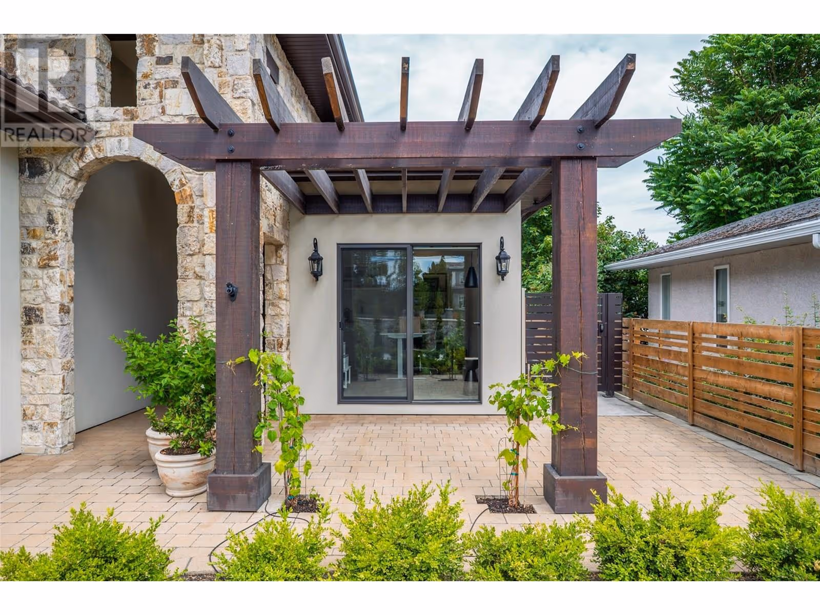 Unbeatable location! Situated just literal steps from the sandy shores of Gyro Beach and Rotary Beach, and a short stroll to the vibrant shops and restaurants of Pandosy Village, this exquisite 3 bedroom + den, 2.5 bathroom luxury home offers the perfect blend of lifestyle and convenience - all on one level. Soaring 10’ ceilings throughout, creating a bright and spacious feel. The bright and open main living area is ideal for entertaining, with a gourmet kitchen with quartz countertops, a large island with eating bar, stainless steel appliances, built-in oven, and sleek countertop range. The kitchen flows seamlessly into the dining area and living room, which opens to a covered patio overlooking a private pool-sized yard. The primary bedroom features a walk-in closet with custom shelving and a spa-inspired ensuite featuring a steam shower and soaker tub. Five zone radiant in-floor heating, hot water on demand, and too many features to list (ask your agent for our features list). This is truly a rare opportunity to own a luxury home in one of Kelowna’s most desirable beachside neighborhoods. (id:58842)
