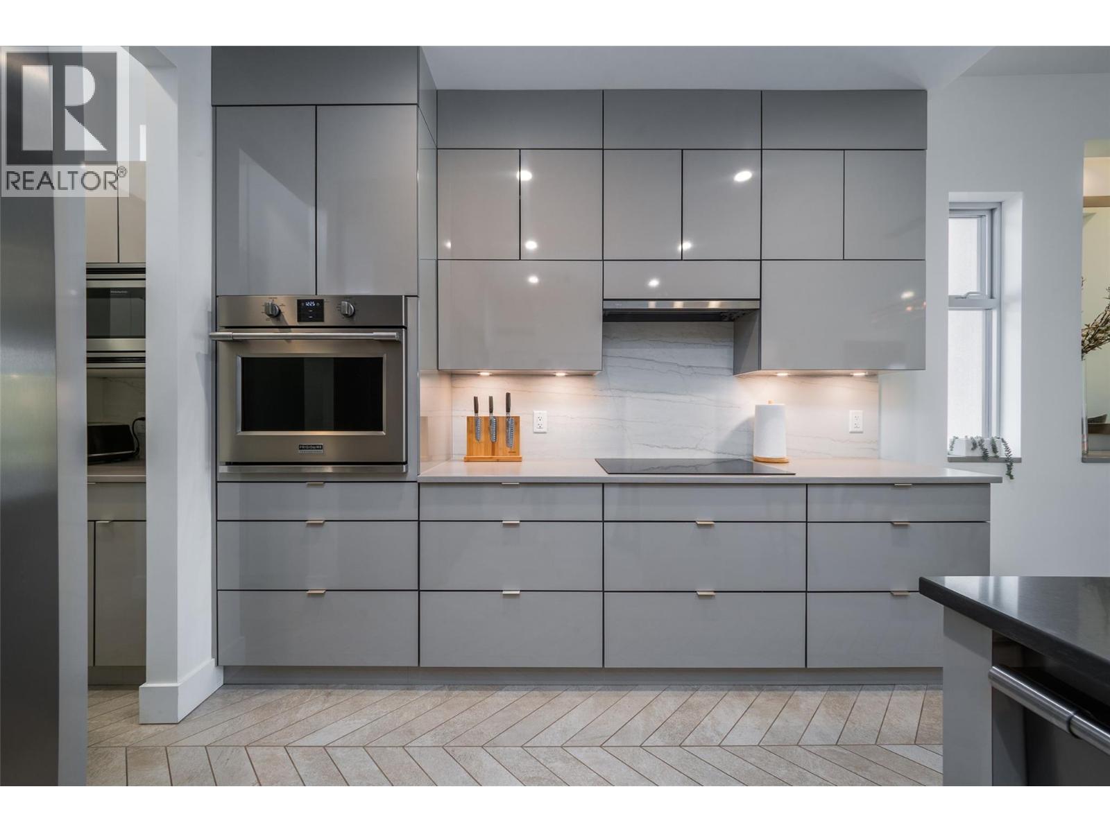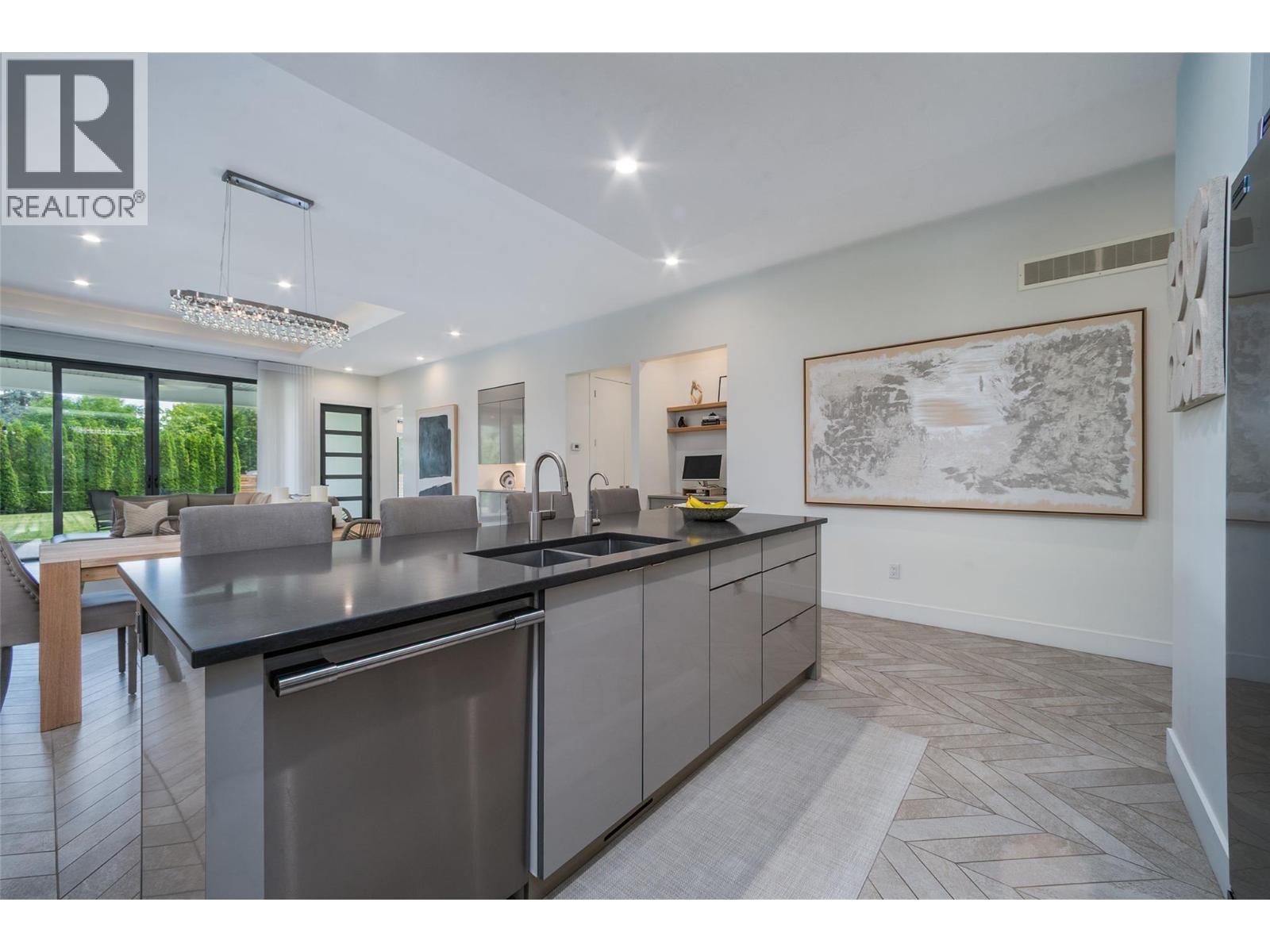 Unbeatable location! Situated just literal steps from the sandy shores of Gyro Beach and Rotary Beach, and a short stroll to the vibrant shops and restaurants of Pandosy Village, this exquisite 3 bedroom + den, 2.5 bathroom luxury home offers the perfect blend of lifestyle and convenience - all on one level. Soaring 10’ ceilings throughout, creating a bright and spacious feel. The bright and open main living area is ideal for entertaining, with a gourmet kitchen with quartz countertops, a large island with eating bar, stainless steel appliances, built-in oven, and sleek countertop range. The kitchen flows seamlessly into the dining area and living room, which opens to a covered patio overlooking a private pool-sized yard. The primary bedroom features a walk-in closet with custom shelving and a spa-inspired ensuite featuring a steam shower and soaker tub. Five zone radiant in-floor heating, hot water on demand, and too many features to list (ask your agent for our features list). This is truly a rare opportunity to own a luxury home in one of Kelowna’s most desirable beachside neighborhoods. (id:58842)