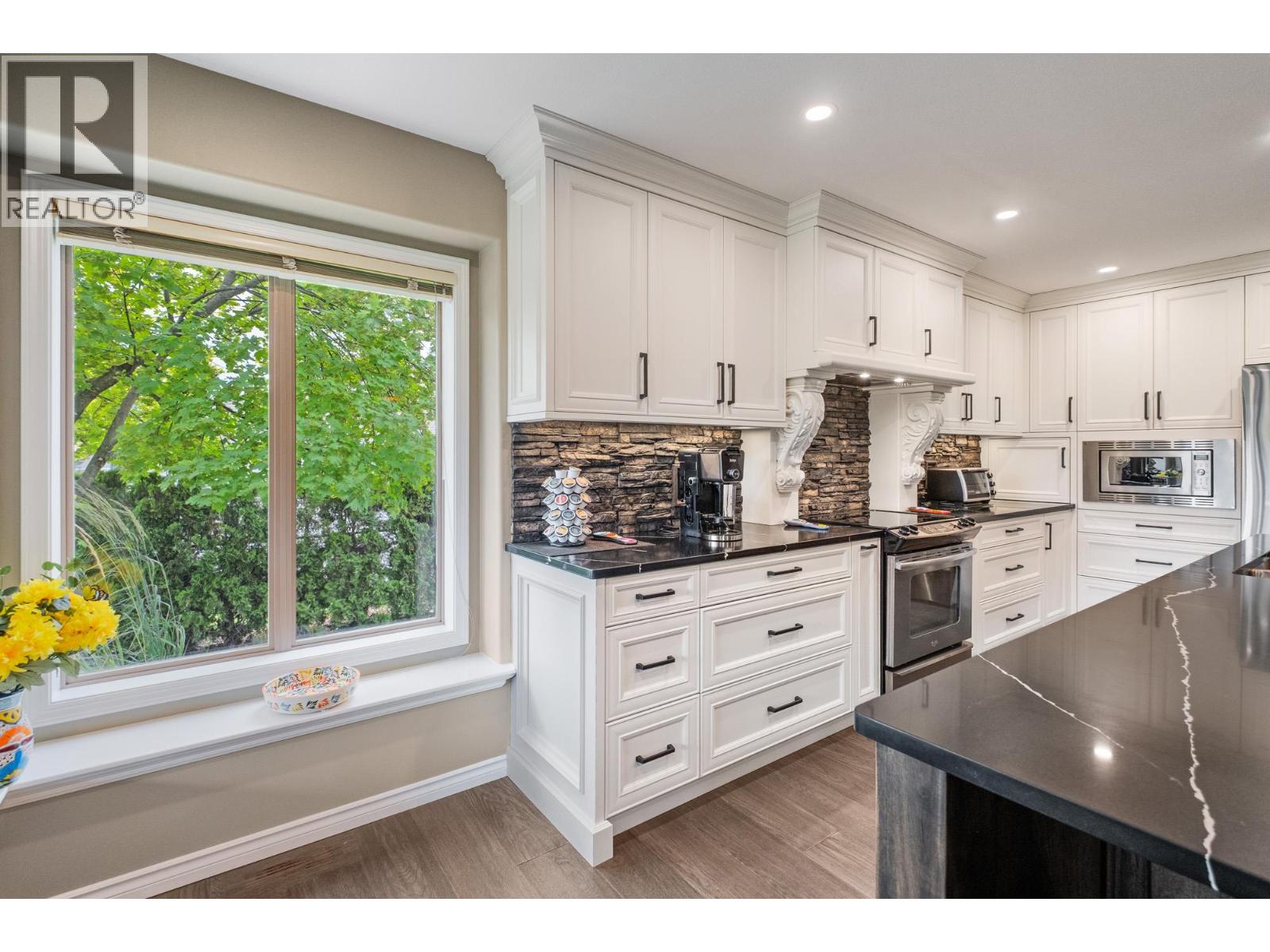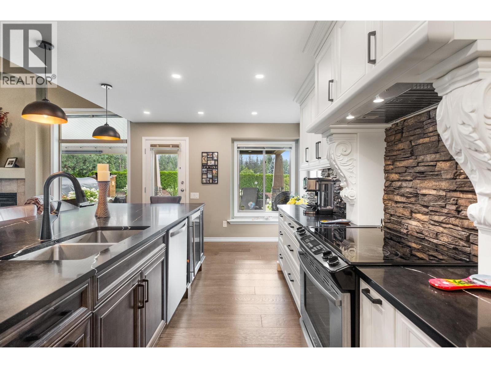 Discover the charm of Southeast Kelowna from this beautifully updated family home, perfectly tucked away on a quiet cul-de-sac. Set on a generous .40-acre lot, there’s ample space for all your toys, a future pool, or even an additional garage (with partial electrical already in place). A full cedar hedge surrounds the backyard, creating a private oasis where you can unwind in the hot tub beneath the stars or enjoy morning coffee on the large covered patio while the kids play. Inside, elegant updates stand out. The custom kitchen impresses with its oversized granite island, built-in cabinetry, and matching powder room. Wide plank hardwood flows throughout the main level, where a soaring living room features a striking built-in centerpiece and cozy gas fireplace. The main-floor primary suite offers tray ceilings and a spacious ensuite, while two upstairs bedrooms and a full bath are ideal for kids or guests. The lower level blends fun and function—perfect for movie nights, games, and workouts in this roomy entertainment hub. This coveted neighborhood offers refined living just minutes from it all—10–15 minutes to Okanagan Lake, Kelowna General Hospital, and Orchard Park Mall. Steps from Gallagher’s Canyon Golf Course, you’re close to dining, 18 holes, and local farm markets. Bike to Southeast Kelowna Elementary or reach downtown with ease from your private retreat. Don’t miss the virtual tour! (id:58842)