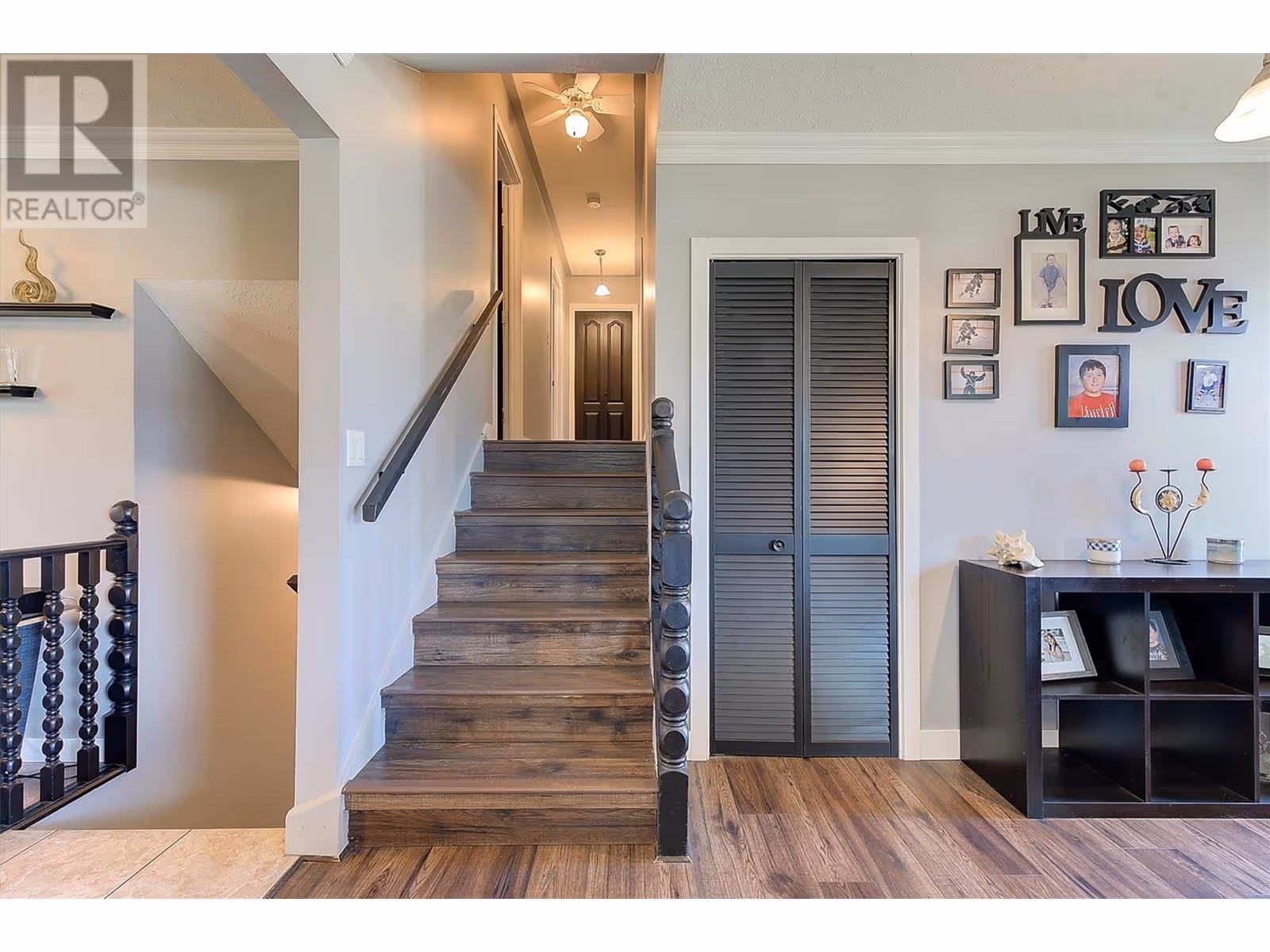 This excellent value family home has been stylishly updated and is just a short walk to all the conveniences of West Kelowna’s town centre! With spacious main-floor living areas, there’s plenty of room for family time, entertaining, and hosting guests. The open-concept kitchen and dining area seamlessly connect to a huge covered deck and a flat, usable yard—perfect for indoor-outdoor living. Thoughtful updates include a welcoming porch/mudroom with an abundance of extra storage, newer appliances, counters and backsplash, updated flooring, windows, an electric fireplace, and a newer roof. Upstairs, you’ll find three bedrooms, including a generous primary suite with a walk-in closet and ensuite. Downstairs, there’s a fourth bedroom plus a huge rec room, offering even more flexible living space. With a separate entry, the basement has suite potential for those looking for extra income or multi-generational living. Storage is abundant throughout the home, and there’s ample parking out front—making this the ideal family home in an incredibly convenient location. Don’t miss this one! (id:58842)