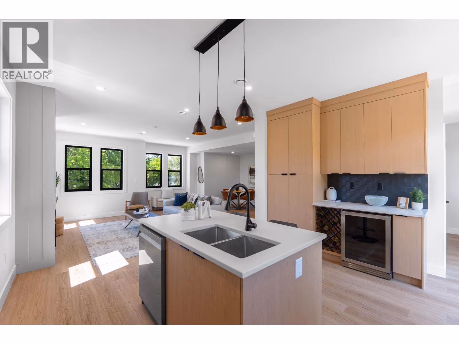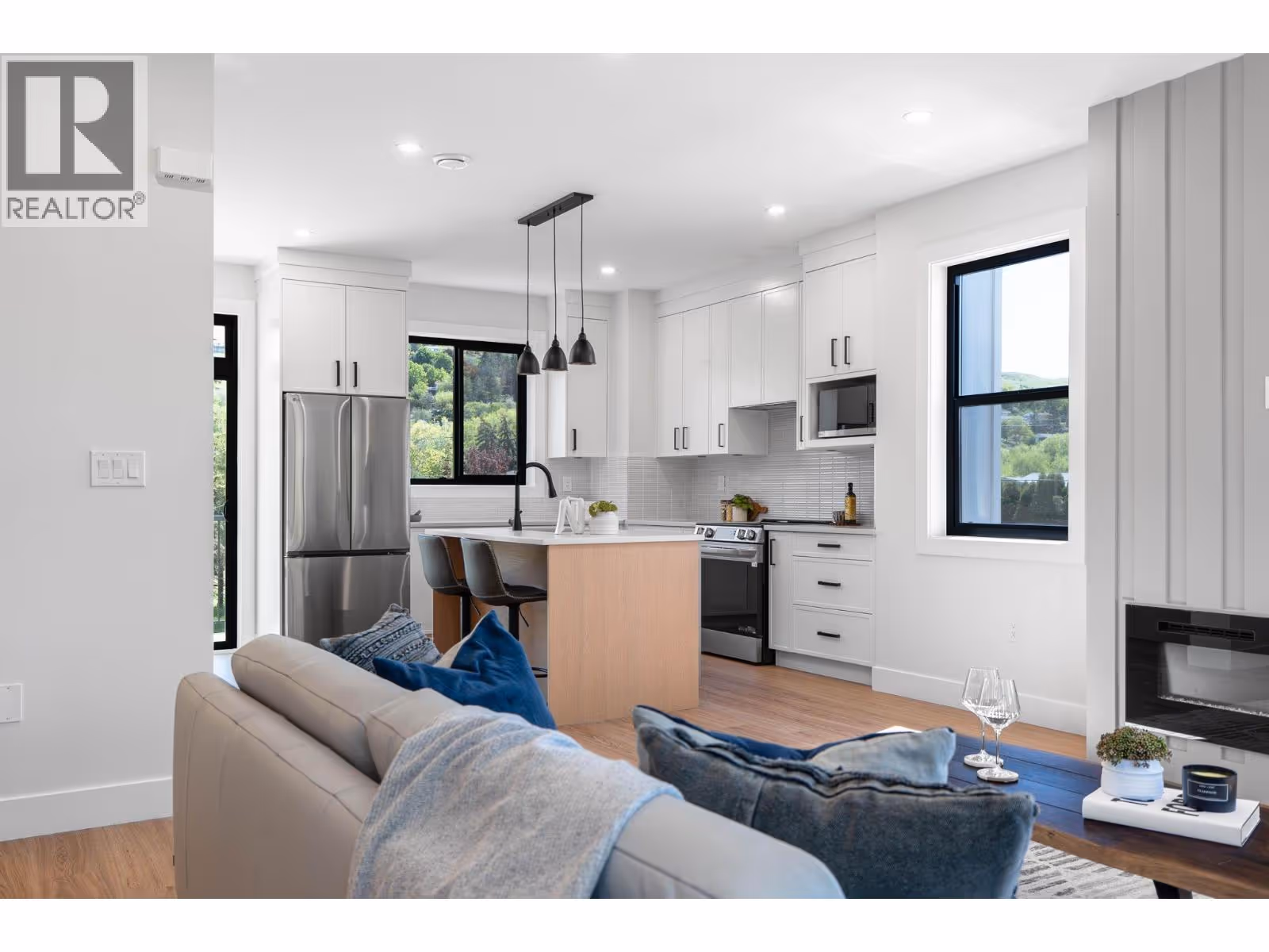Traditional meets modern flare in these boutique townhomes nestled in a private setting in Lake Country. Indulge in the ultimate Okanagan lifestyle in the private and boutique townhomes, nestled in the flats of Lake Country. Located on a no through road, these homes provide piece and quite surrounded by farms and acreages. Head down the street and take the famous Rail Trail down to the lake. Flooded with natural light the open-concept living space flows effortlessly into the beautiful kitchen accented with gleaming quartz countertops and a custom pantry. A stylish wine bar adds a touch of decadence, perfect for effortless entertaining. Doubled black framed windows allow abundance of natural light creating a seamless open concept space. The fireplace ties in the room with its outstanding traditional but modern appeal. The opulent primary suite offers a rain shower with beautiful assorted tile. The units all have hot water on demand, heat pump, AC units, forced air, all appliances plus wine fridge. The staircases designed with lights. These units are code 4 within the BC Energy Step Code. An oversized garage provides ample space for toys and tools, blending practicality with polish. Sophisticated, sun-drenched, and unapologetically stunning—these are more than town homes. It’s your statement piece in the heart of wine country. *Price plus GST PETS ALLOWED! Up to 2 dogs (no size restrictions), 2 cats, or 1 cat/1 dog. **Photos and floor plan are from unit 1 but similar layout. (id:58842)