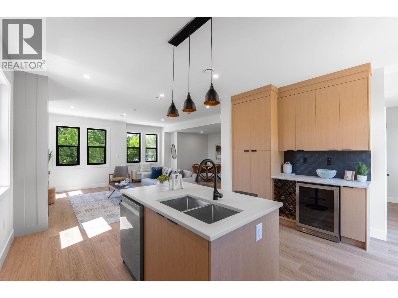 Traditional meets modern flare in these boutique townhomes nestled in a private setting in Lake Country. Indulge in the ultimate Okanagan lifestyle in the private and boutique townhomes, nestled in the flats of Lake Country. Located on a no through road, these homes provide piece and quite surrounded by farms and acreages. Head down the street and take the famous Rail Trail down to the lake. Flooded with natural light the open-concept living space flows effortlessly into the beautiful kitchen accented with gleaming quartz countertops and a custom pantry. A stylish wine bar adds a touch of decadence, perfect for effortless entertaining. Doubled black framed windows allow abundance of natural light creating a seamless open concept space. The fireplace ties in the room with its outstanding traditional but modern appeal. The opulent primary suite offers a rain shower with beautiful assorted tile. The units all have hot water on demand, heat pump, AC units, forced air, all appliances plus wine fridge. The staircases designed with lights. These units are code 4 within the BC Energy Step Code. An oversized garage provides ample space for toys and tools, blending practicality with polish. Sophisticated, sun-drenched, and unapologetically stunning—these are more than town homes. It’s your statement piece in the heart of wine country. *Price plus GST. PETS ALLOWED! Up to 2 dogs (no size restrictions), 2 cats, or 1 cat/1 dog. **Photos and floor plan are from unit 1 but similar layout. (id:58842)