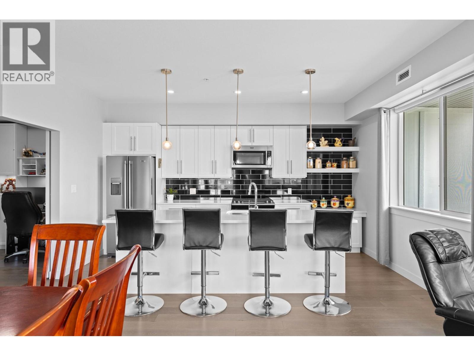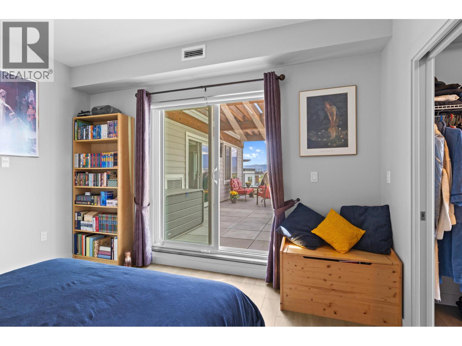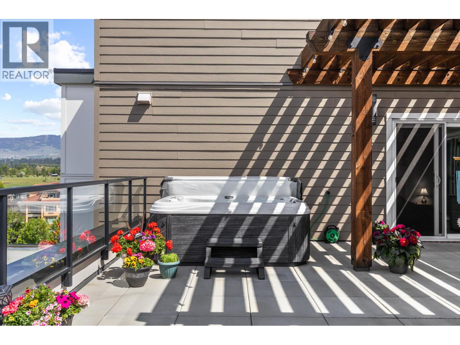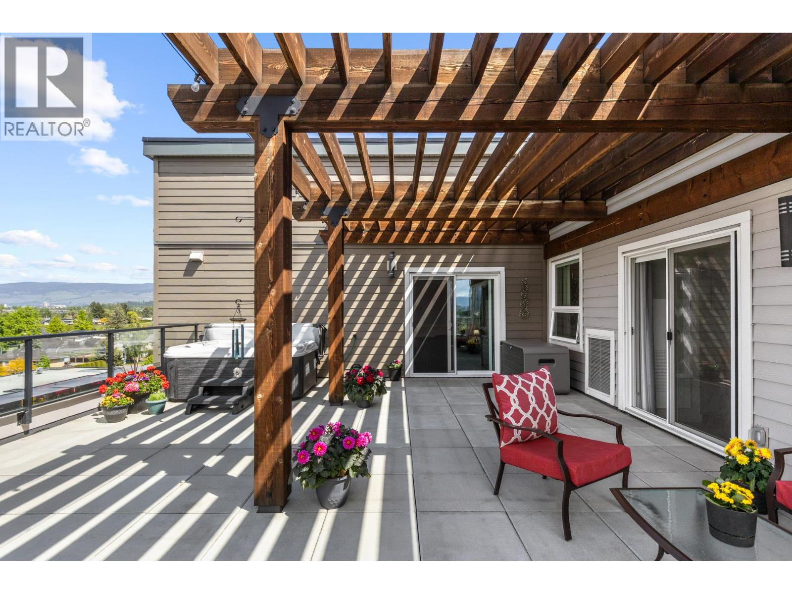 WOW - REDUCED AGAIN! FABULOUS PENTHOUSE offering 1,187 sq. ft. of bright living space with 2 bedrooms, 2 baths, den, plus 3 parking stalls! Private 640 sq.ft. rooftop terrace - complete with hot tub - providing panoramic views of the mountains, city skyline, and Okanagan Lake, in the heart of Kelowna’s Lower Mission. Inside, this top-floor condo offers a spacious and functional layout with engineered hardwood floors and oversized windows that flood the home with natural light. The kitchen is well-appointed with quartz countertops, an island with seating, gas stove, stainless steel appliances, and under-cabinet lighting—ideal for daily living or entertaining. The den includes custom built-in cabinetry and sliding double doors, making it a perfect flexible space for a home office. The primary bedroom features a walkthrough closet and 4-piece ensuite with dual sinks, opening window, and direct access to the rooftop terrace—creating your own private retreat. The second bedroom includes custom cabinets and a wall bed for flexibility. Additional highlights include 3 parking stalls (#124/#125 and #102 is a smaller stall), storage locker, BBQ gas hookup. Green Square is a secure building with bike storage, dog wash station, fitness facility, and guest parking. This is a rare opportunity to own a unique penthouse in a vibrant, walkable community—just steps from Mission Creek trails, and Okanagan Lake. Strata $453.66/month. 2 pets allowed. Click VIRTUAL TOUR for more! (id:58842)