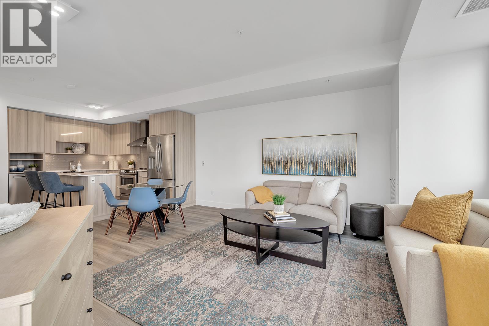 DEVELOPER PROMO NO STRATA FEES FOR 3 YEARS!! Welcome to Green Square Vert in the heart of Kelowna’s Lower Mission. This brand new 6th floor home in Building B offers 900 sq. ft. of modern living with 2 bedrooms, 2 bathrooms, and 2 parking stalls. Inside, you’ll find a thoughtfully designed layout with a clean, contemporary style. The open concept kitchen and living area feature quartz countertops, chrome fixtures, and calming modern tones throughout. The bright living space extends to a large northeast-facing patio, where you can enjoy mountain views and make the most of Okanagan evenings with a gas BBQ hookup. Green Square Vert residents enjoy a range of amenities, including a rooftop patio, community garden, fitness facility, dog/bike wash station, and secure bike storage. The location is hard to beat, beaches, shopping, schools, and restaurants are all close by, offering a true blend of convenience and lifestyle. Price is GST applicable. First-time buyers may qualify for the BC new construction GST exemption. (id:58842)