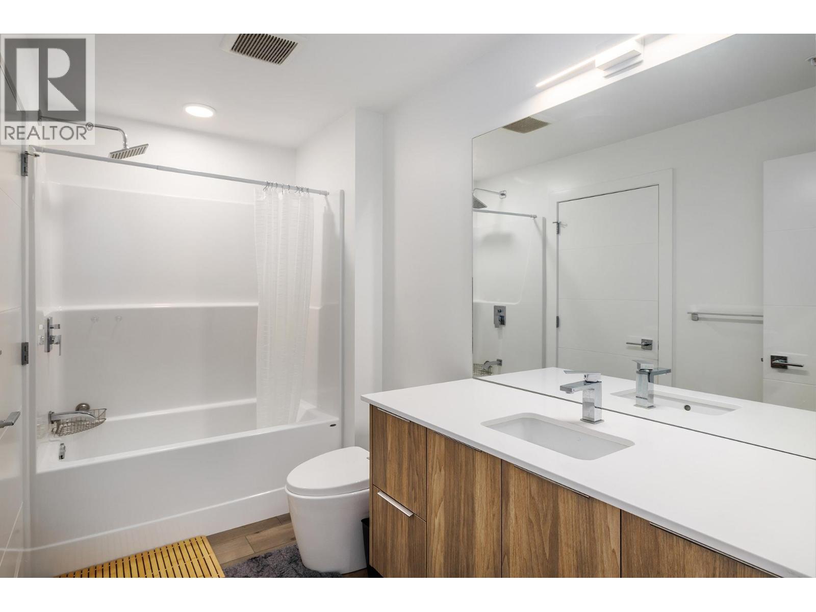 Welcome to Green Square in Kelowna’s Lower Mission—an ideal home base for professionals, downsizers, or investors. This 1-bedroom + den, 1-bath condo offers 750 sq. ft. of bright, functional living space and can be sold fully turnkey for added convenience. The kitchen features quartz countertops, soft-close components in cabinetry, and quality Frigidaire appliances, including an electric range with gas hookup available. An eat-in island with seating for two flows into the open living area, where sliding doors open to a spacious covered deck with glass railings, a gas line, and views of the surrounding mountains. The primary bed room includes a walk-in closet and direct access to the 4-piece bath with a floating vanity and tub/shower combination. A separate den provides flexible space for guests or a home office, while in-suite laundry and A/C offer comfort and practicality. Located just steps from Casorso Elementary and walking distance to beaches, restaurants, shops, Pandosy Village, breweries, and wineries. The pet-friendly building also features a rooftop patio with panoramic views—perfect for enjoying the Okanagan lifestyle. Vacant & ready for quick possession! (id:58842)
