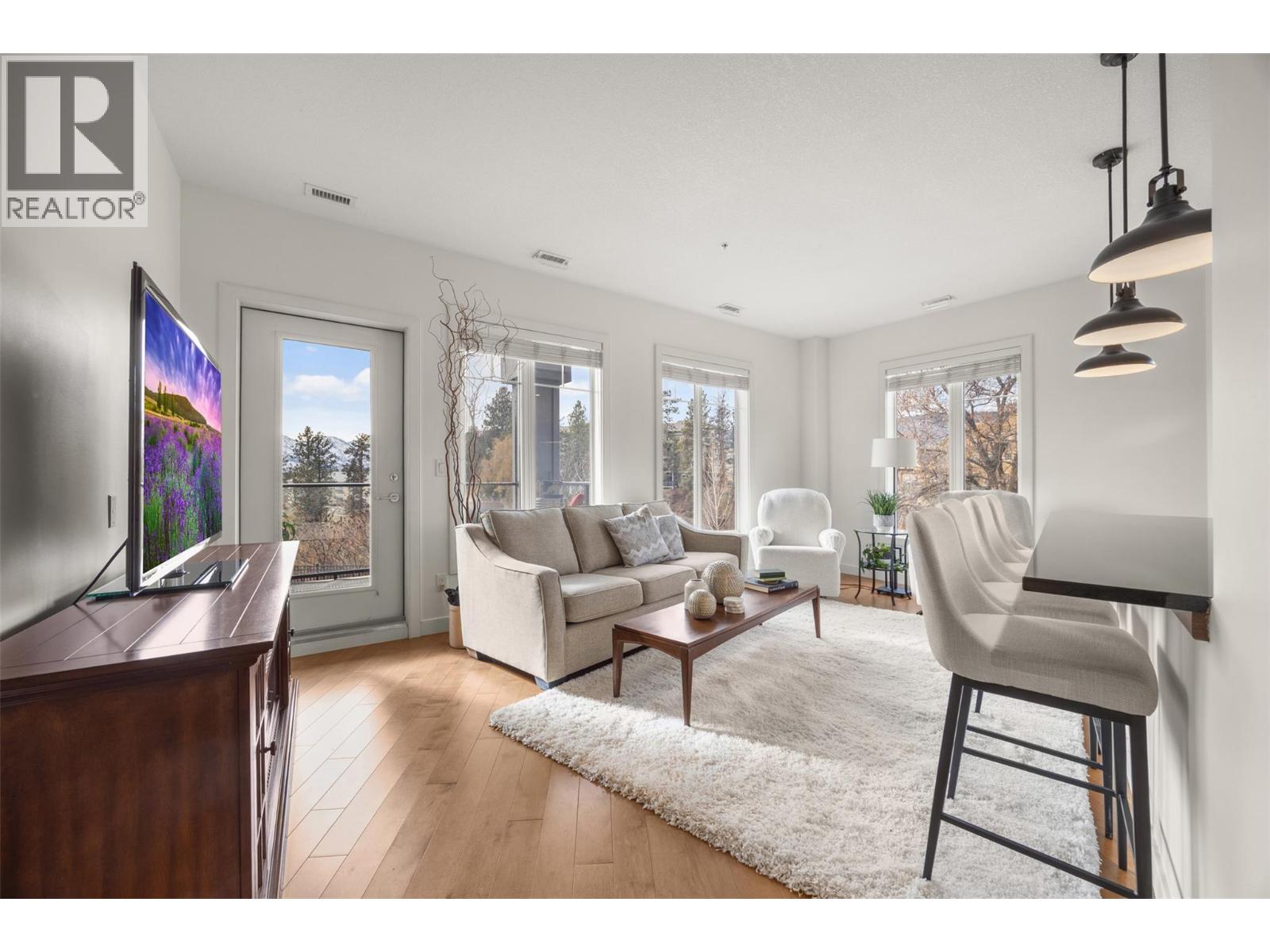 Fabulous 2-bedroom, 2-bathroom corner unit with lake views and a unique layout featuring two walls of windows that fill the space with natural light. The interior offers timeless cabinetry, a stylish tile backsplash, stainless steel appliances, and a quartz island, creating a modern and functional living area. The well-designed floor plan places the bedrooms on opposite sides of the unit, providing excellent privacy—ideal for roommates or guests. This second-floor, southwest-facing condo is exceptionally quiet, with concrete construction and no unit directly above. Enjoy convenient access with parking right outside your door—no long hallways or elevators required. Includes two parking stalls and two generously sized storage lockers. Relax on the spacious deck with lake views, a gas BBQ hookup, and plenty of room for patio furniture. Centrally located close to shopping, dining, and just a couple of blocks from Gellatly Bay and nearby beaches. No rental or age restrictions, and allows up to two small dogs or cats, or one of each. (id:58842)