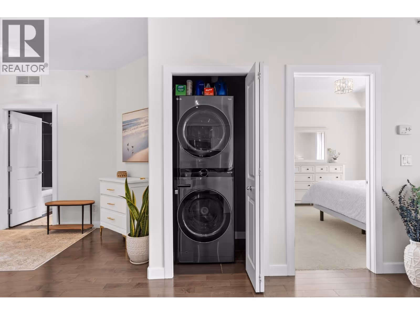 Perched on the top floor with sweeping views of the lake, mountains, and creek, this beautifully upgraded condo invites you to live the Okanagan lifestyle to its fullest. Wake up in a bright, open-concept home where high ceilings, hardwood floors, granite countertops, and modern cabinetry set the stage, and new carpet, appliances (with transferable warranty), fresh paint, new lighting and window blinds add a fresh touch. Step onto your spacious balcony with gas bbq hookup, and watch the sun rise over the hills or the light dance on the water. With central heat and A/C, comfort is yours in every season, and the well-run strata keeps life simple with affordable fees that include heat, water, and cooling! Your secure underground parking stall comes with a large attached storage locker, and guests will always find space in the abundant visitor parking. This pet-friendly (up to 40lbs and 16"" at the shoulder) building is surrounded by parks and green space, with a walking path that leads you straight to the beach! Just minutes from Two Eagles Golf, shops, restaurants, the aquatic centre, library, and only a short drive to Smith Creek’s legendary mountain bike trails, every convenience and adventure is close at hand. Freehold ownership offers peace of mind, while the second bedroom (without a window) is perfect for an office, guest room, or creative space. Here, you’ll find not just a condo, but a home that blends comfort, community, and the beauty of West Kelowna all in one! (id:58842)