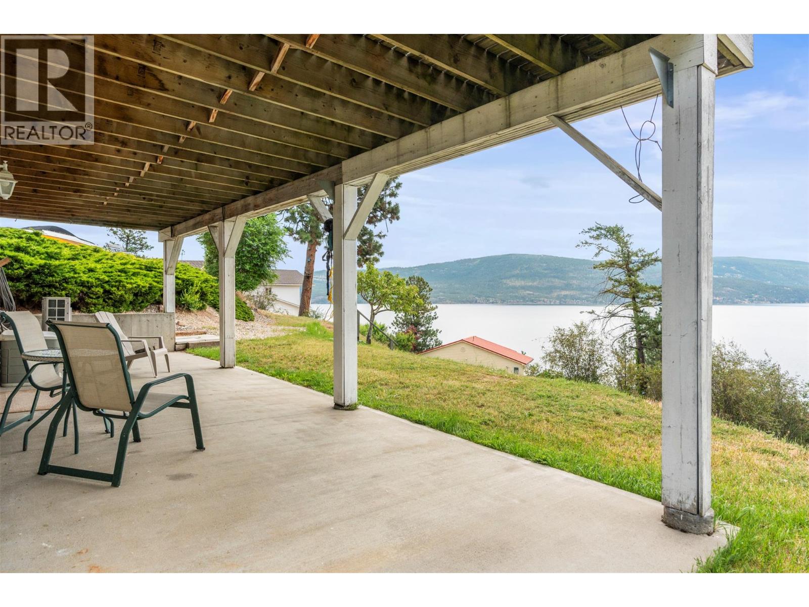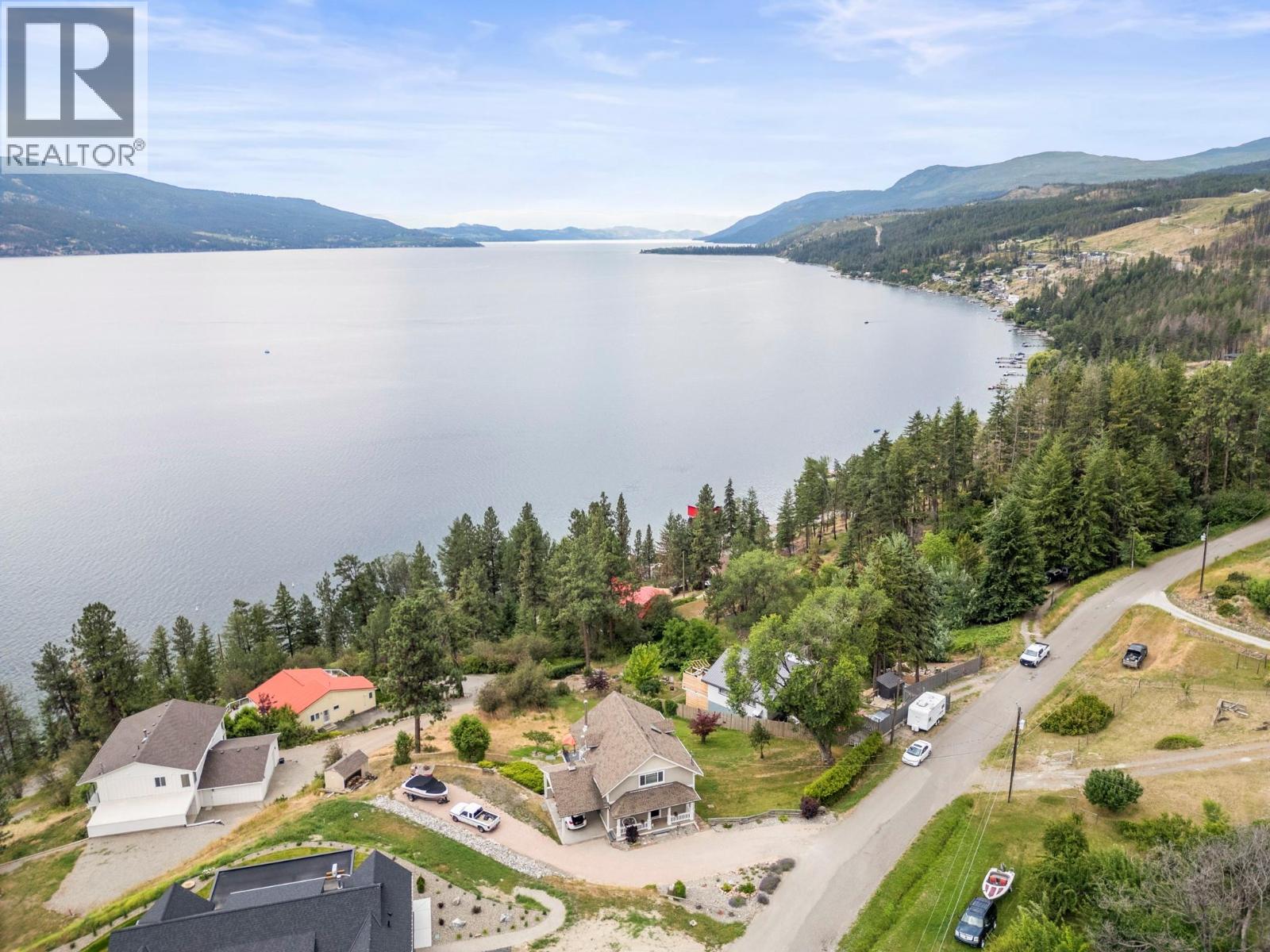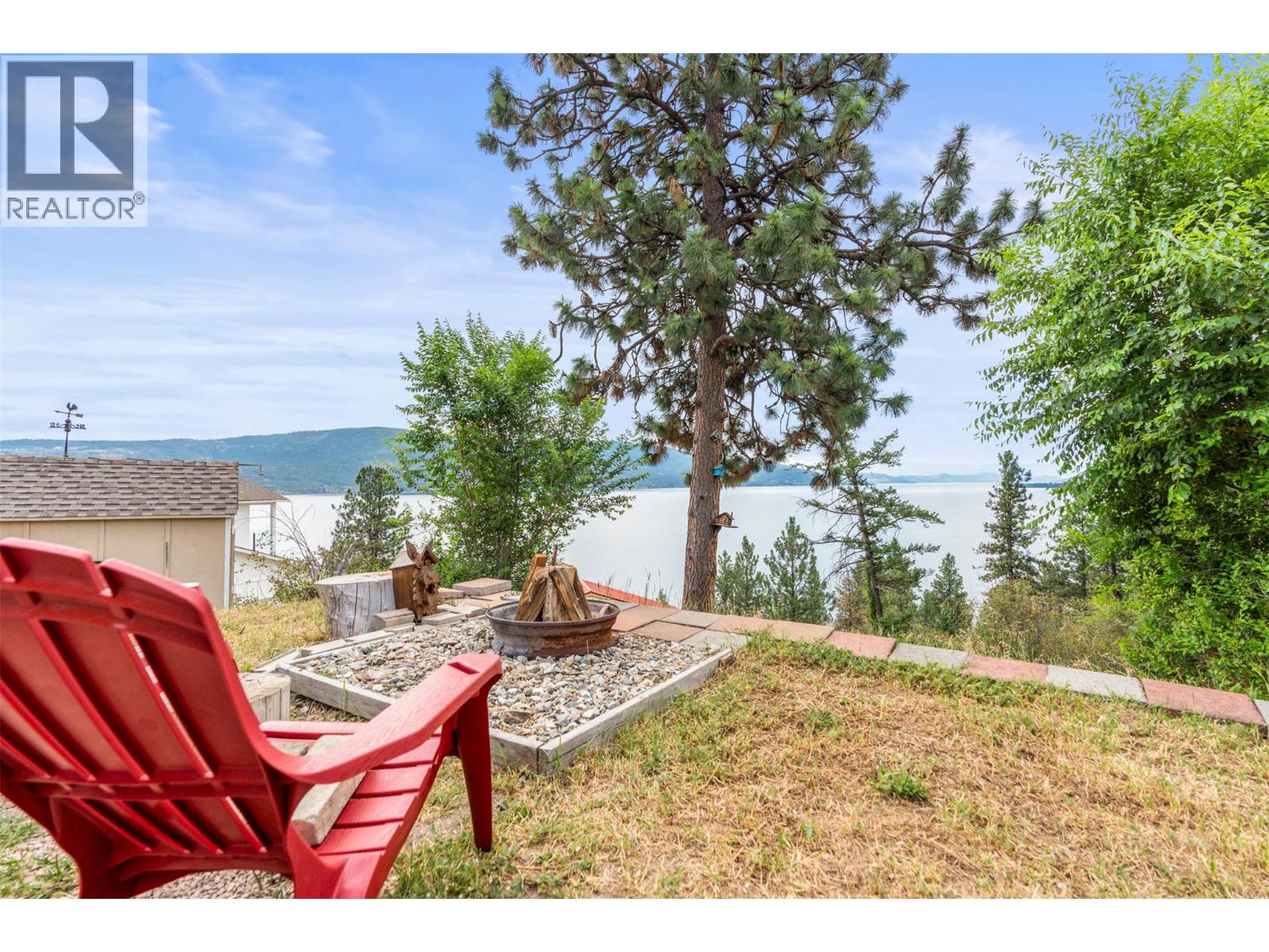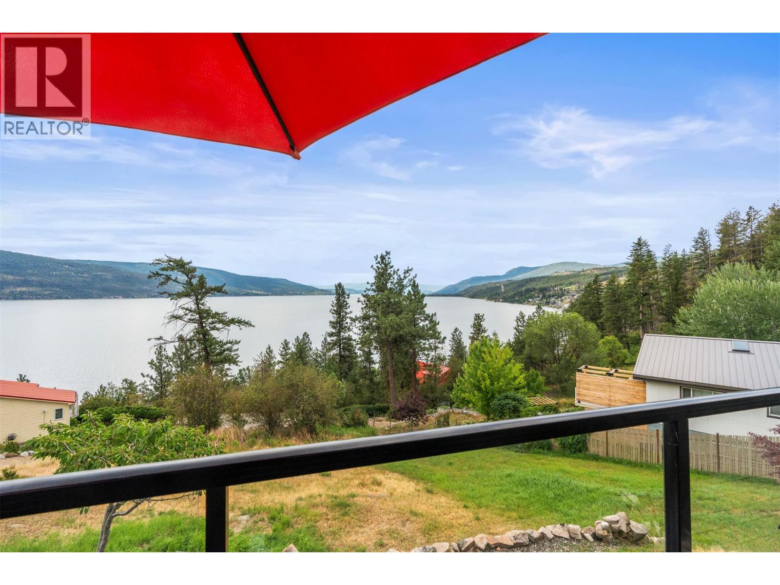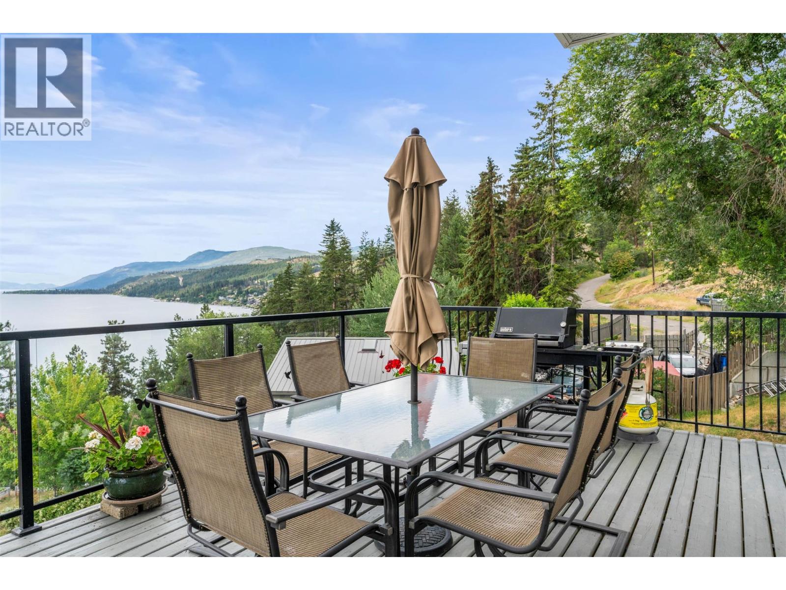 Welcome to your dream lakeview retreat! This well-maintained family home is perfectly perched to capture breathtaking expansive views of the lake from all three levels, with large south-facing windows and multiple decks to soak in the scenery. Whether you're sipping coffee on the upper balcony or enjoying a sunset by the fire pit, the views are truly unmatched. Inside, the layout is both functional and flexible. The main floor features an open-concept kitchen and dining area, seamlessly flowing into a cozy living room with a wood fireplace and walkout to a spacious deck. A full 3-piece bathroom and bedroom complete the main level. Upstairs, the oversized primary suite offers a true retreat with a sitting area, skylit 4-piece ensuite with soaker tub, and private balcony. A second bedroom with 2-piece ensuite is located across the hall. The fully finished walk-out lower level includes two additional bedrooms, a full bath, kitchen and laundry—ideal for an in-law suite or mortgage helper.Outside, enjoy ample parking including RV/boat space, a carport, mature fruit trees, a shed for garden tools, and a welcoming neighbourhood vibe. You’re just 5 minutes to the public beach and boat launch and only 10 minutes to Fintry Park. This is lake life at its best, flexible, scenic, and full of possibility. (id:58842)