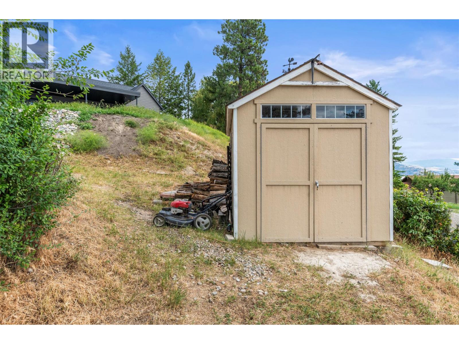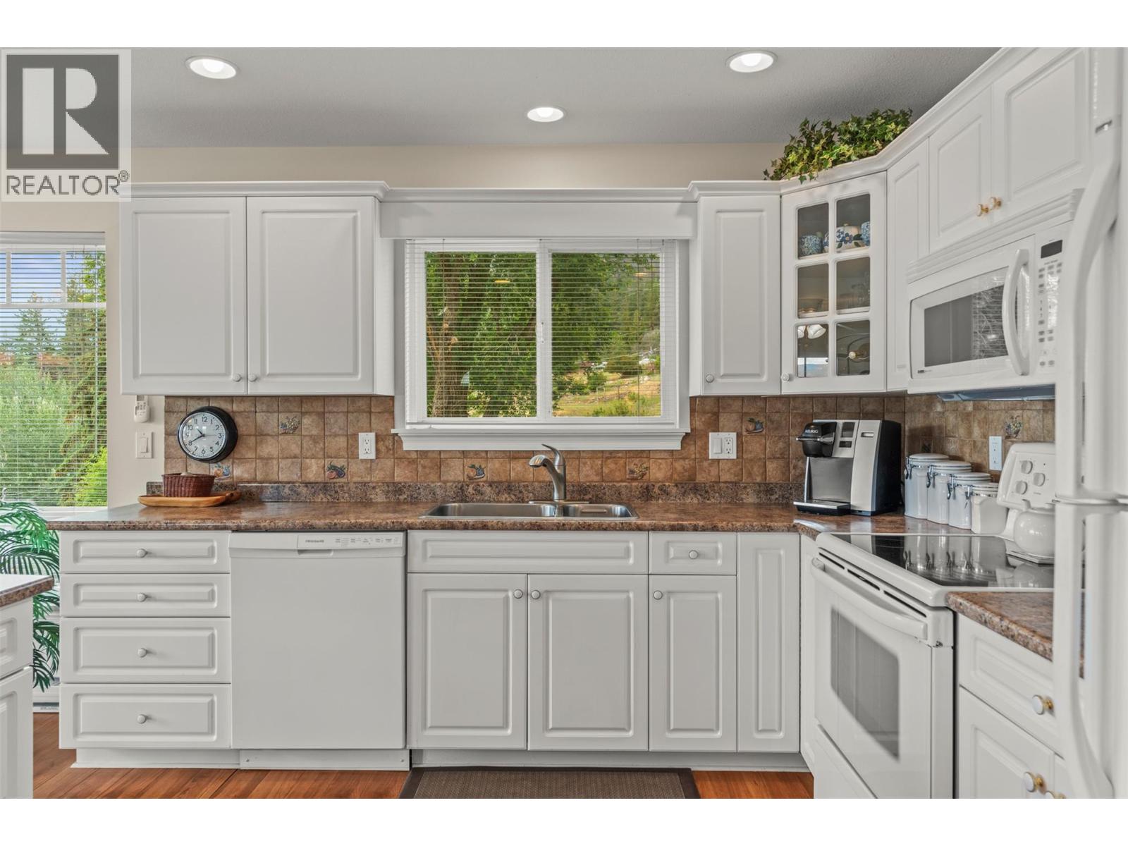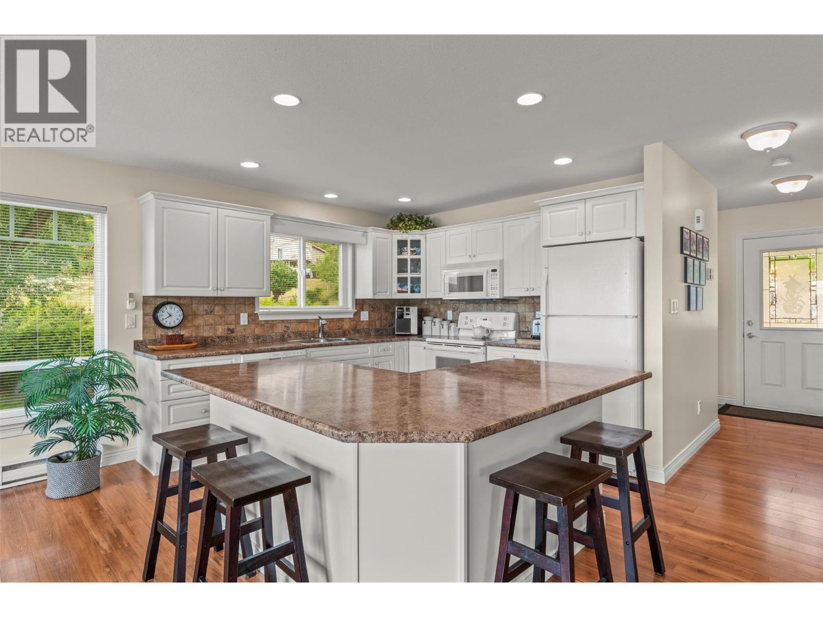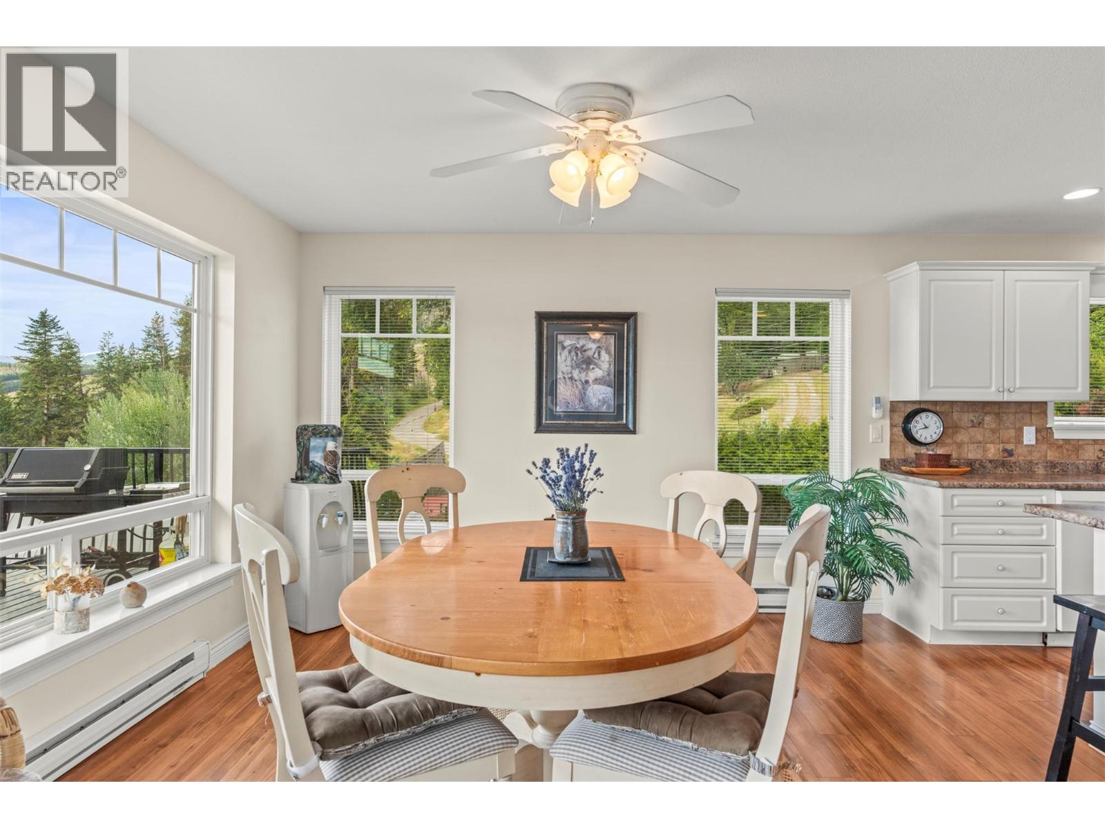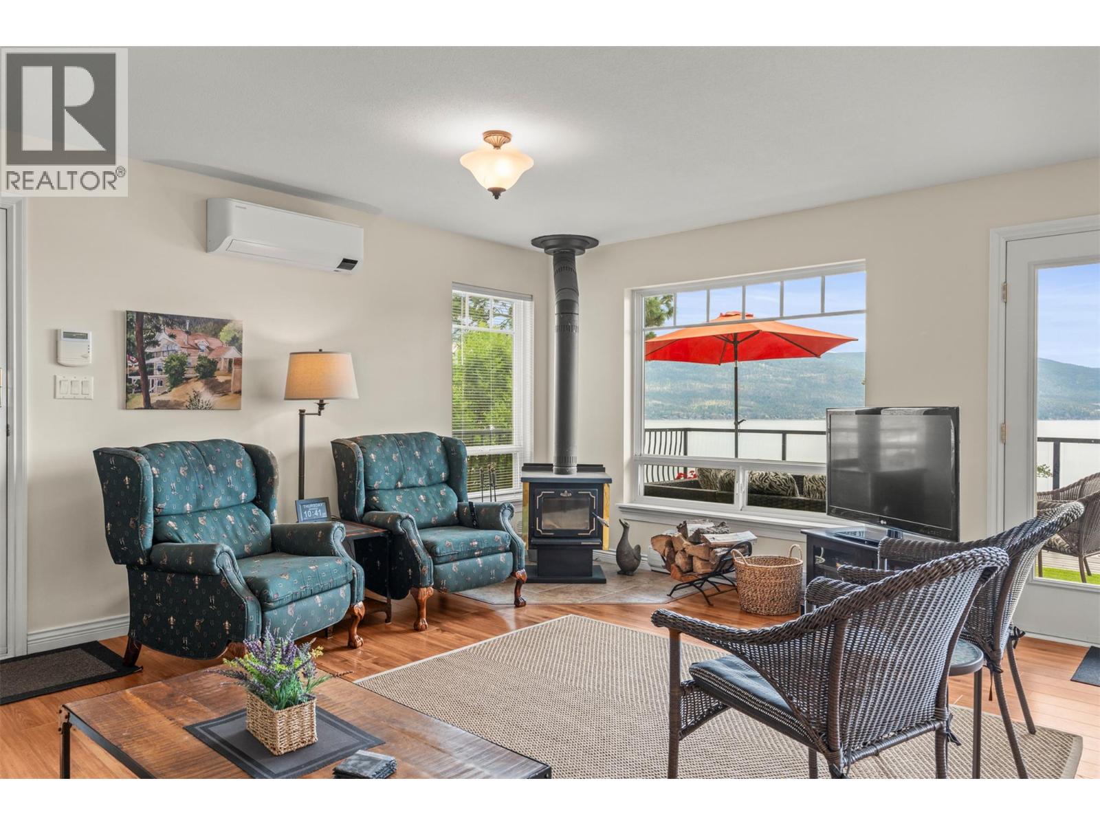 Welcome to your dream lakeview retreat! This well-maintained family home is perfectly perched to capture breathtaking expansive views of the lake from all three levels, with large south-facing windows and multiple decks to soak in the scenery. Whether you're sipping coffee on the upper balcony or enjoying a sunset by the fire pit, the views are truly unmatched. Inside, the layout is both functional and flexible. The main floor features an open-concept kitchen and dining area, seamlessly flowing into a cozy living room with a wood fireplace and walkout to a spacious deck. A full 3-piece bathroom and bedroom complete the main level. Upstairs, the oversized primary suite offers a true retreat with a sitting area, skylit 4-piece ensuite with soaker tub, and private balcony. A second bedroom with 2-piece ensuite is located across the hall. The fully finished walk-out lower level includes two additional bedrooms, a full bath, kitchen and laundry—ideal for an in-law suite or mortgage helper.Outside, enjoy ample parking including RV/boat space, a carport, mature fruit trees, a shed for garden tools, and a welcoming neighbourhood vibe. You’re just 5 minutes to the public beach and boat launch and only 10 minutes to Fintry Park. This is lake life at its best, flexible, scenic, and full of possibility. (id:58842)