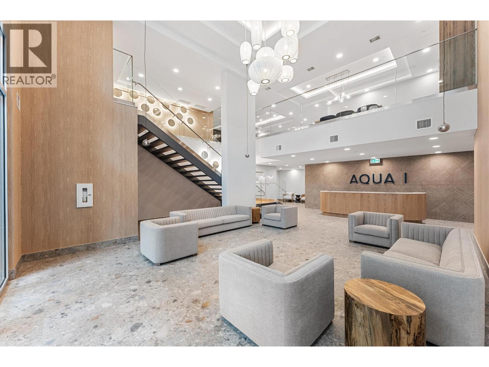 Experience unparalleled lakeside living at Aqua Waterfront Village, a premier development by the award-winning Mission Group. This brand-new, SW-facing 2-bed + den, 2-bath residence offers 1,149 sq. ft. of elegant interior living complemented by an expansive 1,000+ sq. ft. patio perfect for entertaining while soaking in Okanagan Lake views. Designed with sophistication and simplicity, this residence features a bright, open floor plan with calming neutral tones. The chef-inspired kitchen showcases modern flat panel cabinetry, polished quartz countertops, a stunning waterfall island, & stainless-steel appliances. The primary suite is a serene retreat, boasting lake views, a custom walk-through closet, & a spa-like 4-piece bath with a glass-enclosed shower. Thoughtfully positioned bedrooms on opposite sides of the home enhance privacy, while premium upgrades throughout elevate the luxury feel. Residents enjoy resort-style amenities, including a fifth-floor podium with a pool, hot tub, firepit enclaves, BBQ area, & a two-story fitness centre. Additional conveniences include a fireside lounge, bike storage & wash station, dog wash, & exclusive access to the Aqua Boat Club. Nestled in the heart of Lower Mission, Aqua Waterfront Village is just steps from coffee shops, restaurants, breweries, boutique shopping, & Kelowna’s best beaches. Two side-by-side parking stalls located closest to the elevator (1 stall features an EV charger) and one storage locker included. NO GST. (id:58842)