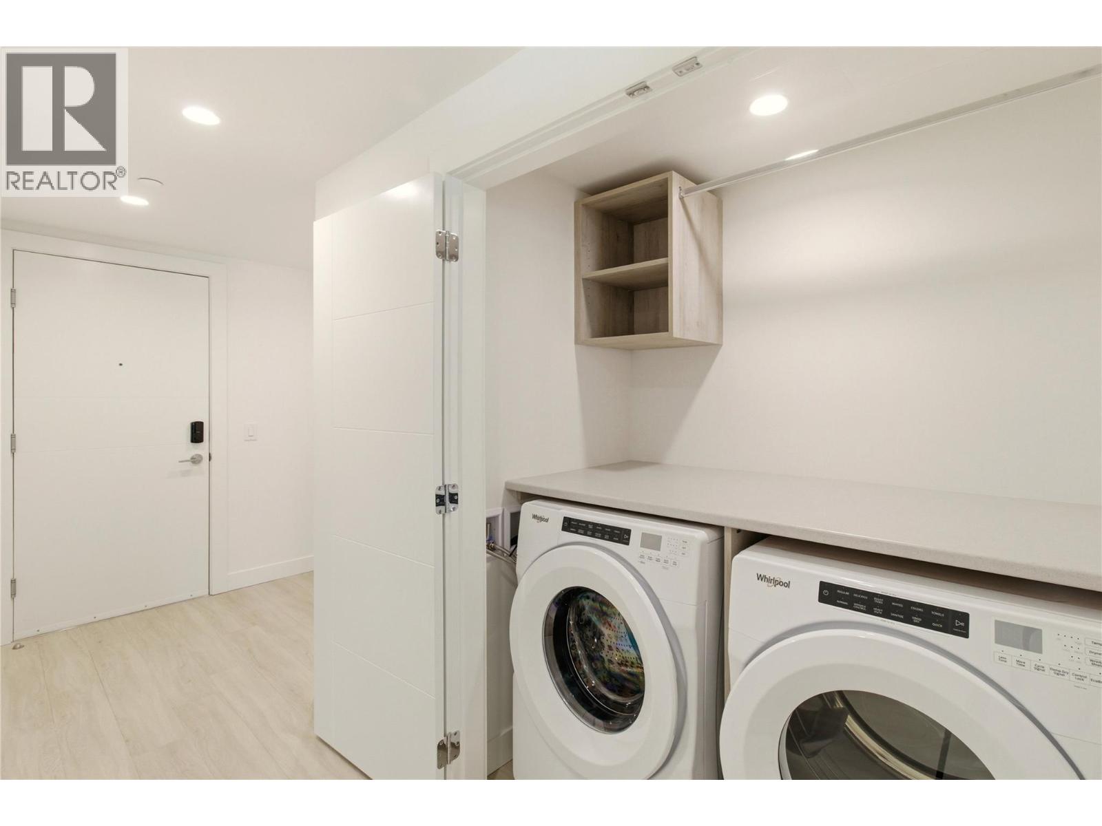 Discover resort-style living at Aqua Waterfront Resort, perfectly positioned in Kelowna’s sought-after Lower Mission just steps from the lake. This 2-bedroom, 2-bathroom 13th-floor unit features 1,057sq. ft. of thoughtfully designed space with expansive windows, high ceilings, and a bright open-concept layout. A split-bedroom design provides ideal privacy, while the northwest-facing covered balcony captures lake, city, and mountain views. The modern kitchen showcases two-toned cabinetry, quartz countertops, a waterfall island, premium stainless steel appliances, and a wine fridge. The living space is enhanced by wide-plank flooring and abundant natural light. The primary suite offers a spa-inspired ensuite, while the second bedroom is perfect for guests or a home office. Additional features include full-size laundry, upgraded storage, fiber-optic wiring, and efficient VRV heating/cooling. Includes 2 secure parking stalls and a storage locker. Pet-friendly with no size restrictions. Enjoy resort-style amenities: outdoor pool & hot tub, fireside lounge, 2-storey fitness centre, yoga studio, co-working space, BBQ area, pet wash, and more. Optional Aqua Boat Club access adds to the ultimate Okanagan lifestyle. (id:58842)