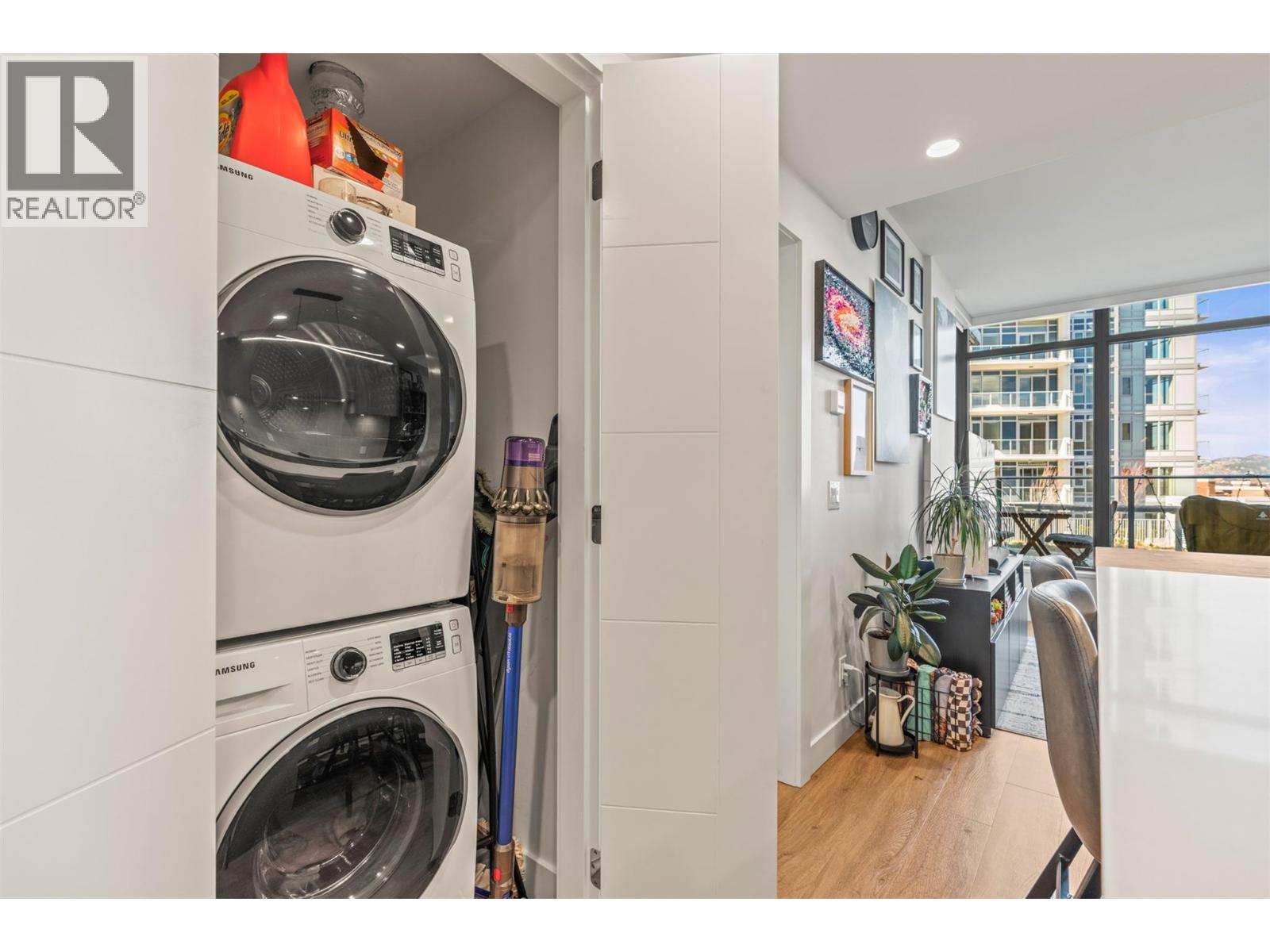 Welcome to waterfront living in suite 601 at AQUA Phase 1. This lake-facing 1 bedroom, 1 bathroom home offers 498 sq. ft. of well-designed living space, showcasing beautiful water, mountain and pool views from the oversized patio. The home includes 1 secure parking stall, a storage locker, and a customized in-suite laundry system. Quality construction features 8” concrete between floors, oversized windows, and a central hot water system (included in strata fees), along with energy-efficient VRV heating and cooling and ERV. Modern finishes include quartz countertops, stainless steel appliances, upgraded closet organizers and fiber-optic connectivity. This building is pet-friendly, permitting 2 pets with no size restrictions. AQUA will soon allow short-term rentals, offering excellent flexibility and investment potential. Enjoy premium amenities including an outdoor pool and hot tub, BBQ area, fireside lounge, two-storey fitness centre with yoga space, co-working area, shared kitchen, and dog wash station. Ownership offers priority access to the Aqua Boat Club (subject to availability). Located steps to Kelowna’s vibrant waterfront, dining, shopping, and recreation. New home warranty in place. GST paid. Measurements to be verified if important. (id:58842)