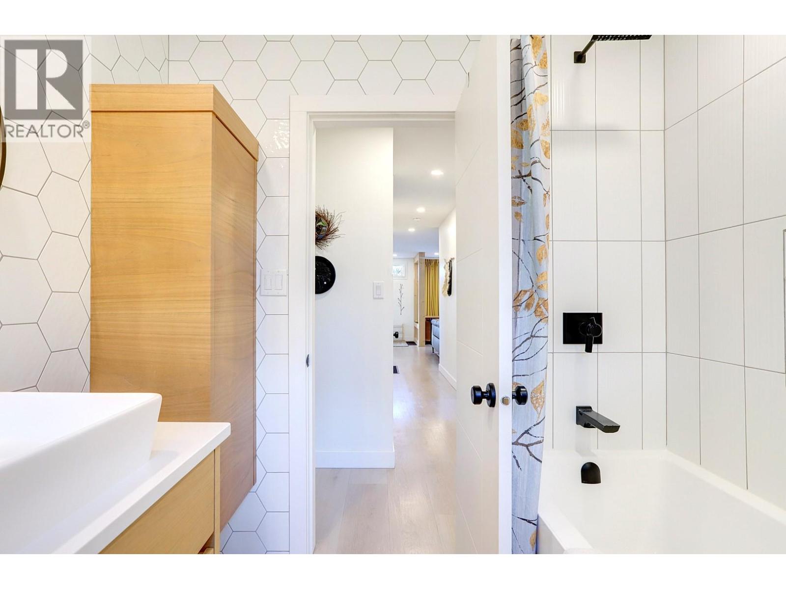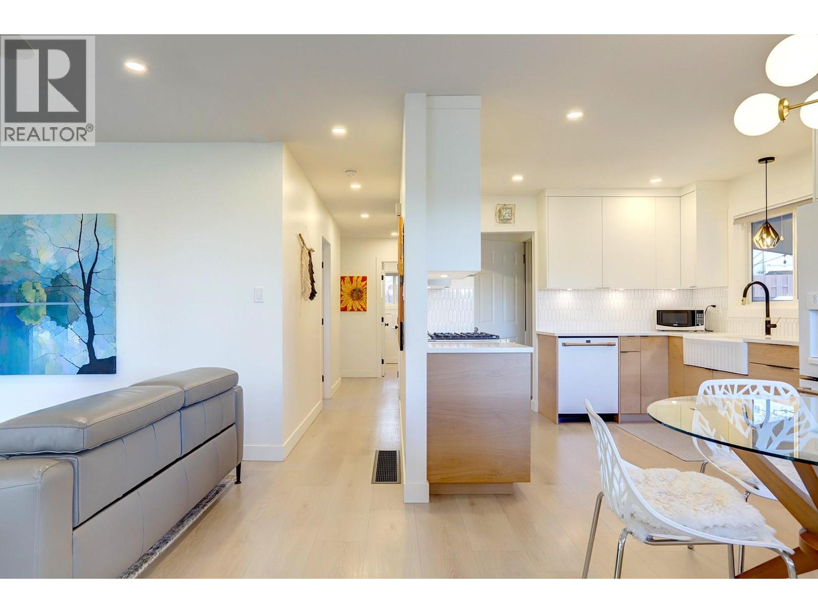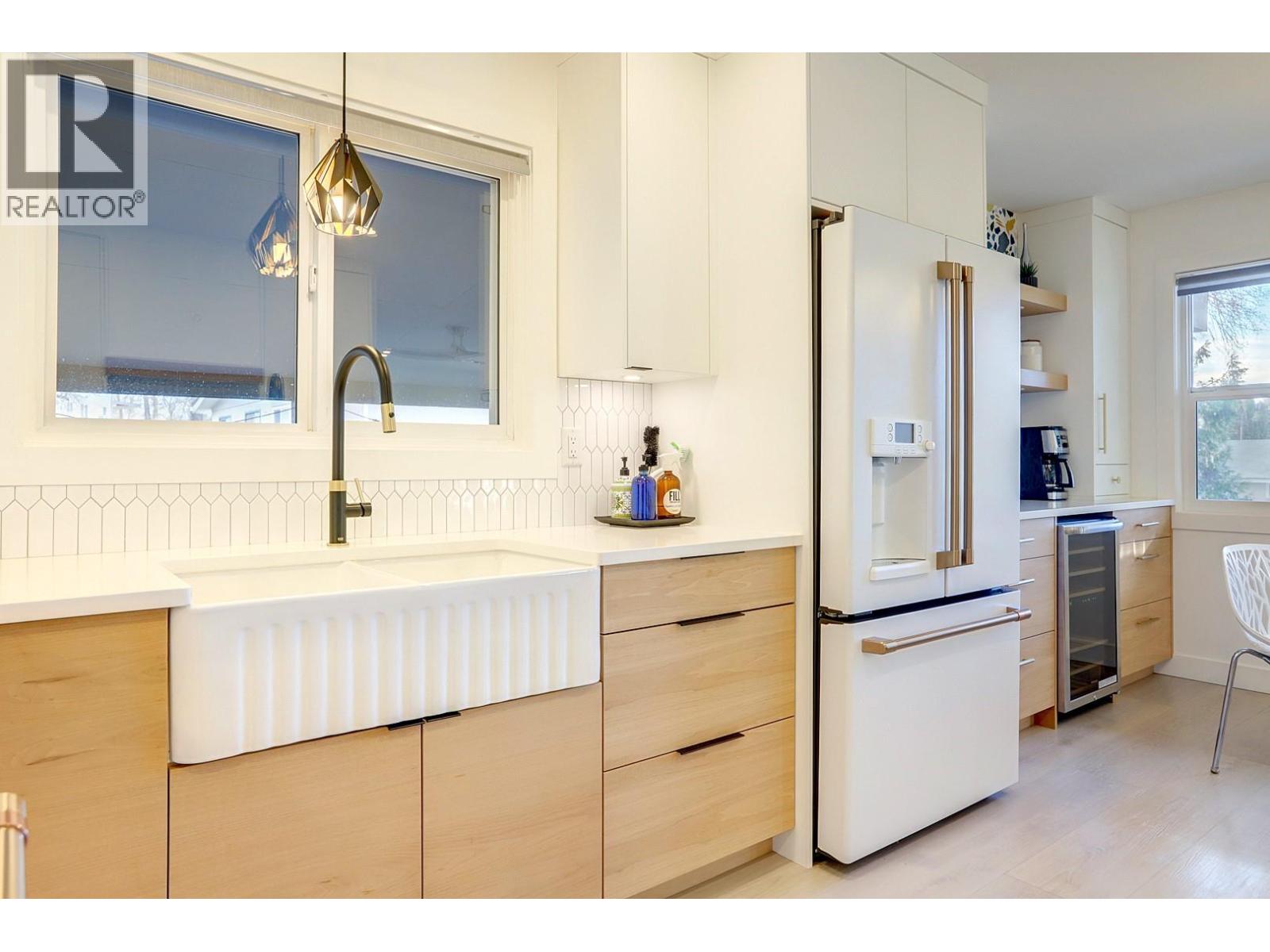 Quietly set on a cul-de-sac in desirable Lower East Hill/Harwood, this beautifully updated home offers privacy, flexibility, and close proximity to downtown. Elevated above the street, the home enjoys excellent separation from the road and abundant natural light throughout. The main floor is bright and thoughtfully renovated with a clean, modern aesthetic. The stunning kitchen features high-end GE Series appliances, custom cabinetry, open shelving, and a functional layout that flows seamlessly into the dining and living areas—perfect for everyday living. Contemporary lighting, wide-plank flooring, and tasteful design choices create a warm, refined atmosphere. Downstairs, a separate unauthorized suite with its own kitchen provides excellent flexibility for intergenerational living, potential rental income, or a home-based business. Two additional bedrooms complete the lower level, with storage thoughtfully tucked into the south-facing bedroom. The layout allows the entire home to function as a single residence, offering flexible living options for buyers seeking a cohesive family home. Outside, the private backyard is peaceful and easy-care, featuring irrigated landscaping and a simple, low-maintenance design. The driveway includes stamped, coloured concrete at the apron with a broomed finish through the ample parking area, providing improved vehicle traction. Measurements taken from iGuide and should be verified if important to a buyer. (id:58842)