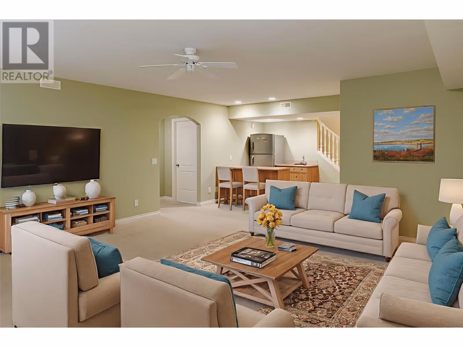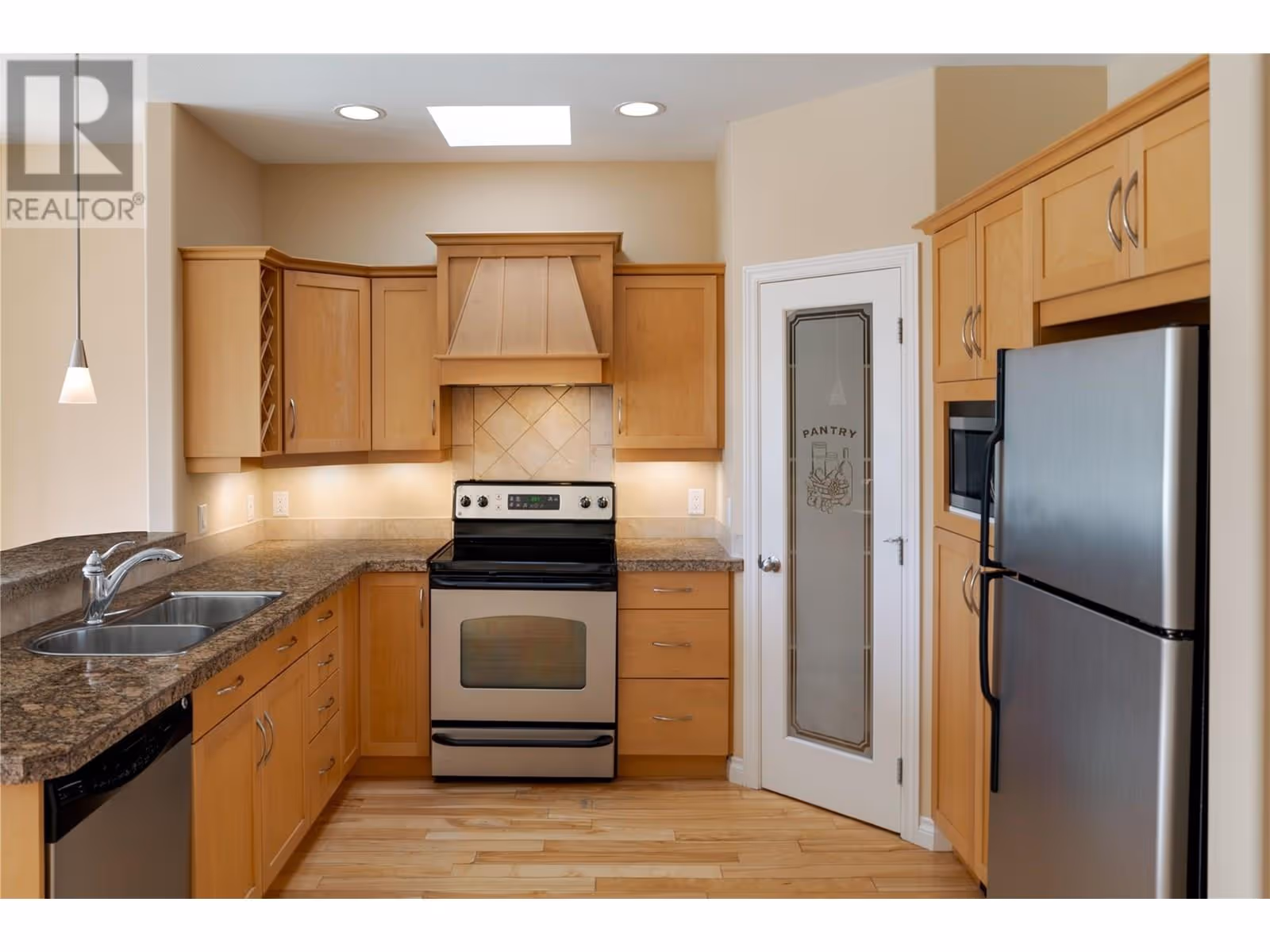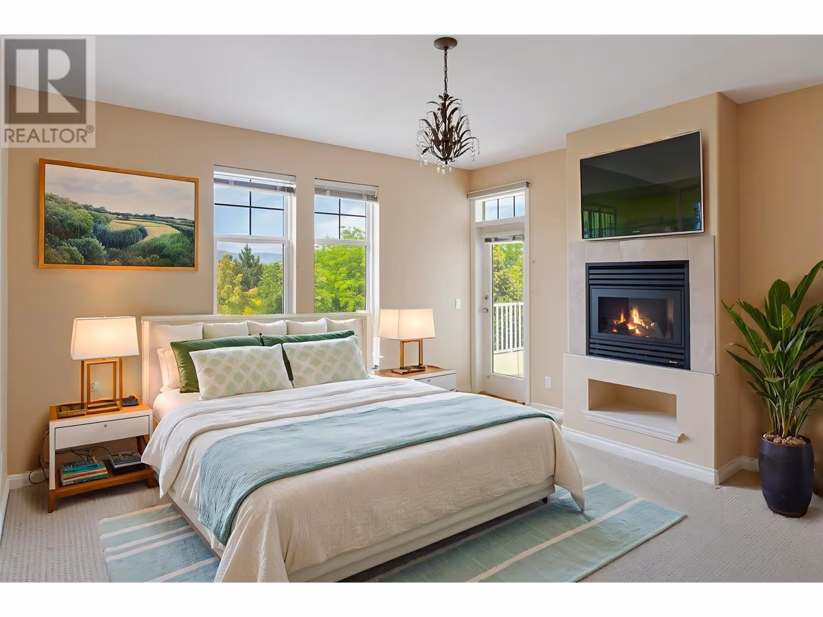 Discover this bright & inviting home offering a versatile floor plan and stunning valley views. Situated in a quiet, family-friendly Kettle Valley neighbourhood, famous as an award winning elite residential community with local shops and services. This residence provides the perfect blend of comfort and functionality. The main level features an open-concept design flooded with natural light, highlighted by warm hardwood flooring and a cozy gas fireplace. The spacious kitchen includes a large island with bar seating, stainless appliances, and a pantry — ideal for everyday living and effortless entertaining. Step outside to a generous sun deck to enjoy morning coffee or evening sunsets overlooking mature trees and mountains beyond. The primary suite is a true retreat, complete with its own fireplace, access to the deck, a walk-in closet, and a spacious ensuite with dual vanities and a soaker tub. The lower level offers two additional bedrooms, a full bathroom, a large family room with fireplace, and a wet bar area — presenting excellent flexibility for guests, a recreation space, or future suite potential. Enjoy the covered patio that seamlessly extends your living space outdoors. Additional highlights include a double garage, abundant storage, and welcoming covered entry set above the street for added privacy and presence.This is a fantastic opportunity to personalize and create your dream Okanagan home in a peaceful setting just minutes from schools, shops, parks & amenities. (id:58842)