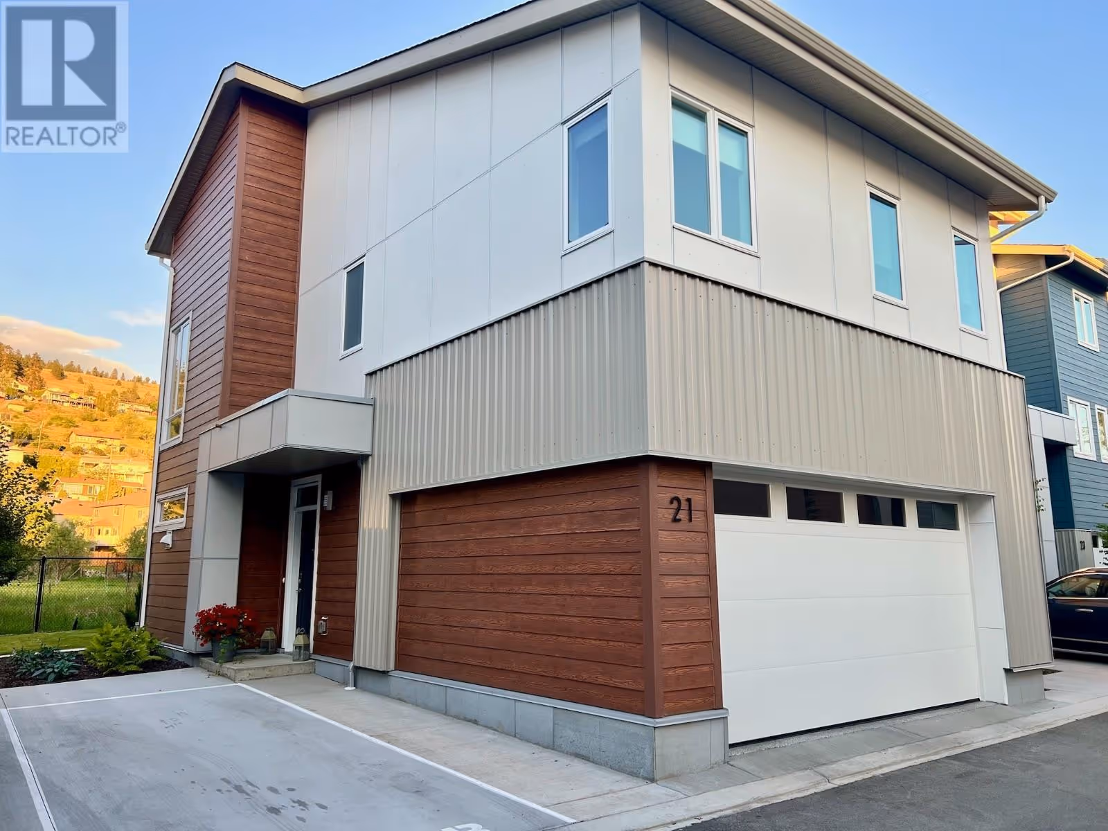 Click brochure link for more details. Modern Elegance Meets Everyday Comfort in this Rare Lake Country Gem Discover this exceptional 2024-built end-unit townhome, featuring the rare and sought-after ‘Splash’ floor plan with main-level living and fewer stairs. This stylish 3-level home offers 9–12 ft ceilings, hardwood floors, and abundant natural light. The chef’s kitchen dazzles with quartz counters, two-toned cabinetry, pull-out storage, stainless steel appliances (including gas range), and an oversized island—perfect for entertaining. A cozy electric fireplace anchors the open-concept living room, which flows to a spacious patio with gas BBQ hookup. Upstairs, the primary suite impresses with a walk-in closet and spa-inspired ensuite boasting dual vanities and a glass shower. Two additional bedrooms, a full bath, and laundry room provide space and ease. A versatile loft offers endless possibilities—plus access to a private 158 ft² rooftop deck with gas hookup, ideal for a hot tub or fire table overlooking the Rail Trail. Extras include central A/C & humidifier, central vacuum, epoxy garage with storage, fenced yard, garden plot, and energy-efficient features. Situated across from tennis courts, playgrounds, scenic trails, and dog-friendly beaches. Minutes to UBCO, Kelowna Airport, schools, local markets, wineries, and golf. Whether you're right-sizing, relocating, or investing, this move-in-ready gem delivers lifestyle and location in one incredible package. (id:58842)
