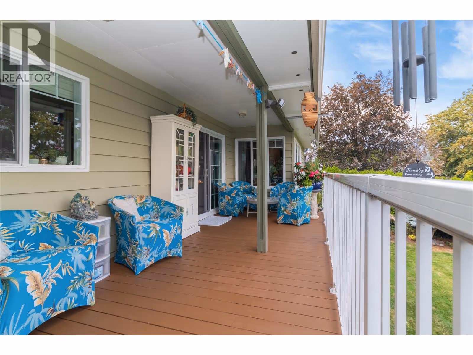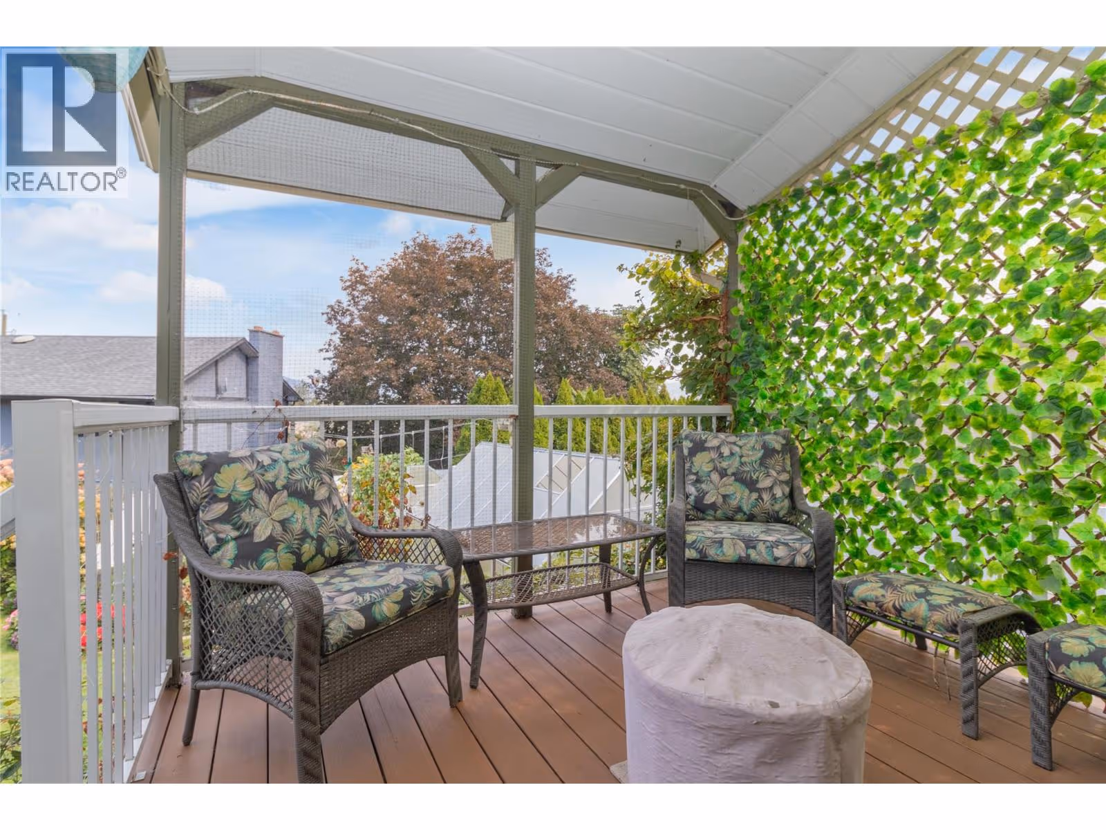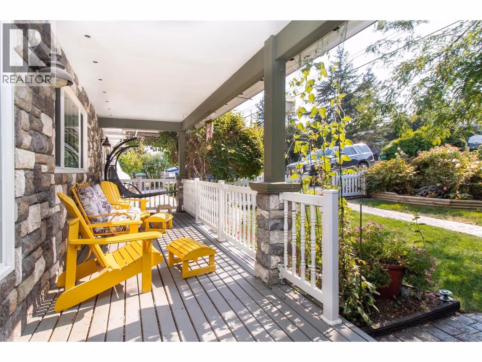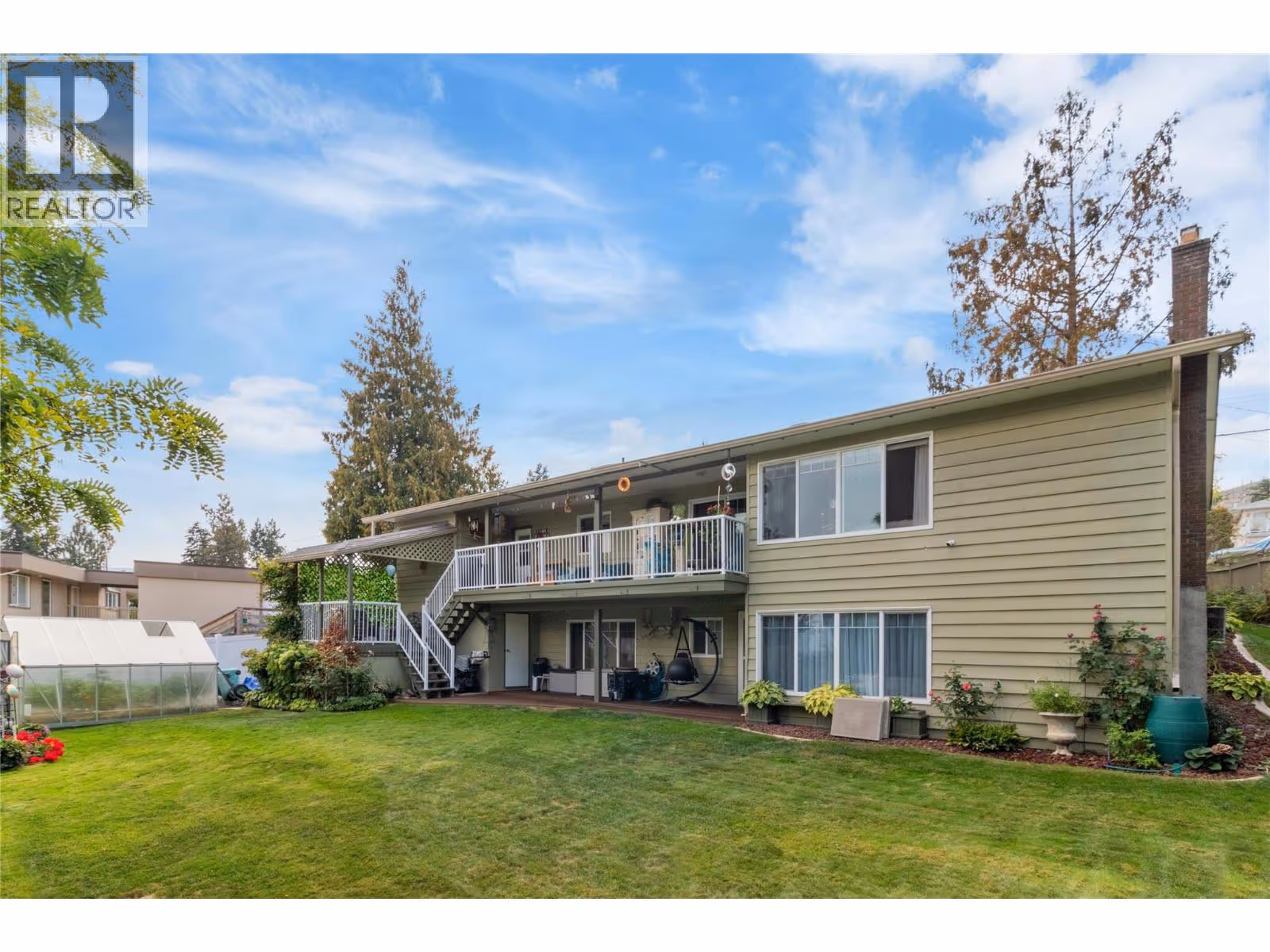 Enjoy the lake views from this immaculately maintained walk-out rancher. 3 bedrooms plus den, 2.5 baths. Skylights in kitchen and main floor bathroom. High ceilings in living room with gas fireplace. Bedroom currently being used as an office/studio, contains built-in murphy bed. Large bright kitchen with quarts countertops. Main floor laundry. Large rec room with freestanding gas fireplace. Large storage room on basement level together with 8' x 6' vented cool room with plenty of shelving for all your food and wine storage needs. Large garden area with 8' x 12' greenhouse. Single car garage with work bench and separate tool room. RV parking and plenty of off street parking. U/G irrigation, Central A/C and vacuum, newer furnace and hot water tank. Water softener and water purifier in kitchen. New roof in 2022. Enjoy your morning coffee on the front veranda and your after dinner drink on the large entertainment deck off the dining room or around the firepit on the lower deck. Lower deck is wired and was originally built to contain a hot tub. Close to schools, shopping, and wineries. (id:58842)