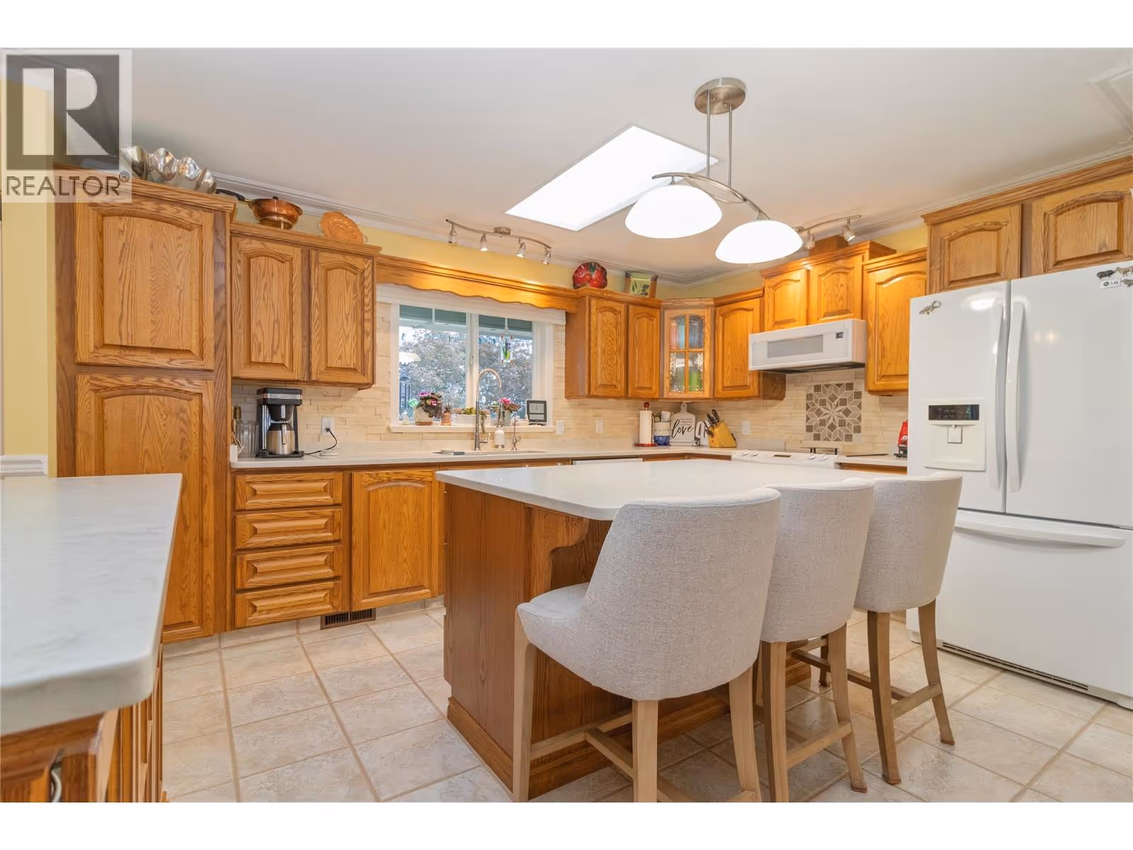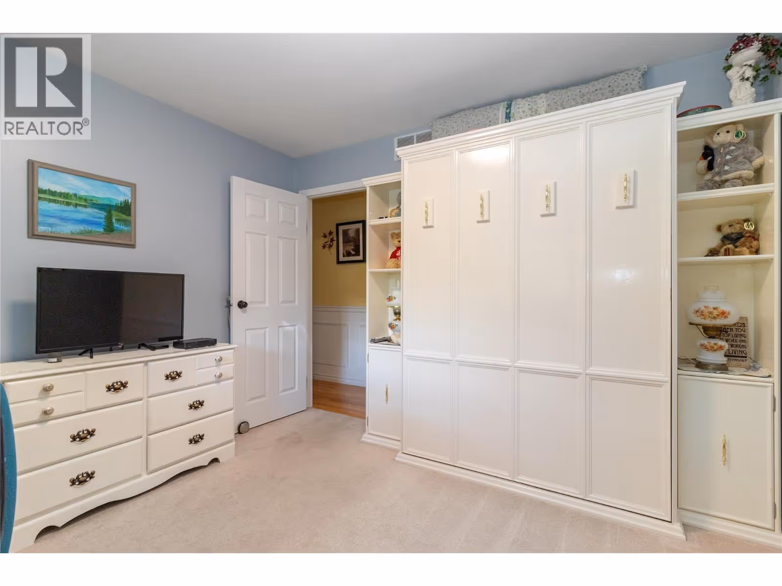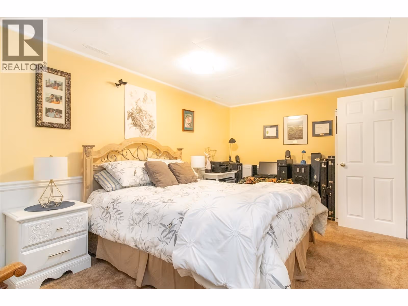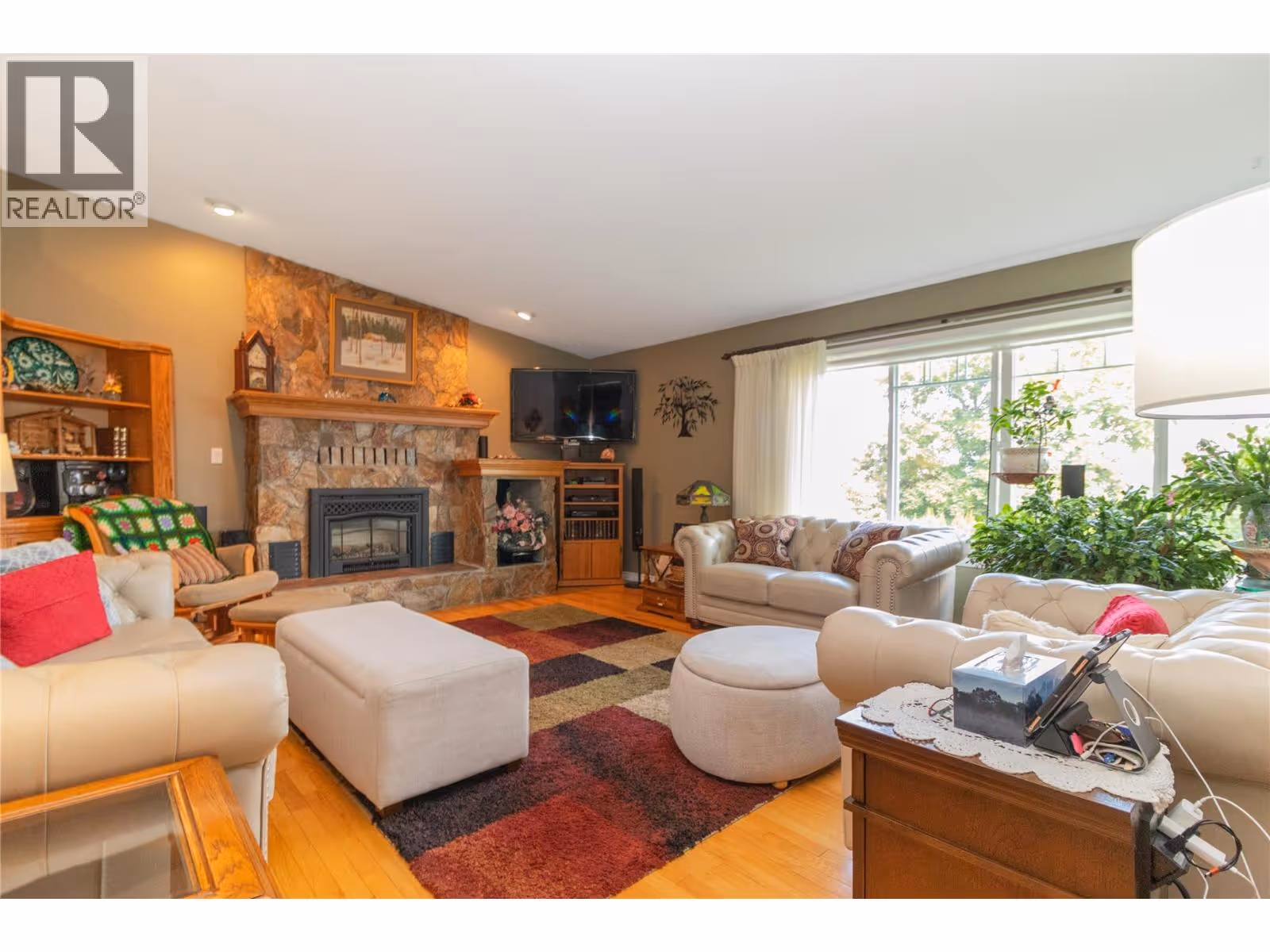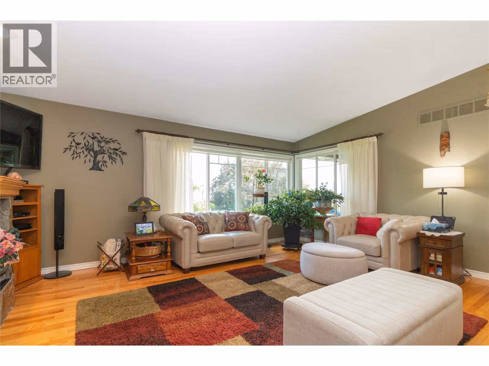 Enjoy the lake views from this immaculately maintained walk-out rancher. 3 bedrooms plus den, 2.5 baths. Skylights in kitchen and main floor bathroom. High ceilings in living room with gas fireplace. Bedroom currently being used as an office/studio, contains built-in murphy bed. Large bright kitchen with quarts countertops. Main floor laundry. Large rec room with freestanding gas fireplace. Large storage room on basement level together with 8' x 6' vented cool room with plenty of shelving for all your food and wine storage needs. Large garden area with 8' x 12' greenhouse. Single car garage with work bench and separate tool room. RV parking and plenty of off street parking. U/G irrigation, Central A/C and vacuum, newer furnace and hot water tank. Water softener and water purifier in kitchen. New roof in 2022. Enjoy your morning coffee on the front veranda and your after dinner drink on the large entertainment deck off the dining room or around the firepit on the lower deck. Lower deck is wired and was originally built to contain a hot tub. Close to schools, shopping, and wineries. (id:58842)