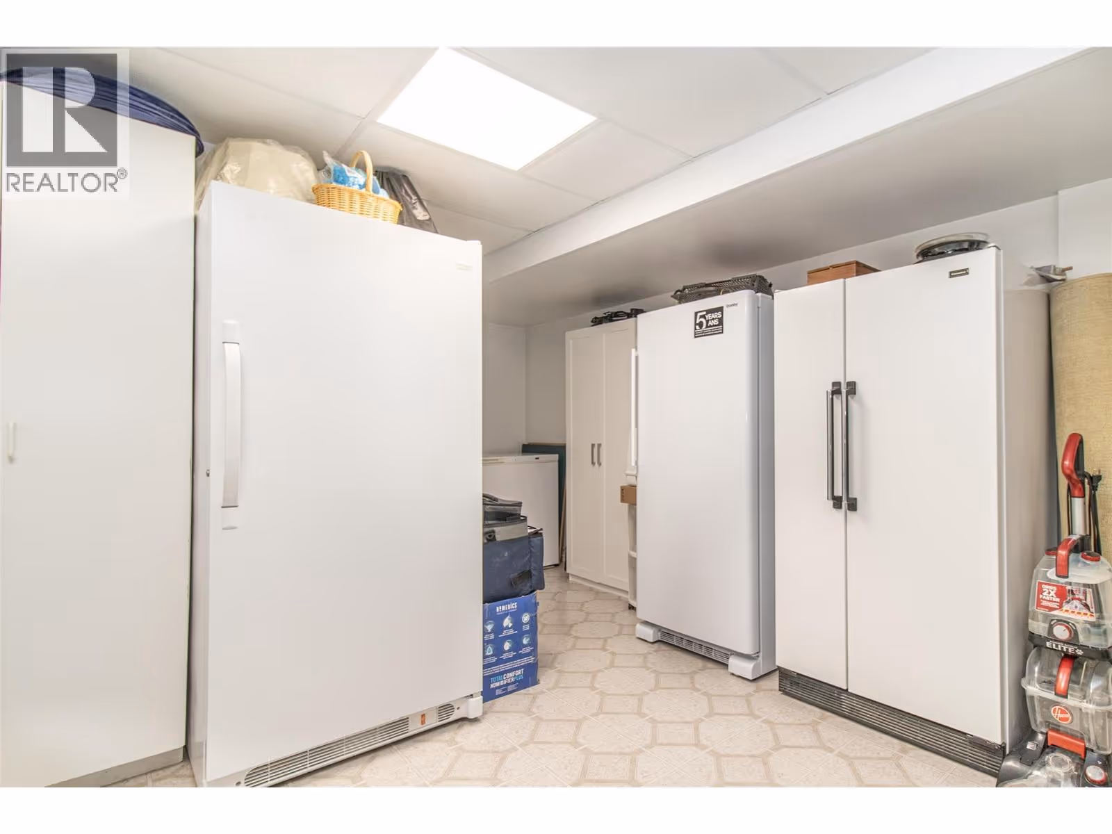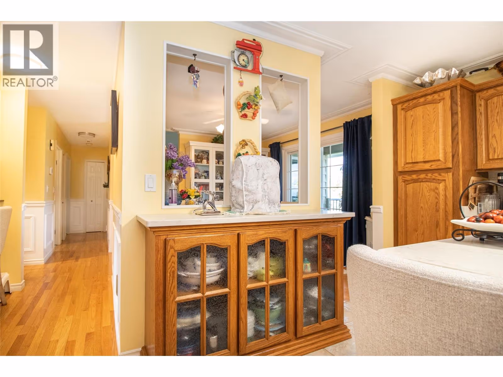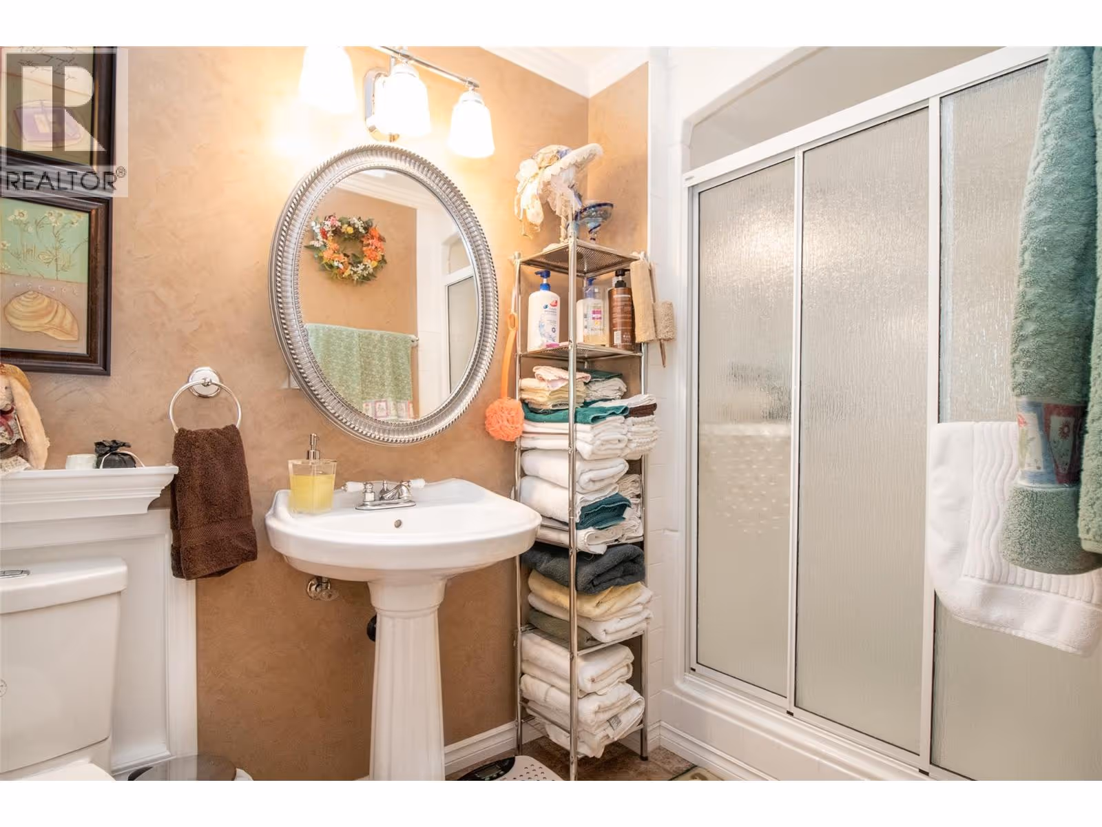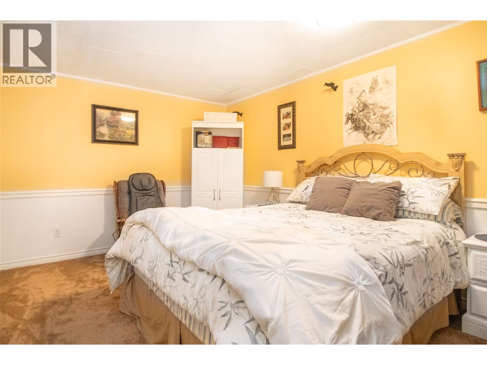 Enjoy the lake views from this immaculately maintained walk-out rancher. 3 bedrooms plus den, 2.5 baths. Skylights in kitchen and main floor bathroom. High ceilings in living room with gas fireplace. Bedroom currently being used as an office/studio, contains built-in murphy bed. Large bright kitchen with quarts countertops. Main floor laundry. Large rec room with freestanding gas fireplace. Large storage room on basement level together with 8' x 6' vented cool room with plenty of shelving for all your food and wine storage needs. Large garden area with 8' x 12' greenhouse. Single car garage with work bench and separate tool room. RV parking and plenty of off street parking. U/G irrigation, Central A/C and vacuum, newer furnace and hot water tank. Water softener and water purifier in kitchen. New roof in 2022. Enjoy your morning coffee on the front veranda and your after dinner drink on the large entertainment deck off the dining room or around the firepit on the lower deck. Lower deck is wired and was originally built to contain a hot tub. Close to schools, shopping, and wineries. (id:58842)