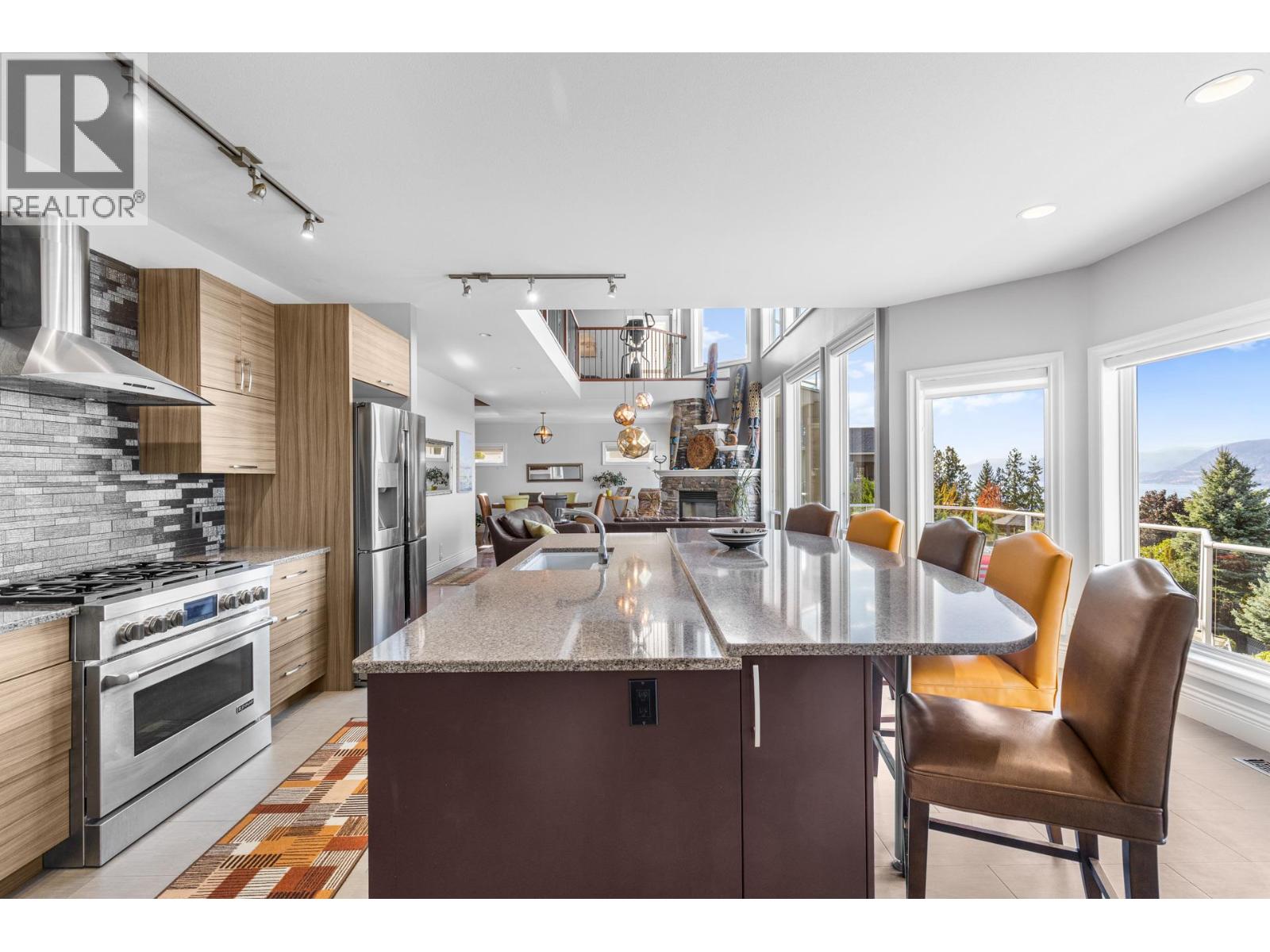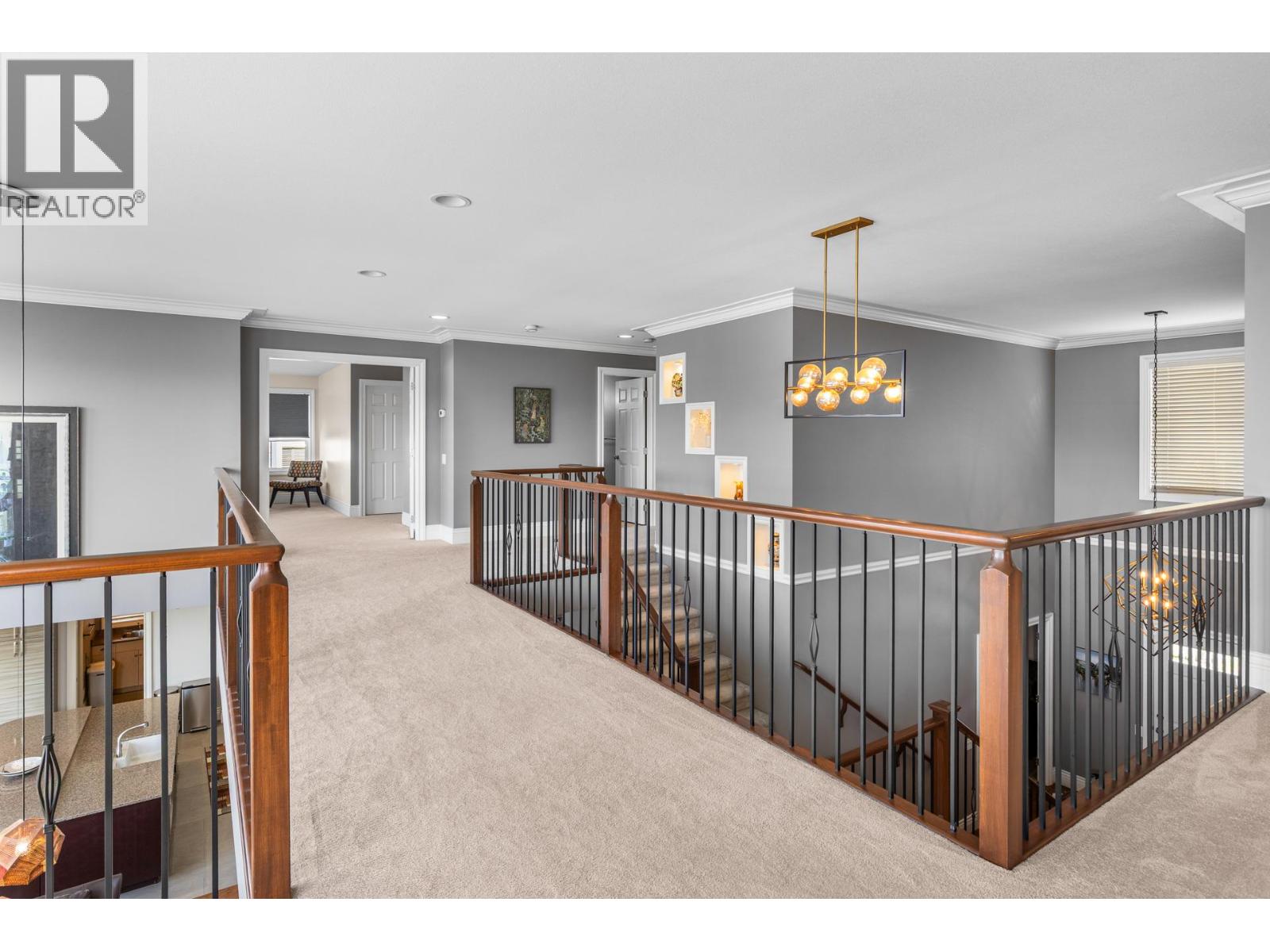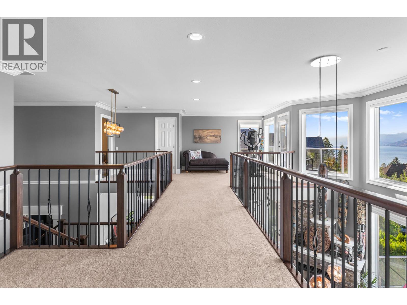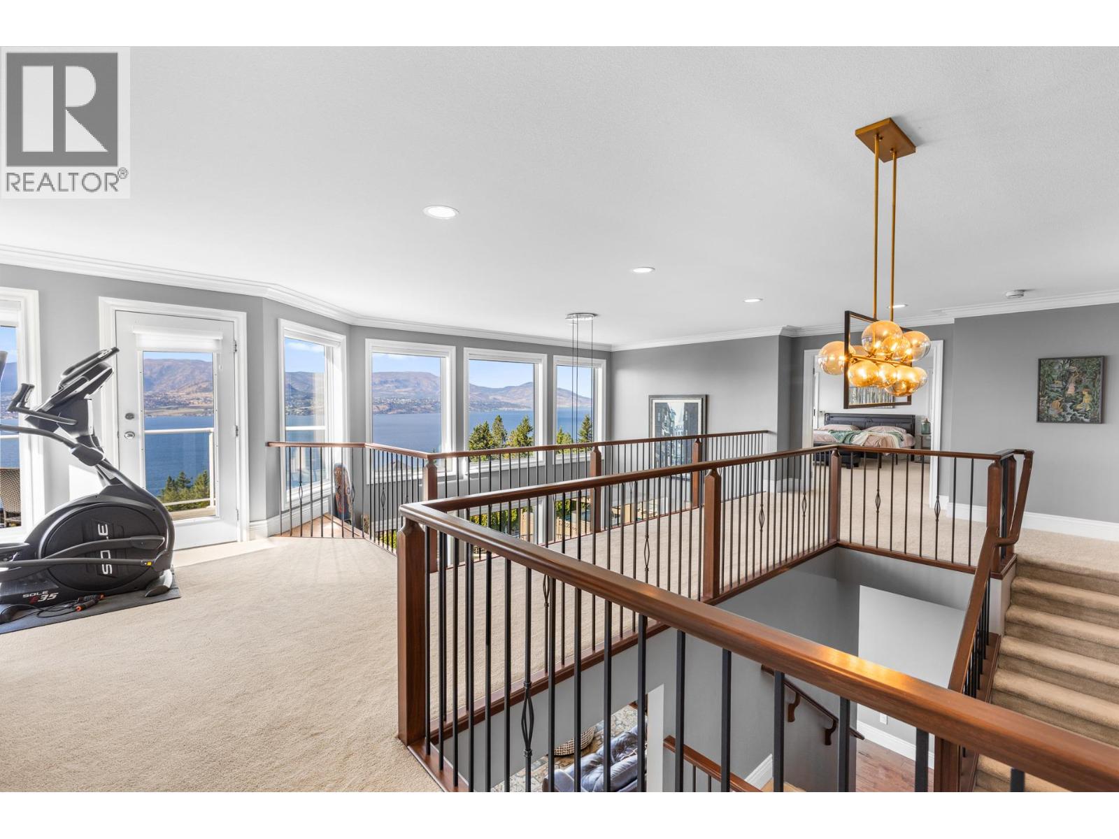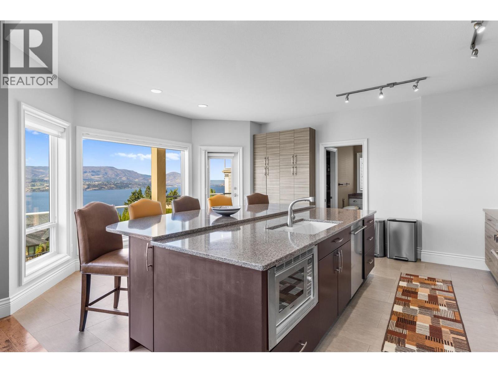 Welcome to this stunning, freshly painted, 5 bed, 4.5 bath home located on the ""Ledge"", distinguished homes on Quilchena Drive facing the Lake. Located in the heart of Kettle Valley. No hills, no worries, luxury, light, and lifestyle come together. Designed to impress, this residence features expansive open-concept living with panoramic lake views from every floor. Massive 20 foot ceilings flood the home with natural light, framing the Okanagan at its finest. There are three full bedrooms upstairs highlighted by a 625 square foot master suite. The chef-style kitchen flows seamlessly into the main living and dining areas perfect for entertaining or quiet evenings at home. Step outside to your private backyard oasis complete with a beautiful pool, sun-soaked patio, and views that truly make this the best lot on the street. The walk-out basement offers flexible space, including a dedicated gym room, media area, and guest suite potential. Every detail in this home is thoughtfully designed for upscale family living. All this on a flat street just steps from Kettle Valley Park, and 5 minute walking distance to grocery stores, schools, and amenities. Homes with this combination of design, location, and view rarely come to market. (id:58842)