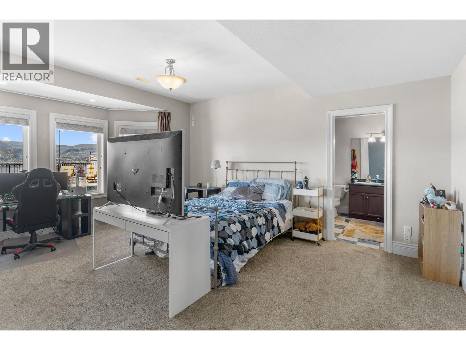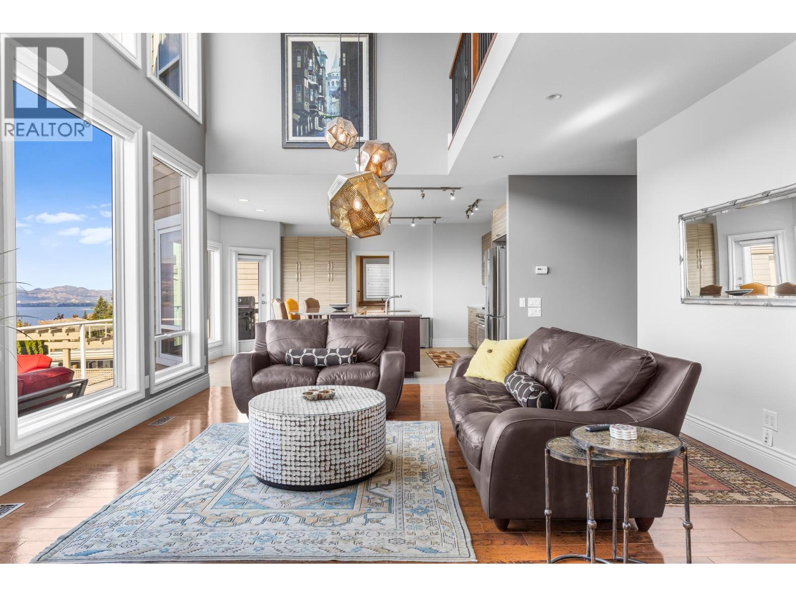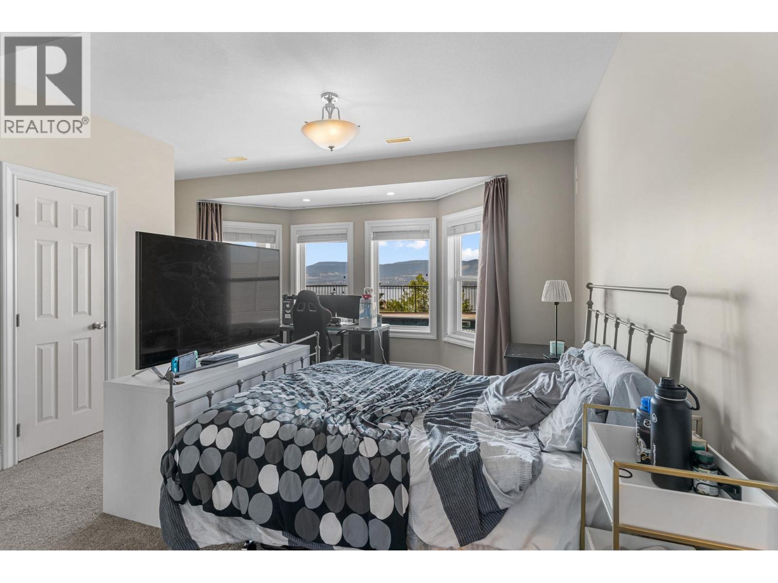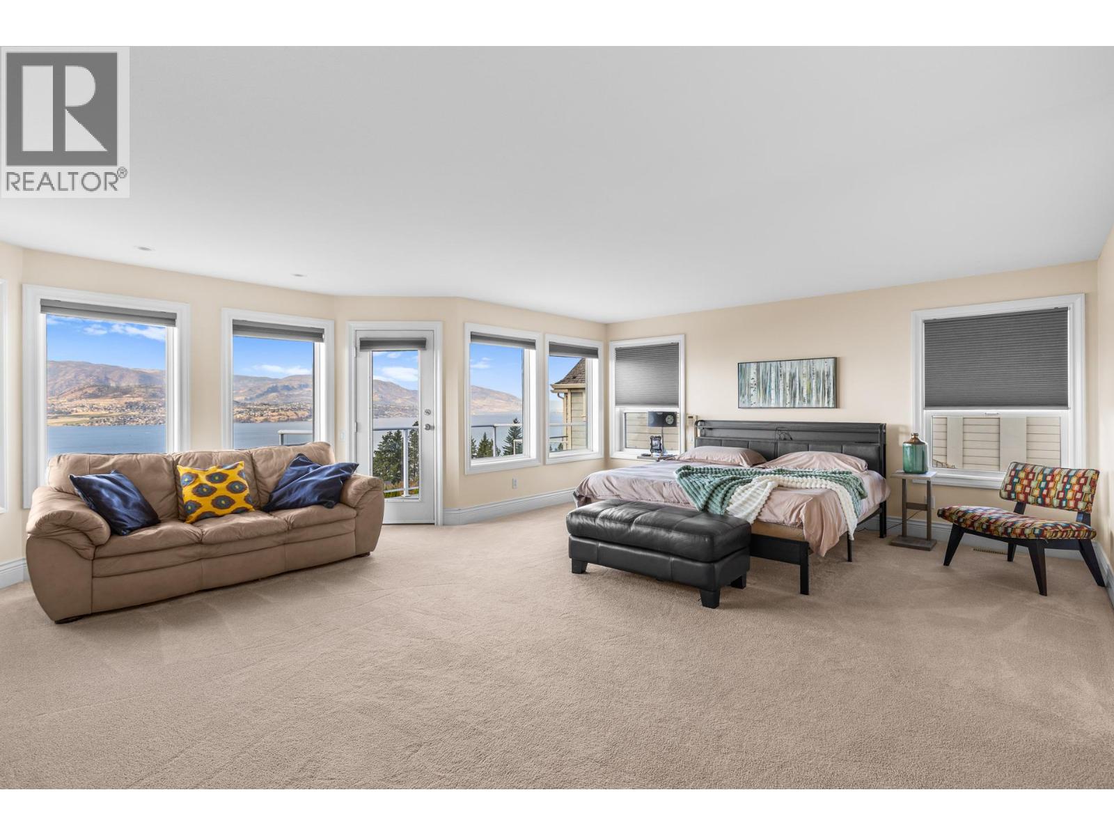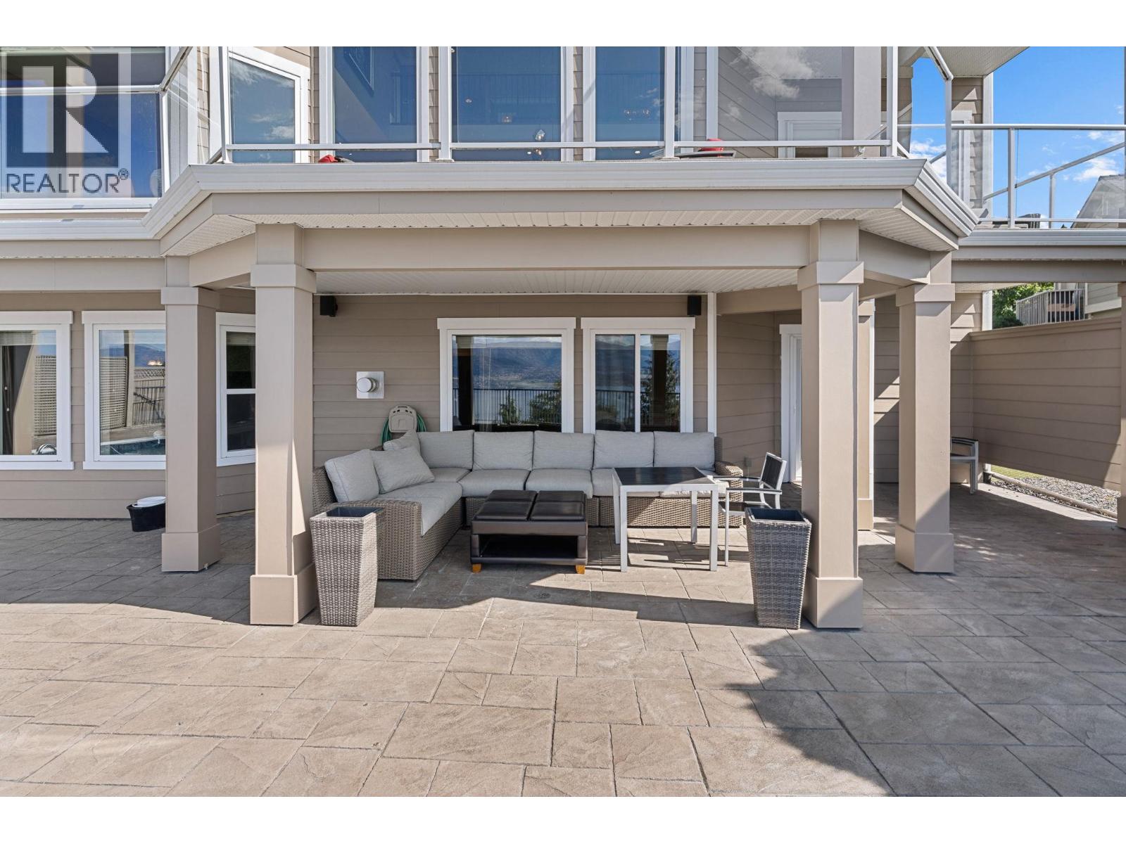 Welcome to this stunning, freshly painted, 5 bed, 4.5 bath home located on the ""Ledge"", distinguished homes on Quilchena Drive facing the Lake. Located in the heart of Kettle Valley. No hills, no worries, luxury, light, and lifestyle come together. Designed to impress, this residence features expansive open-concept living with panoramic lake views from every floor. Massive 20 foot ceilings flood the home with natural light, framing the Okanagan at its finest. There are three full bedrooms upstairs highlighted by a 625 square foot master suite. The chef-style kitchen flows seamlessly into the main living and dining areas perfect for entertaining or quiet evenings at home. Step outside to your private backyard oasis complete with a beautiful pool, sun-soaked patio, and views that truly make this the best lot on the street. The walk-out basement offers flexible space, including a dedicated gym room, media area, and guest suite potential. Every detail in this home is thoughtfully designed for upscale family living. All this on a flat street just steps from Kettle Valley Park, and 5 minute walking distance to grocery stores, schools, and amenities. Homes with this combination of design, location, and view rarely come to market. (id:58842)