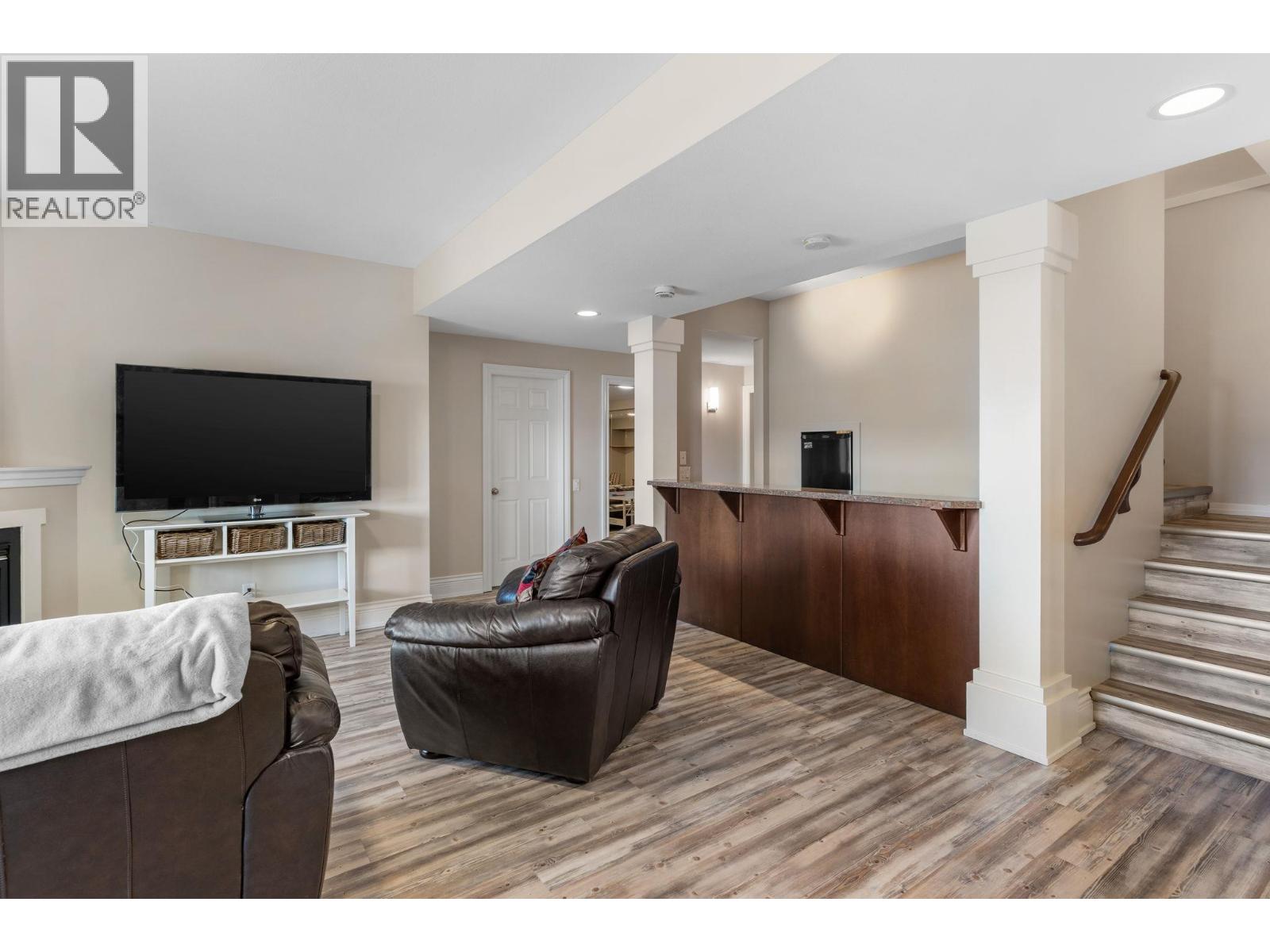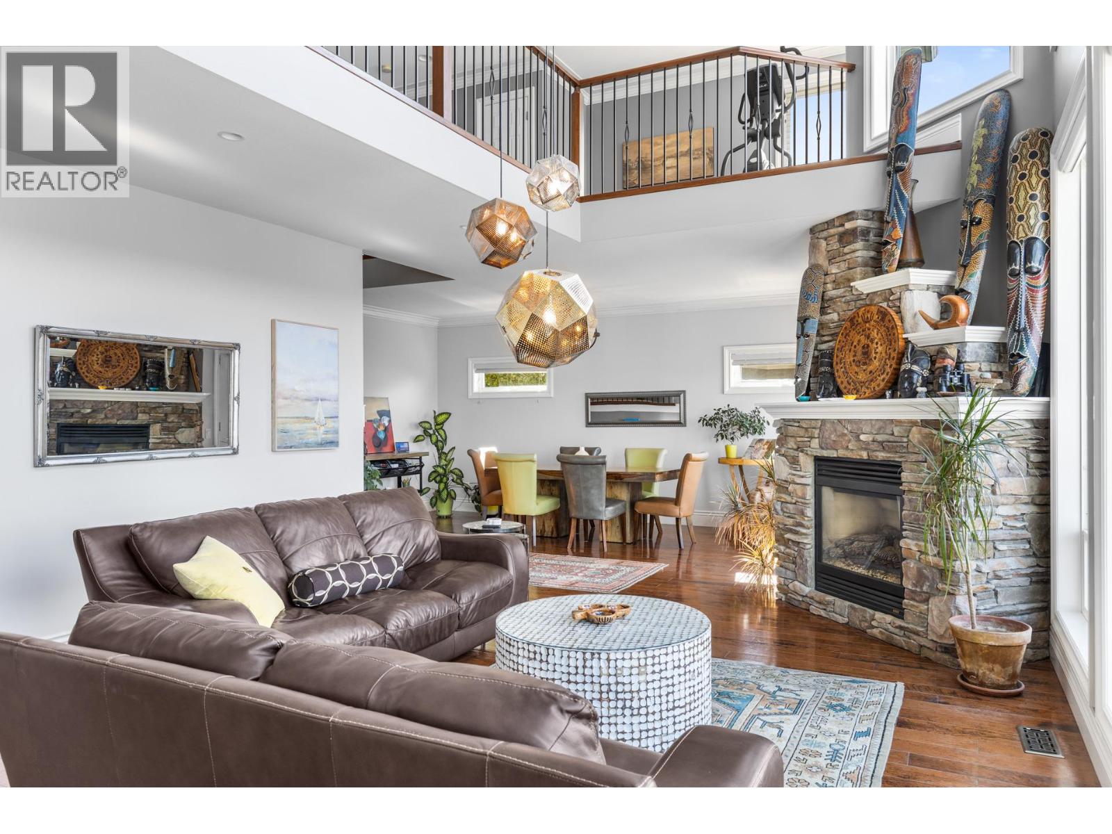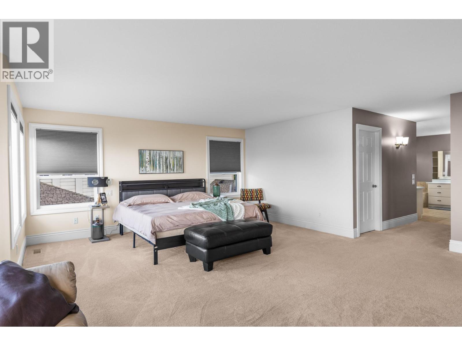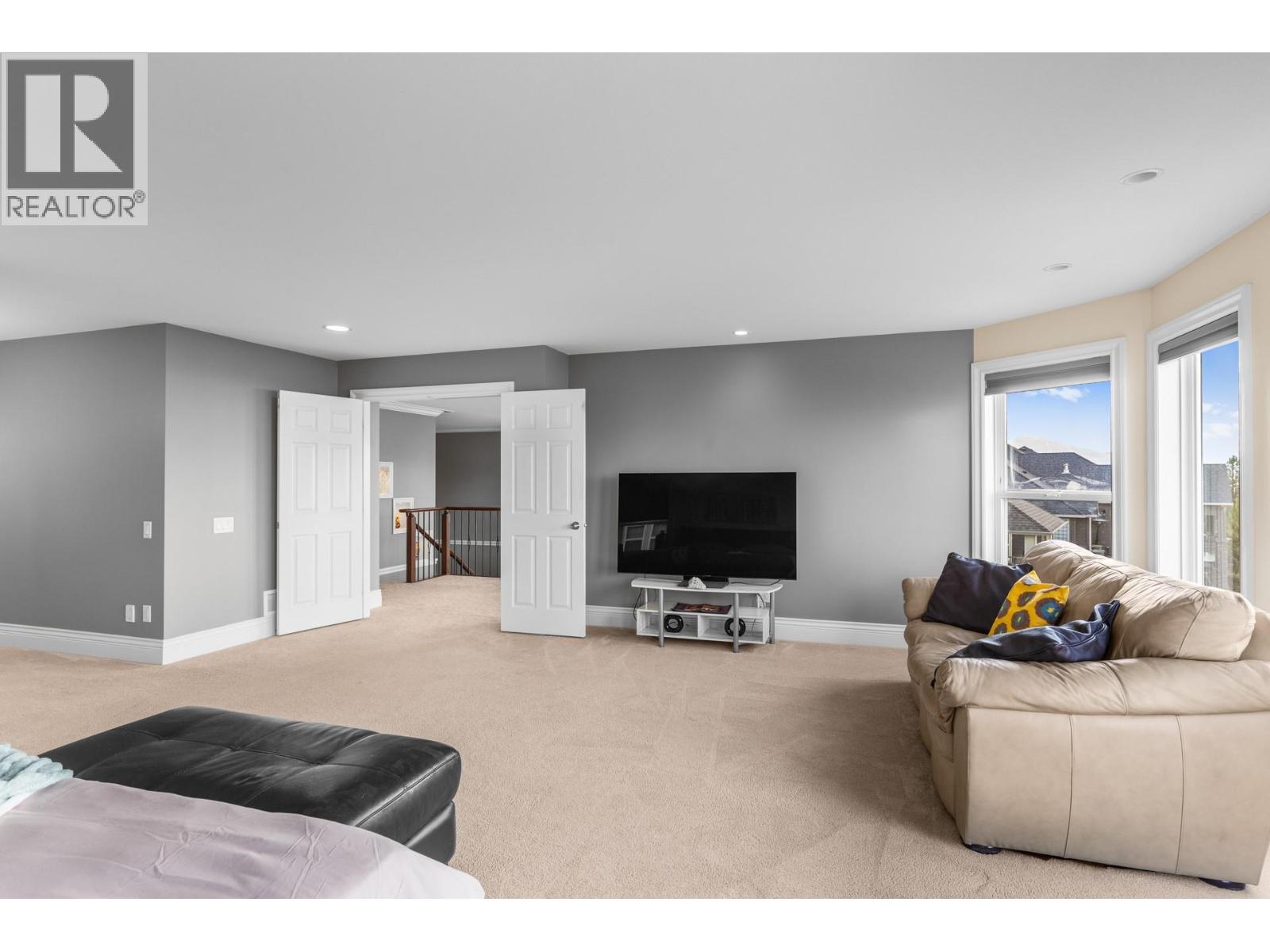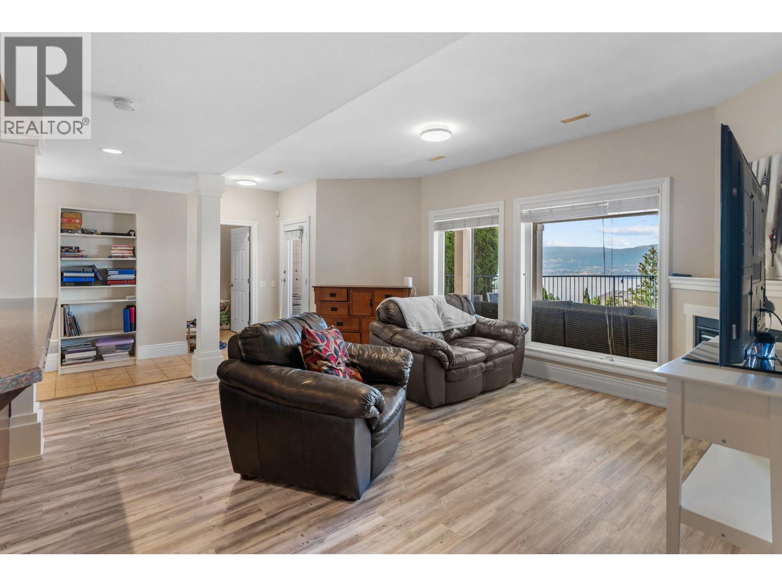 Welcome to this stunning, freshly painted, 5 bed, 4.5 bath home located on the ""Ledge"", distinguished homes on Quilchena Drive facing the Lake. Located in the heart of Kettle Valley. No hills, no worries, luxury, light, and lifestyle come together. Designed to impress, this residence features expansive open-concept living with panoramic lake views from every floor. Massive 20 foot ceilings flood the home with natural light, framing the Okanagan at its finest. There are three full bedrooms upstairs highlighted by a 625 square foot master suite. The chef-style kitchen flows seamlessly into the main living and dining areas perfect for entertaining or quiet evenings at home. Step outside to your private backyard oasis complete with a beautiful pool, sun-soaked patio, and views that truly make this the best lot on the street. The walk-out basement offers flexible space, including a dedicated gym room, media area, and guest suite potential. Every detail in this home is thoughtfully designed for upscale family living. All this on a flat street just steps from Kettle Valley Park, and 5 minute walking distance to grocery stores, schools, and amenities. Homes with this combination of design, location, and view rarely come to market. (id:58842)