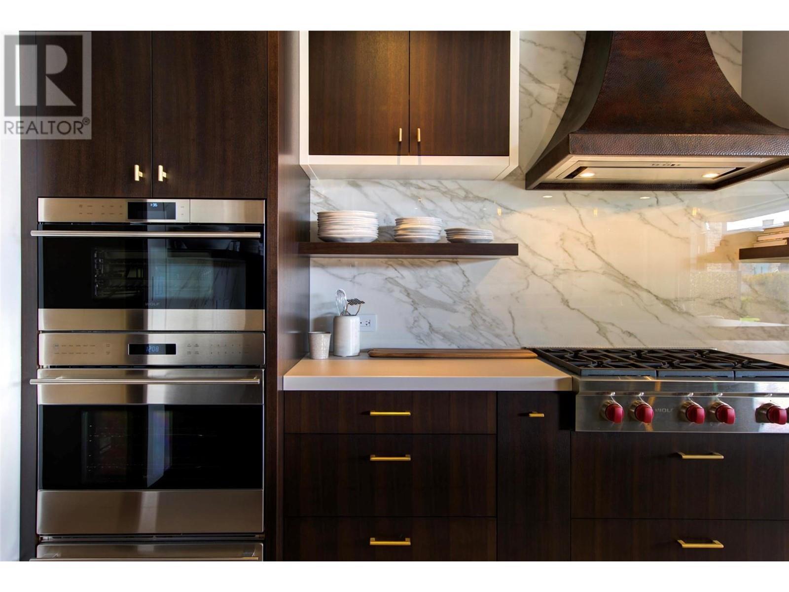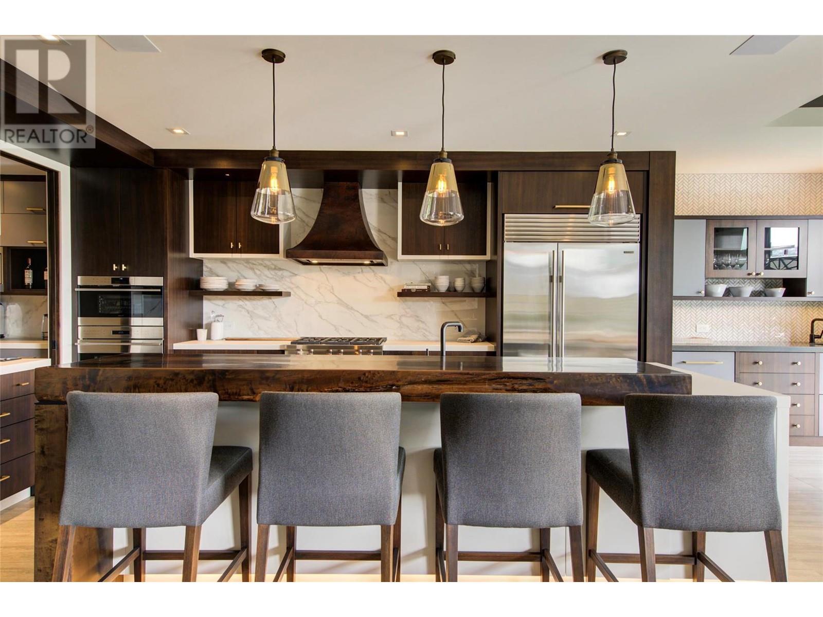 Exclusive waterfront community along the shores of Okanagan Lake. Paradise Estates is the ideal location for those in search of a beautiful home in a resort-style community with close proximity to world-class wineries and golf courses. This architecturally crafted contemporary home was designed with entertaining in mind offering seamless transitions from indoor to outdoor living and a rooftop patio. Superior craftsmanship and materials can be found throughout. Open-concept design with oversized windows on all levels capture the views and flood the space with natural light. Large Nano doors from the main living area allow for ease of access to the partially covered patio with outdoor kitchen. Beautifully-appointed chef’s kitchen featuring professional-grade appliances and custom live-edge counter with bar seating. A highlight of this floor is the temperature-controlled wine room finished with stone and glass and ready for storing approx. 200 bottles of your most prized vintages. On the second level you’ll discover a luxurious master retreat with its own private balcony & a truly spa-inspired ensuite. Two additional bedrooms and a flex space complete this level. Take an elevator to the third-story rooftop patio to enjoy the hot tub, wet bar, and outdoor shower. Residents of Paradise Estates will enjoy access to 400ft of sandy shoreline, deep-water boat moorage, a saltwater pool, water slide, central entertainment area that includes a putting green, firepit & waterfall features. (id:58842)