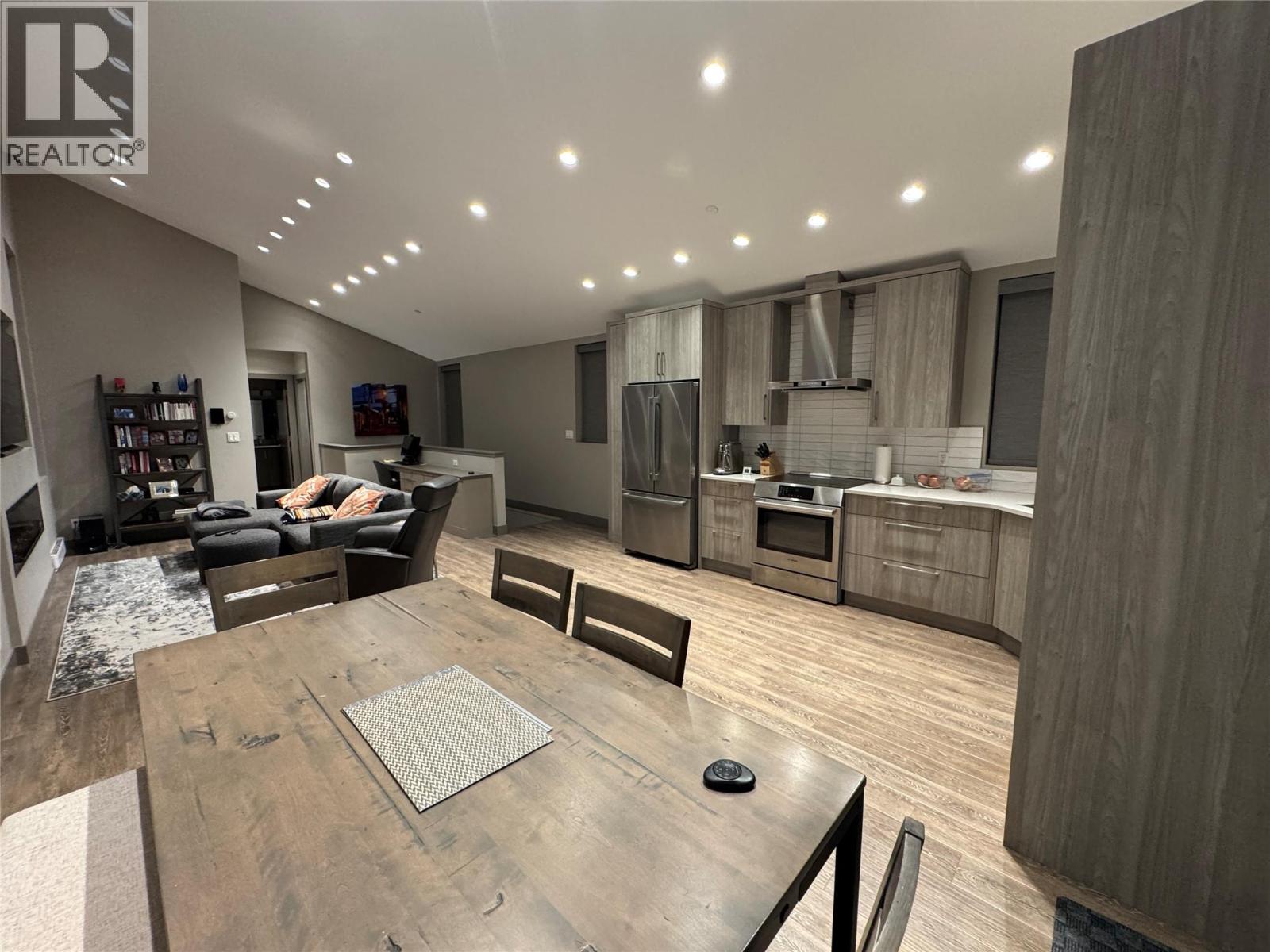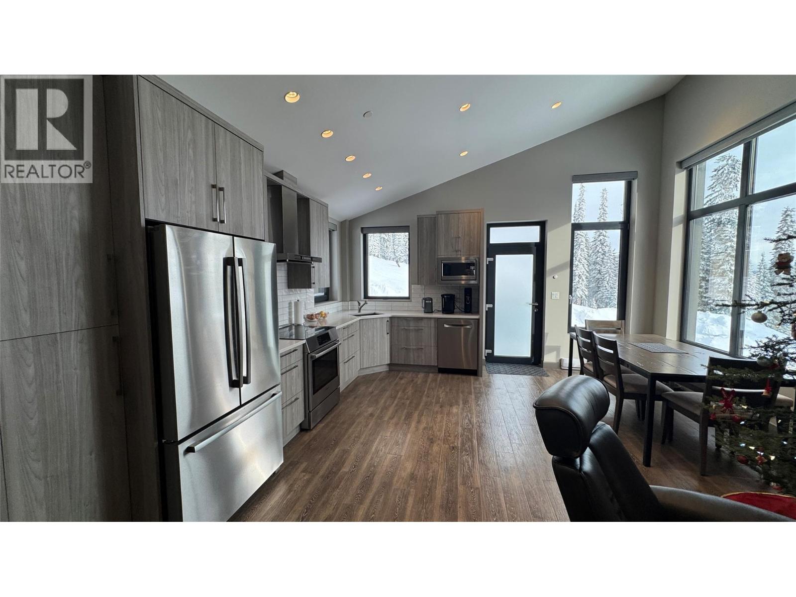 Welcome to 375 Feathertop Way located in the desirable Feathertop Estates. Enjoy true ski-in/ski-out convenience directly from your private ski locker, complete with a ski key rack, and quick access to The Bullet and Black Forest chairlifts. This home showcases 8” thick, heavily insulated exterior walls, triple-glazed European tilt-and-turn windows, and three-point latch European exterior doors, creating an airtight, energy-efficient envelope ideal for mountain conditions. Premium appliances throughout, including Bosch refrigerators and dishwashers on both upper and lower levels, a Bosch induction range in the upper kitchen, and a Bosch convection microwave in the lower kitchenette. The lower-level lock-off suite offers its own laundry and kitchenette, providing excellent flexibility for guests or potential rental income. Energy efficiency continues with LED lighting throughout, a Zehnder high-efficiency heat exchanger, and Dimplex electric baseboard and forced-air heating, each room equipped with individual remote-controlled thermostats. After a day on the slopes, relax by either electric fireplace or unwind in the spa-inspired amenities, including instant hot water at all sinks, an ensuite PRO-240 auto-flush steam generator, Jacuzzi J-345 hot tub with remote control, and a private sauna, also remotely controlled. This exceptional home is ideal for full-time living or a luxurious Big White retreat. (id:58842)