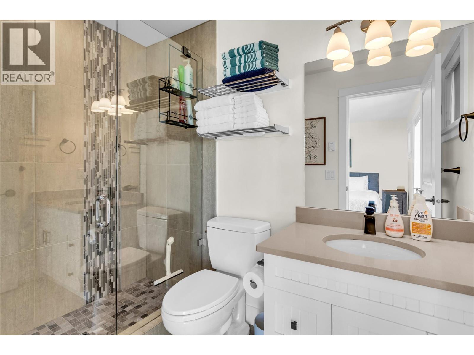 Boucherie Beach: Your Okanagan Lakefront Escape Welcome to Boucherie Beach, where lakefront living meets pure relaxation! I'm thrilled to introduce you to one of just 35 exclusive, detached cottages in this premier destination. This is a rare opportunity to own a piece of paradise on FREEHOLD LAND, with 350 feet of sandy beach right on the shores of Okanagan Lake. This cottage is designed to feel like your own personal sanctuary. The interior is a breath of fresh air, with beautiful beachy tones and nautical touches throughout. You'll love the boat slip and lift that come with the home—perfect for a day out on the water. Step inside and feel the cool relief of the central A/C. The home features soaring 9-foot ceilings and durable vinyl plank flooring. The kitchen is a dream with custom wood cabinets, soft-close drawers, and stunning quartz countertops. The main floor is all about easy living, with an open-concept kitchen, dining, and living area, plus a convenient half bath. Upstairs, you'll find the serene master bedroom with a luxurious 3-piece ensuite and a private balcony—the perfect spot for your morning coffee. There are also two additional bedrooms, a main bathroom, and a laundry area, so everyone has their own space. Getting here feels like a true escape, as you drive down the private access road surrounded by a peaceful vineyard and wide-open green spaces. The community is thoughtfully designed in a ""U"" shape to maximize views and create a lush, green oasis for residents. This is the kind of place where kids can be kids. They can run free and enjoy the heated outdoor pool, hot tub, and the fireside fun at the beachside fire pit. The private dock and anchored swim raft offer endless hours of swimming and fun in a safe, gated community. This cottage isn't just a home—it's a lifestyle. (id:58842)