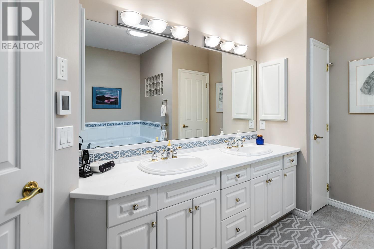 The address says it all—Gallaghers is the Pinnacle of Luxury, nestled in the low mountains, orchards and vineyards of East Kelowna. This gated community of 644 homes and two golf courses, includes craft rooms, auditorium, games room, library, swimming pool with hot tub, and a gym. Operational maintenance of these facilities, roads, parks and infrastructure is supported by the 14 Stratas and the Golf Course. The Golf Clubhouse features a restaurant overlooking the Course and valley. This luxury townhome, offered by the original owner, includes the very finest in design and decor including extra heat vents, sound proofing, pre wiring for a security system, double interior glass doors for privacy, and many recent upgrades. The extra wide garage features space for a golf cart, epoxy floor paint, and recessed galvanized floor grates with drains. Uniquely positioned, backing south overlooking the Pinnacle Golf Course with breathtaking views of the canyon, city and lake beyond; this is truly one of a kind lifestyle opportunity! (id:58842)