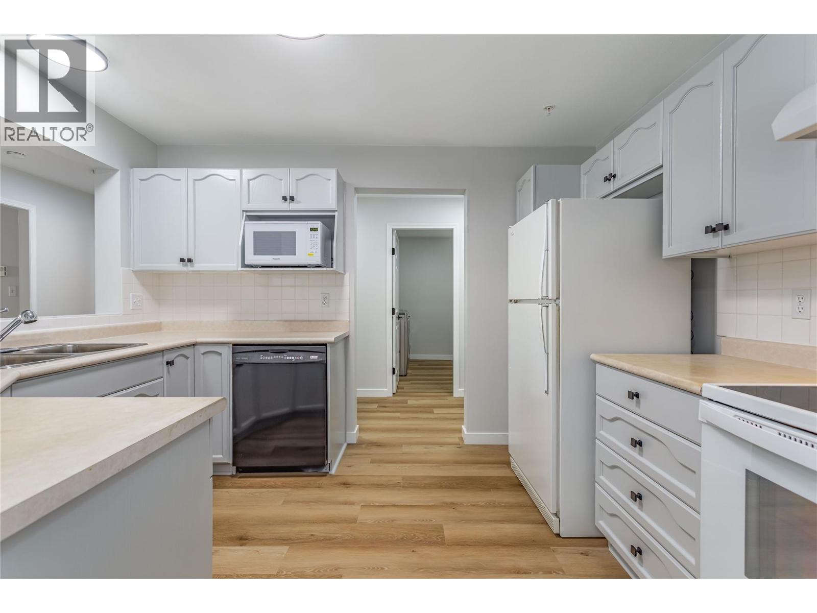 Exceptional opportunity to own a renovated, spacious, and bright property in one of Vernon's most convenient and sought after areas. This move in ready 1300 sq. ft. condo has been well renovated: NEW flooring, NEW paint, NEW lighting, and an upgraded kitchen. Features include a private deck with serene mountain slope views (perfect for deer watching!), and a highly desirable split-bedroom layout for maximum privacy. The spacious primary suite even includes a private ensuite bath. Building amenities are excellent: SECURE underground parking, dedicated storage locker, a common room including library and billiards, and lots of visitor parking. Fantastic location close to all services: transit, schools, shopping, & Downtown. One pet allowed. This property is ideal for any savvy investor, and especially for first time buyers or downsizers seeking low maintenance quality of life. AFFORDABLE, UPGRADED, & CONVENIENT. book your showing today! (id:58842)