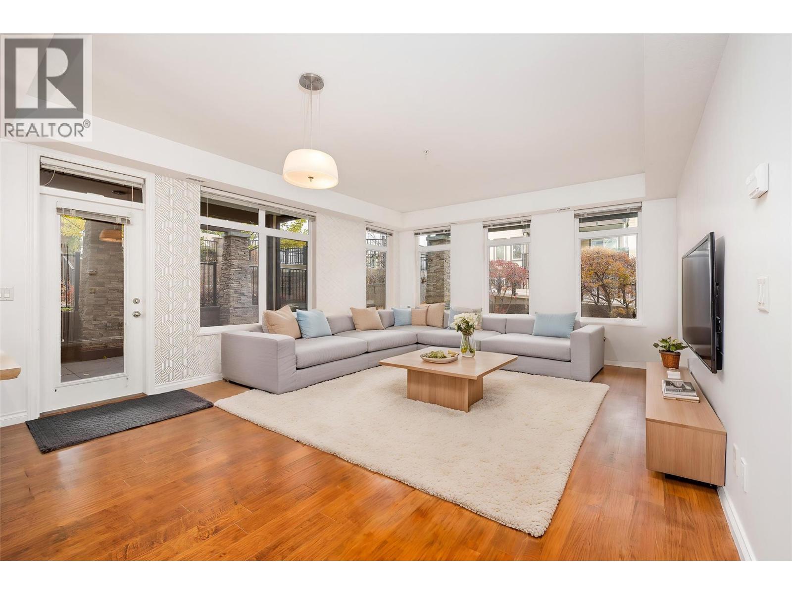 Experience the best of West Kelowna living in this beautiful ground-level corner suite at MiraVista. This 1122 sqft apartment is thoughtfully designed with 2 bdrms, 2 bath & features two large private patios with streetside entry, perfect for bringing in groceries or greeting guests! Sunlight floods the living room through 2 walls of windows, highlighting the elegant engineered hardwood floors & sophisticated tray ceiling. The open concept kitchen features granite countertops, stainless steel appliances, updated light fixtures & spacious sit-up bar - ideal for casual dining & entertaining. A functional split bdrm design creates privacy for both bdrms. The king-size primary retreat opens to the covered patio & features a walk-through closet and 3-piece ensuite. The 2nd cozy bedroom sits on the opposite side of the condo conveniently next to a full 4-piece bath. Additional features of this home include: In-suite laundry with a new Frigidaire Quiet Pack stacked w/d (2024), a spacious foyer with coat closet & thoughtfully designed storage throughout the suite keeps your space organized & clutter-free, enhancing everyday living MiraVista is know for its exceptional amenities, including secure parking, an outdoor pool and hot tub, workshop, rentable amenity room for gatherings and a guest suite. This is truly the BEST of West Kelowna, you are literally steps to Crown & Thieves Winery, amazing hiking trails, the aquatic centre, groceries shopping, restaurants & more! (id:58842)