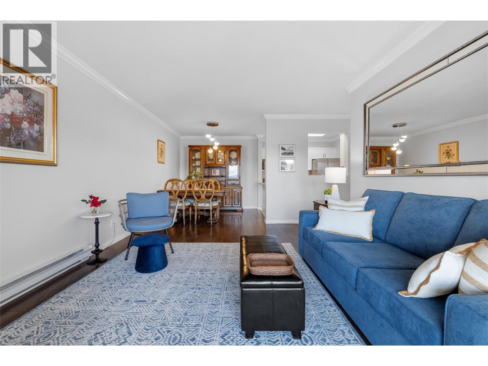 Wake up to breathtaking sunrises and unobstructed lake views from every window in this beautifully updated top-floor home in Linden Estates. This bright and spacious unit features modern laminate flooring throughout and an open-concept layout designed to maximize natural light. The step-saving kitchen offers ample storage, sleek granite countertops, and stainless steel appliances, all flowing seamlessly into the living area—perfect for both everyday living and entertaining. Start your mornings on the east-facing covered balcony, where you can relax with your coffee while taking in panoramic views of Okanagan Lake. The primary suite includes a private ensuite, creating a comfortable retreat, while in-suite laundry and additional storage add everyday convenience. A separate storage locker is also included in the parking area. Located in a well-maintained 55+ community, this home offers a peaceful lifestyle with small pets permitted with restrictions and RV parking pending availability. Enjoy the unbeatable location, just down the street from Westbank Towne Centre Shopping District, restaurants, banks, drug store, coffee shops, and parks. Across the street from Truck 59 Cider House & Crown & Thieves Winery. A perfect blend of comfort, convenience, and stunning views—this top-floor gem is ready to impress. (id:58842)