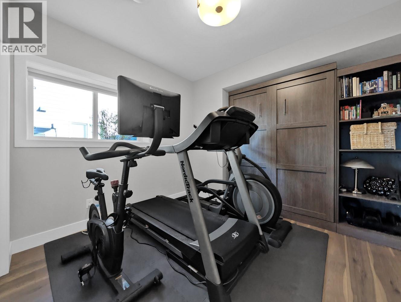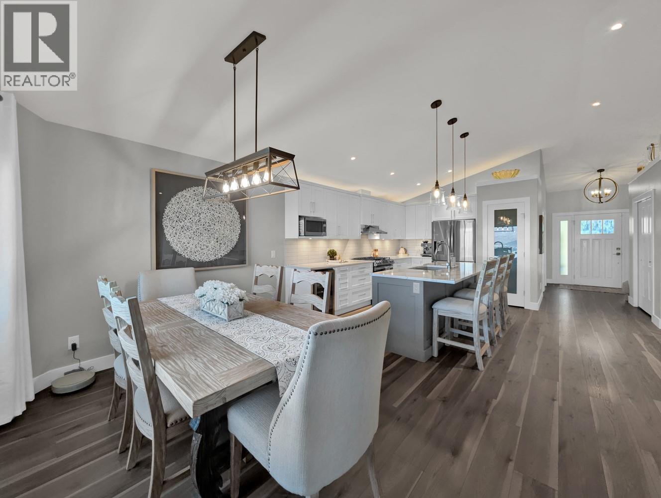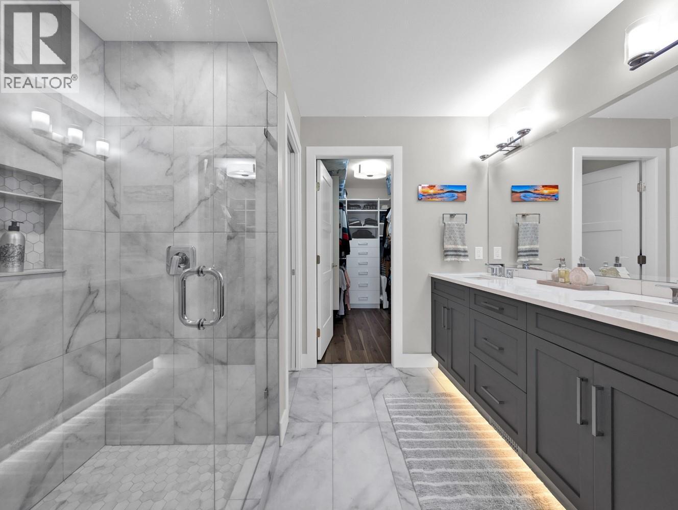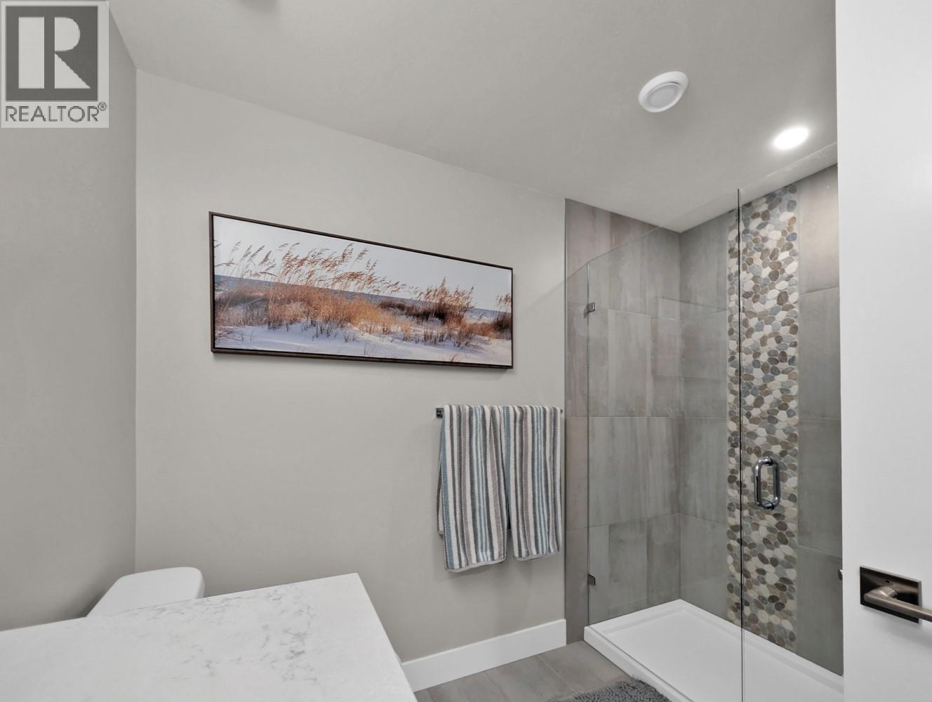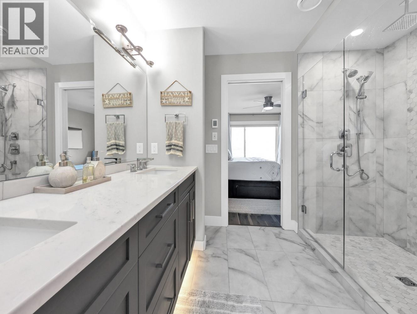 Impeccably maintained and upgraded to the max, this gorgeous 4 bedroom + den half duplex with big lake and mountain views is located in the desirable Sunset Ranch community. Designed with a timeless and neutral palette, the open-concept main level features a classic white shaker kitchen with a natural gas range, beverage fridge, and island seating - perfect for casual dining and entertaining. The spacious primary suite includes a walk-in closet and a spa inspired ensuite with a custom tile shower, dual vanity, and private water closet. A versatile den on the main floor provides the ideal home office or flex space. Downstairs, the bright walkout level boasts three generous bedrooms, a cozy rec room with a built-in electric fireplace, wine cellar, finished storage or secondary office, and a full bathroom for family or guests. Outside, enjoy the fully fenced, beautifully landscaped yard with a hot tub - a serene retreat for relaxation or gatherings. Set within the quiet, golf course-adjacent Sunset Ranch community, this home offers easy access to the airport and is just 20 minutes from central Kelowna. A true standout, showcasing quality upgrades and evident pride of ownership throughout. (id:58842)