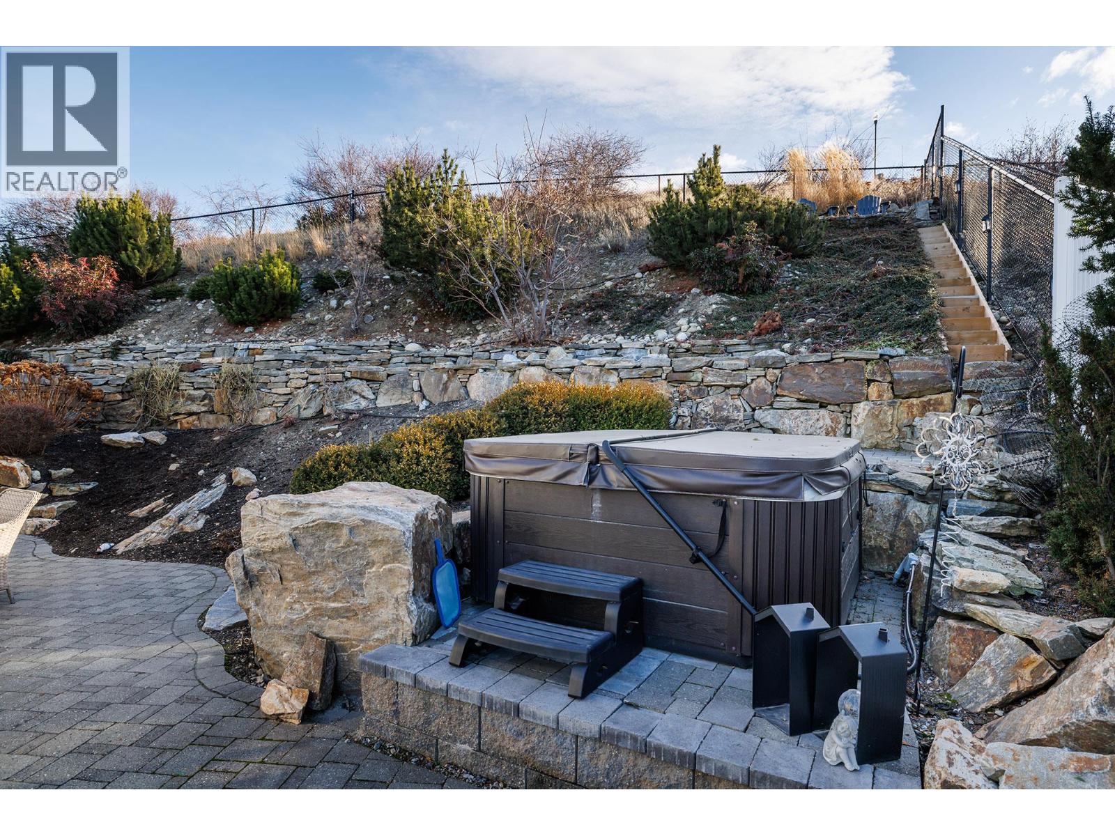 Tucked into one of Kelowna's most sought-after neighbourhoods, this home sits on a quiet cul-de-sac where daily living flows across thoughtfully updated spaces designed for families. The heart of the home is open wide across the main level. A custom kitchen anchors the space with two-tone cabinetry, quartz counters, and a built-in coffee bar that makes mornings feel a little more like a relaxing ritual and less like a rush. The large central island seats four comfortably and the corner sink frames views of the landscaped backyard. Stainless appliances include a Bosch fridge and dishwasher plus a gas KitchenAid range. Natural light pours through high transom windows in the living room, where a slate rock fireplace creates an inviting anchor. The open dining area connects seamlessly to a covered patio, perfect for summer dinners that stretch late into evening. Upstairs, the primary suite offers a private retreat with a five-piece ensuite featuring a soaker tub, oversized walk-in shower, and double vanity. Two additional bedrooms each include built-in window bench seats—one with sweeping lake and mountain views. The lower level expands your living space with a media room, bonus gym area, fourth bedroom and full bath. The fully fenced backyard delivers on privacy. A paver stone patio with gas BBQ hookup, hot tub, and outdoor speakers set the scene for weekend gatherings, while mature landscaping frames the space beautifully. The 3-car tandem garage includes built-in storage. (id:58842)