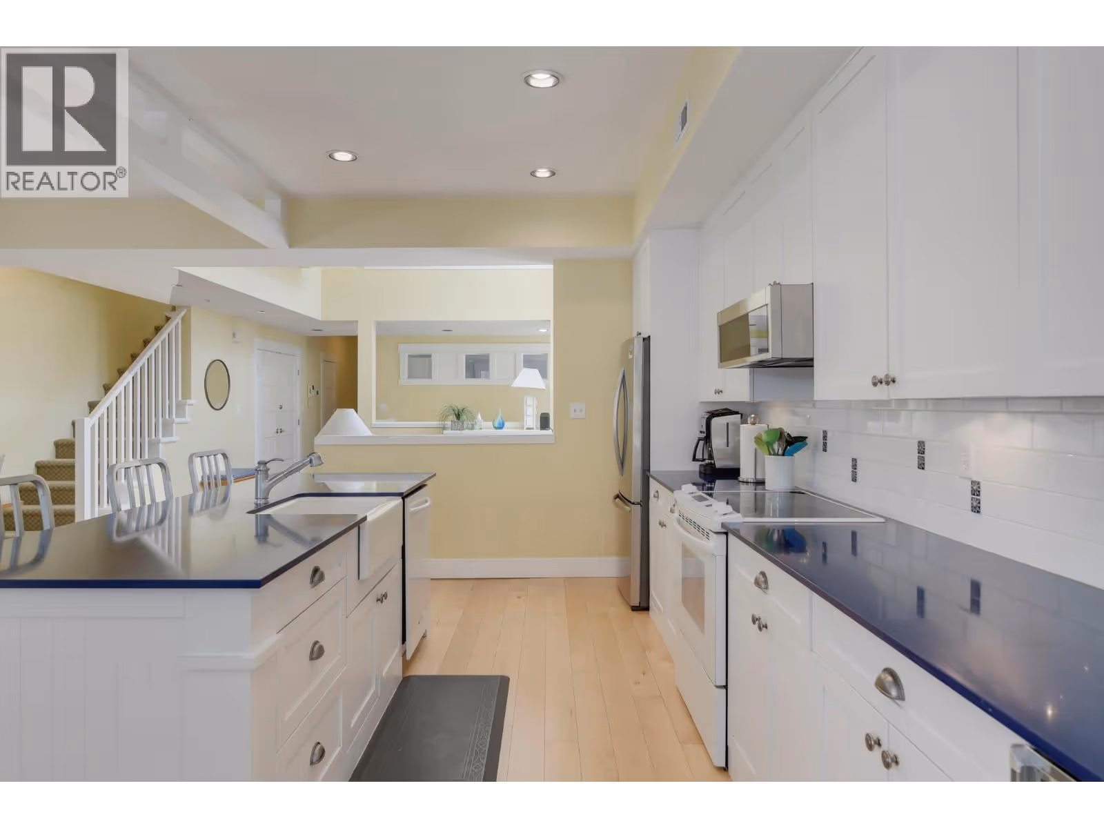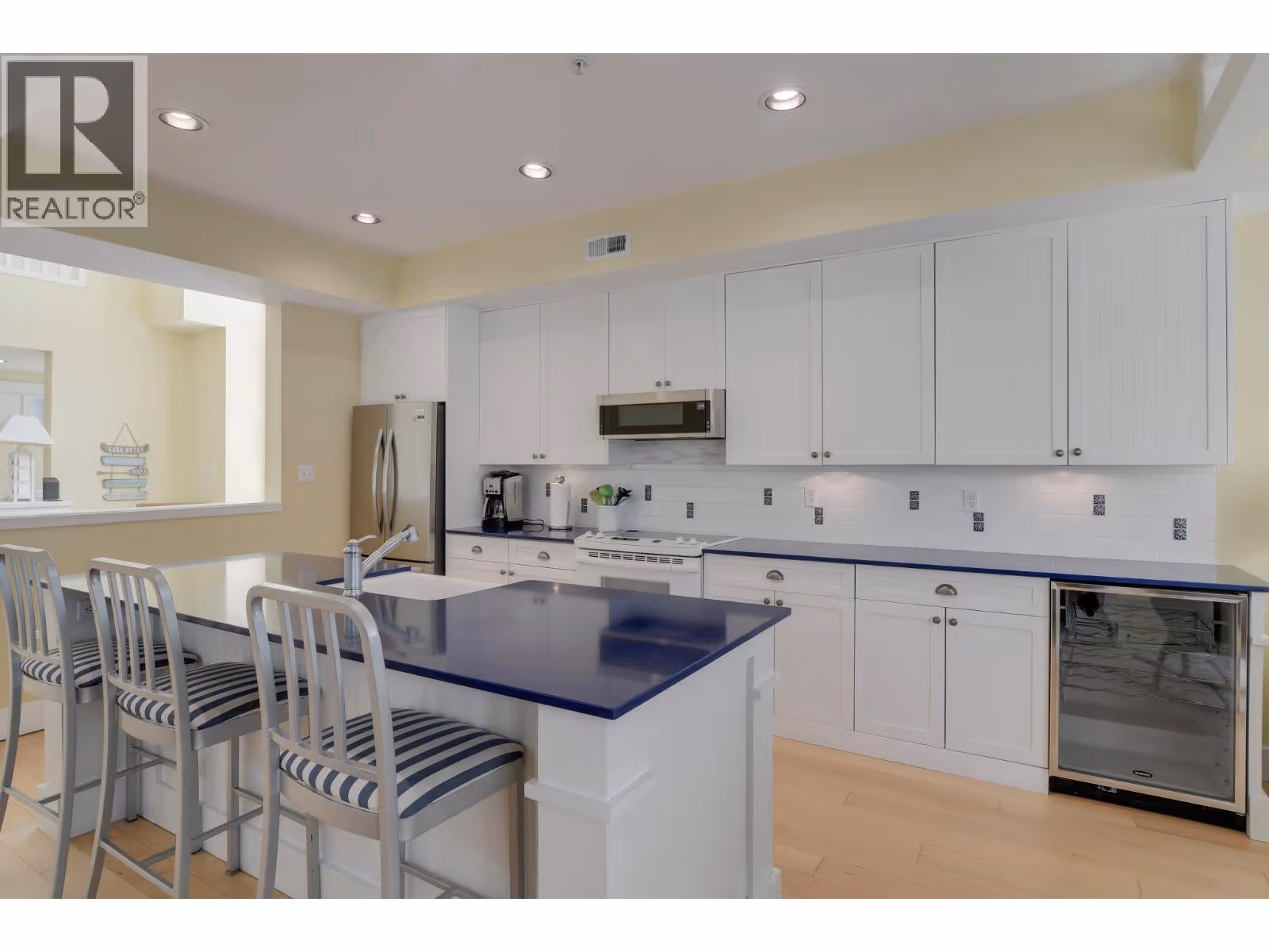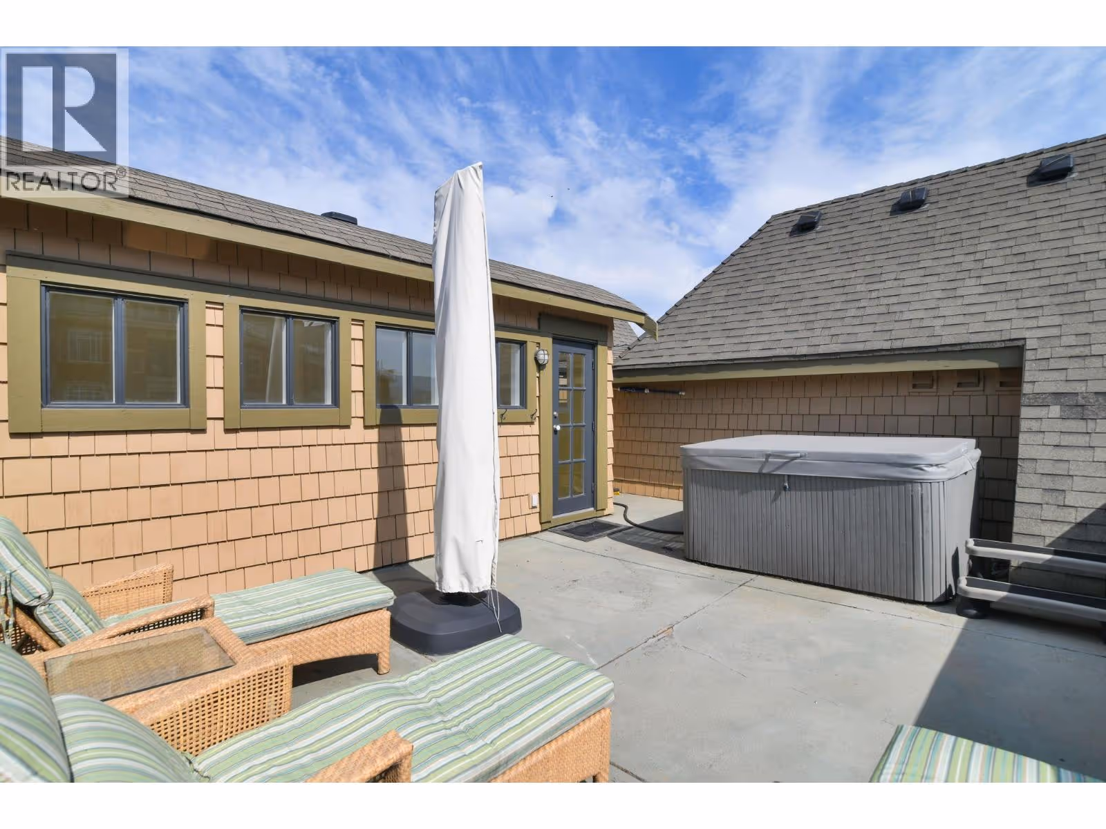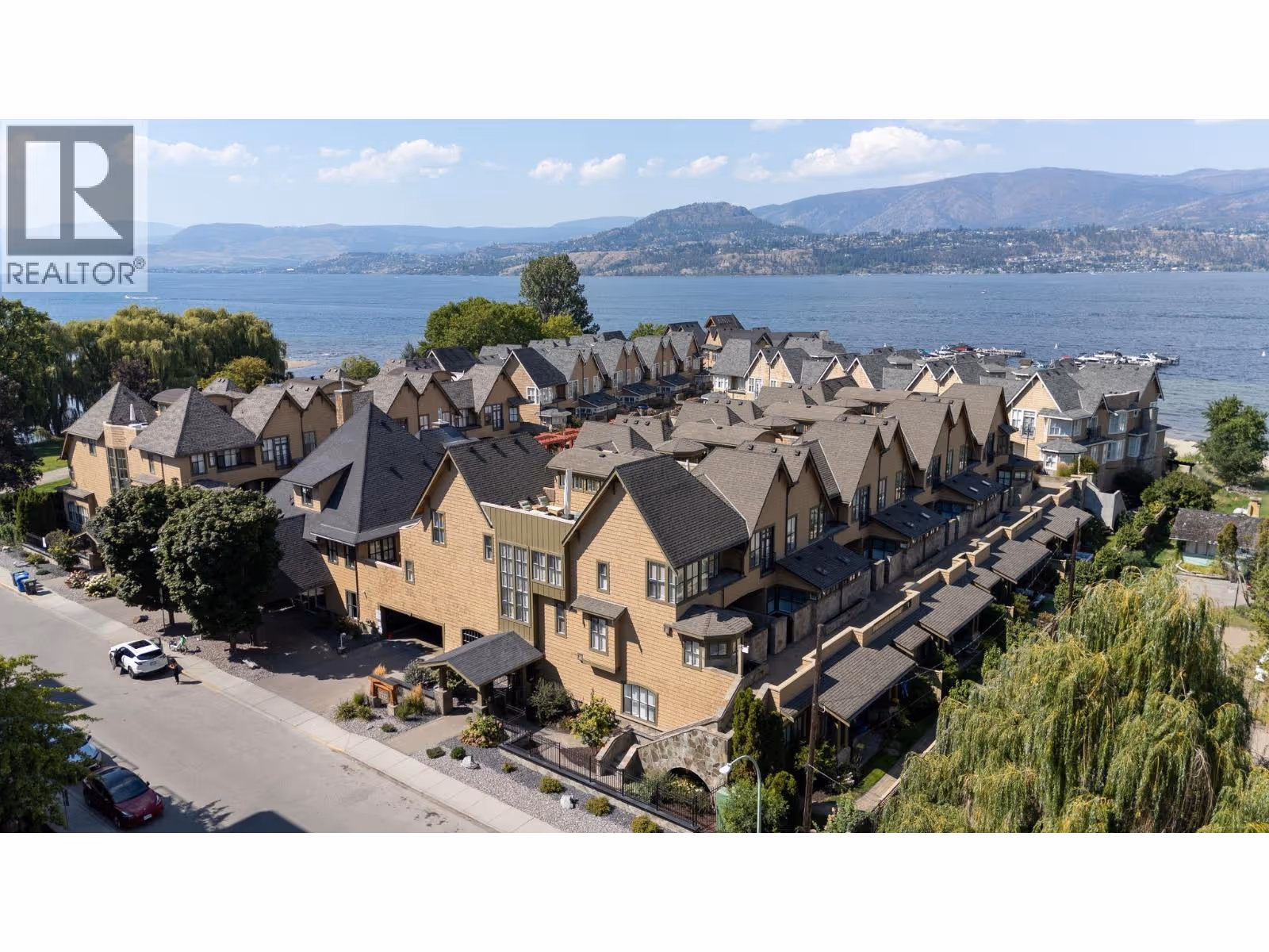 Don’t miss your chance to own this stunning end-unit townhome in the highly sought-after waterfront community of Mission Shores. This turn-key, move-in ready home comes fully furnished and features a dedicated full-time boat slip with a 6,500 lb lift. Spanning 4 levels, this bright and spacious home is filled with natural light thanks to its abundance of windows. The main level boasts a thoughtfully designed open layout. The living room features soaring vaulted ceilings highlighted by a dramatic wall of floor to ceiling windows. The kitchen is ideal for gatherings, offering a large island and ample cabinetry. A cozy family room overlooks the patio and opens to the outdoors through elegant French doors, allowing in the fresh Okanagan air. The adjacent dining room also opens onto the patio, which has plenty of space for dining, lounging, and grilling. The main level also includes a welcoming front foyer, a spacious bedroom with an ensuite and 2-piece guest bathroom. Upstairs, you'll find two generous master bedrooms, each with its own ensuite featuring a soaker tub, glass shower, and ample closet space. One suite includes a private SW-facing deck—ideal for soaking in the views. The laundry area is also conveniently located on this level. Head up to the rooftop to relax on your private sunny patio or unwind in the hot tub. The parking stall and storage locker are conveniently located just steps from the lower-level foyer. Resort-style amenities include a sandy beach, boat dock, saltwater pool, hot tub, fitness center and games area. Whether you're looking for a year-round residence, a seasonal retreat, or a smart investment, this property offers flexibility—rent it from September to June and enjoy it for yourself during the summer months. (id:58842)