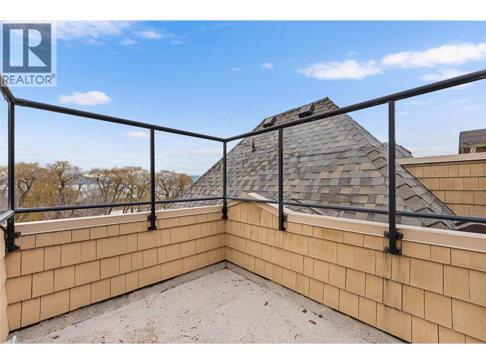 A modern, beach-inspired townhome in Lower Mission’s sought-after Mission Shores, this extensively updated residence offers lock-and-leave ease with resort-style lakefront living. Just steps to the beach, pool, and shared boat slip, enjoy views of Mission Creek and Okanagan Lake from bright indoor spaces and multiple outdoor retreats. The main level showcases new tile flooring, vaulted ceilings, and an open-concept design connecting the sleek high-gloss kitchen with dining and living areas. Italian quartz countertops with full-height backsplash, upgraded stainless appliances, generous island, and hidden pantry anchor the space, while double doors open to an expanded lake-view deck with glass railing, power awning, non-skid tile, and gas BBQ hookup. A private courtyard entry, guest bed with 4-piece ensuite, powder room, and smart storage complete the level. Upstairs, custom engineered hardwood and wood blinds carry a cohesive look throughout. The lakeview primary retreat features a private patio, walk-in closet, and spa-inspired 5-piece ensuite with heated floors, soaker tub, and walk-in shower. A second vaulted bedroom with Juliette balcony, full ensuite, and laundry adds everyday comfort. A private rooftop deck with lake and mountain views sets the scene for long Okanagan evenings. Recent upgrades include LED lighting, fresh paint, reconfigured living space, new hot water tank, and forced-air heating—minutes from the Eldorado Hotel, beaches, trails, cafes and shopping. (id:58842)