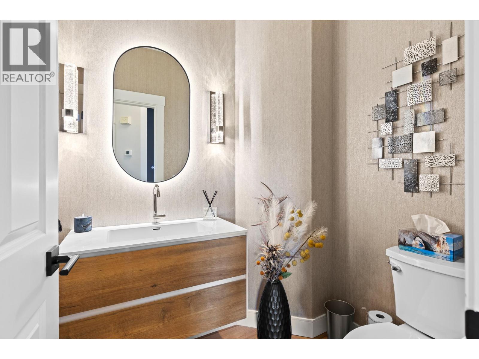 Welcome to over 2,600 sq ft of refined living in this fully renovated, bright, and spacious executive walk-out rancher townhome in the prestigious Gallaghers Canyon community. Set in an elevated, private location just steps from exceptional amenities—including an indoor pool, fitness centre, tennis courts, and more—this semi-attached home offers a rare blend of luxury and lifestyle. The extra-large, secure courtyard is sun-drenched and private, complete with a peaceful water feature—ideal for entertaining or relaxing with your family pet. Inside, discover casual elegance and thoughtful upgrades throughout: tailored cabinetry, glass-sided kitchen drawers, quartz counters, an apron-front sil-granite sink, a gas stove with dual-function ovens, designer lighting, rich hardwood floors, and a striking glass cove ceiling in the dining room. The luxurious primary suite is a true retreat, featuring a spa-inspired ensuite with steam shower, heated floors, and his & hers closets. Step out onto the covered upper deck to take in beautiful views of the Pinnacle Golf Course and a tranquil stream. The lower level includes a spacious family room with a fireplace, two additional bedrooms, a full bath, abundant storage, and a walkout to a second view patio. Additional highlights include a double garage, new furnace, A/C, hot water heater, garage door, blinds, and more. Low-maintenance living in a vibrant, welcoming community—this home is a must-see! (id:58842)