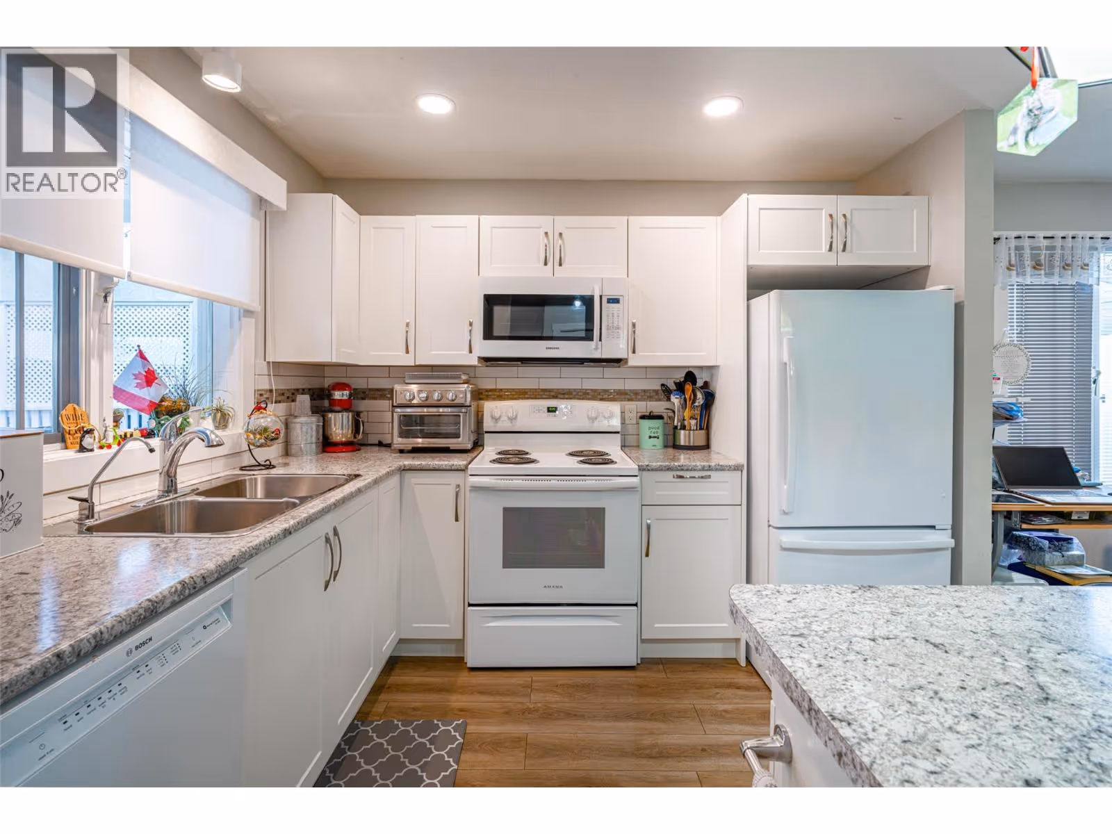 Nicely updated townhome in the highly desirable 55+, Spruce Landing. This 2-bedroom, 2-bathroom home features a bright, open-concept layout with a modern kitchen showcasing stylish cabinetry, center island and new appliances. The spacious living room opens directly to a private, fully fenced backyard and covered patio—perfect for relaxing or entertaining.The primary suite includes a 4-piece ensuite and a walk-in closet, while a second bedroom, full bathroom, and convenient main floor laundry complete the main level. Downstairs offers a large family room for added living space, and lots of room for storage. Recent updates include newer central A/C, washer and dryer, and upgraded Pex plumbing. A covered parking space and neatly landscaped yard complete this charming and move-in ready home. Be sure to check out the virtual tour and don't miss this great opportunity. Call your agent today to set up a private viewing. (id:58842)