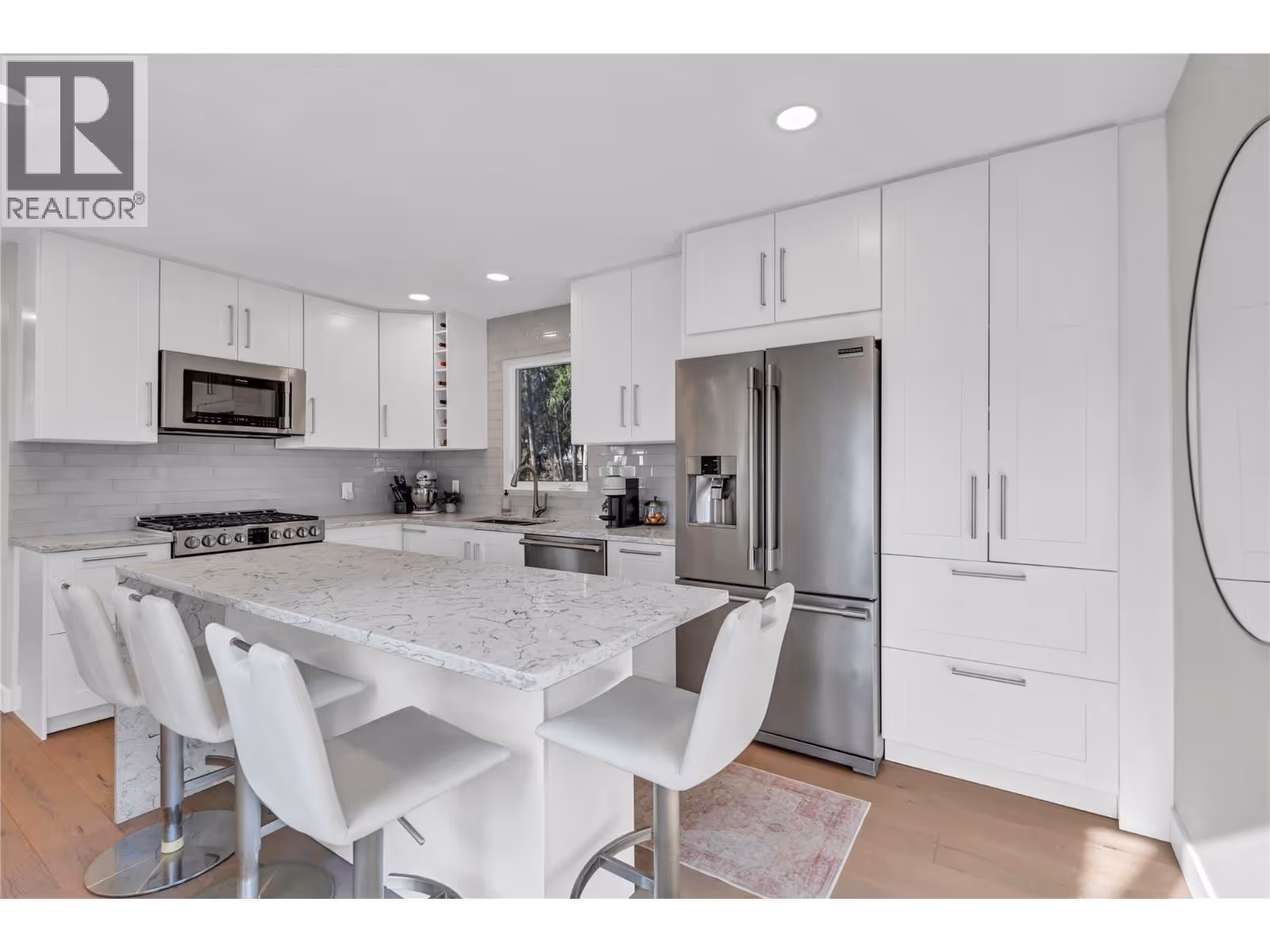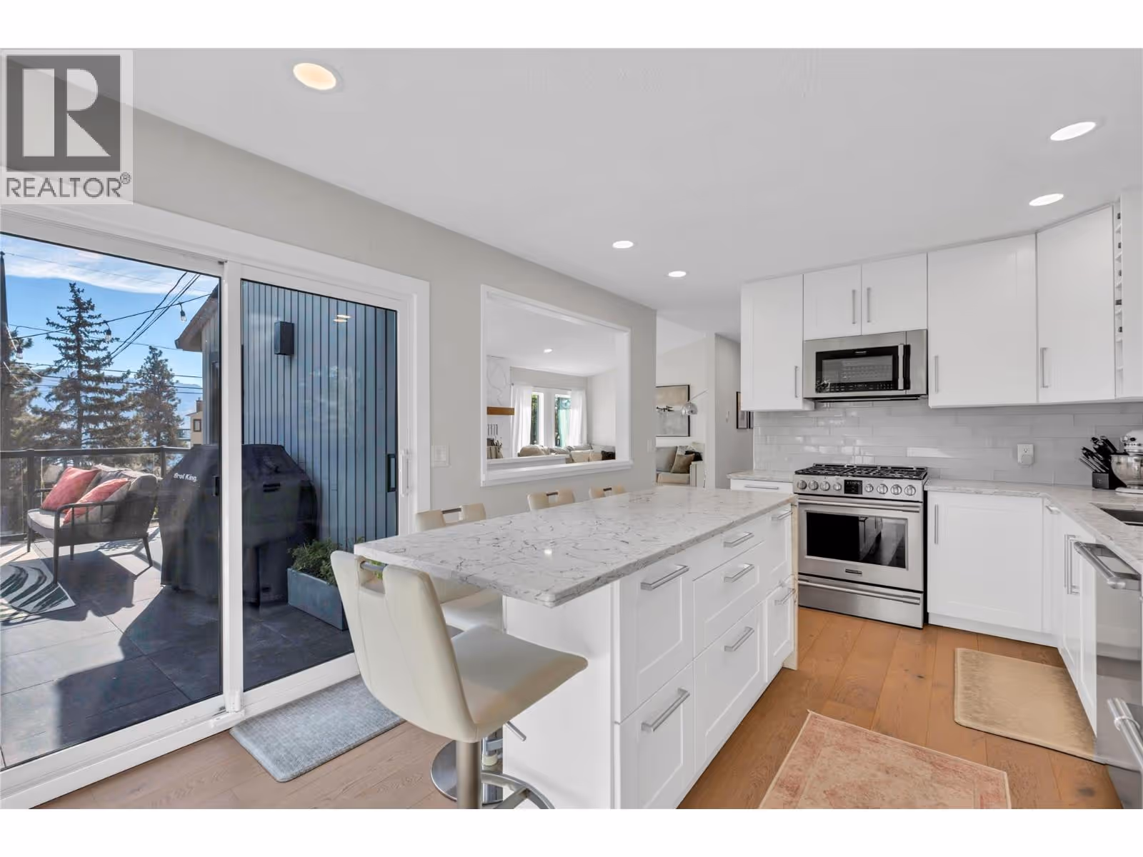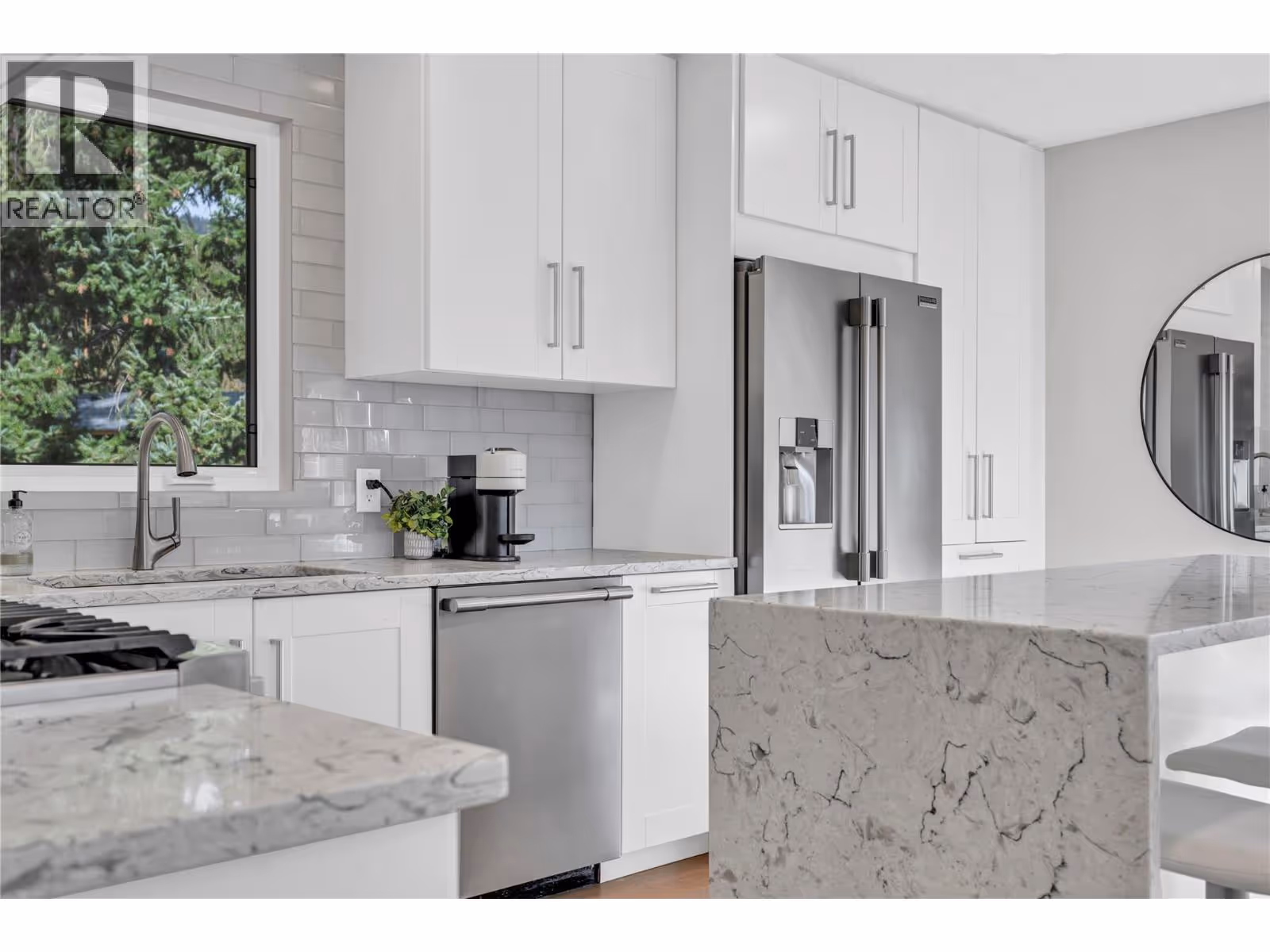 Welcome to Peachland living just minutes from the beach, boardwalk, cafés and parks! This 3 bedroom, 3 bathroom, move-in ready home offers peek-a-boo lakeviews and has been extensively renovated throughout. As you walk in, you are welcomed by natural light filling the home. The upper level features an open living and dining room, updated kitchen with quartz countertops, waterfall island, gas range and stainless appliances. In the primary bedroom wake up to a peek-a-boo lakeview from laying in bed, functional closet organizer and a spa-like ensuite with spacious walk-in shower and dual sinks. One additional bedroom on the upper level and full bathroom. Lower level offers a spacious rec room with built-in storage and electric fireplace, bedroom, bathroom, and a versatile mudroom/laundry with direct access to the flat private, landscaped .26 acre lot. Enjoy Okanagan living on the rebuilt deck with glass railings, hydrapressed tile and gas BBQ hookup. Attached garage and plenty of outdoor open parking. New windows, doors, flooring, paint, exterior paint, kitchen, bathrooms, garage door system and more—simply move in and enjoy! Ask for the full list of updates and book your showing today. Check out the listing website https://snap.hd.pics/3904-Dryden-Rd-1 (id:58842)