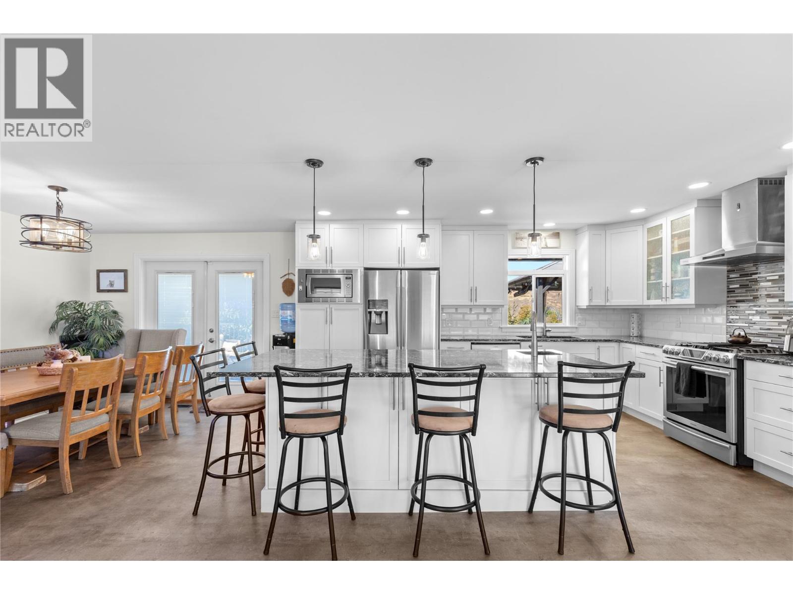 Welcome home! This move-in ready 5 bedroom, 3 bathroom plus den residence provides exceptional space for a growing family. Extensively updated in 2018, it showcases a bright, open concept kitchen, dining and living area. Ideal for entertaining, the chef’s kitchen features quartz counters, modern white soft-close cabinetry, a gas range, and an oversized island with bar seating. The sunlit living room offers hardwood floors, plenty of room for furnishings, and a cozy wood-burning fireplace. The main bath includes dual sinks, heated tile floors, and a tiled shower. Down the hall sits one of the 5 bedrooms, while the spacious Primary retreat at the end includes a spa-like ensuite with heated floors, walk-in shower, oversized soaker tub, built-in vanity and private water closet. French doors open to a serene patio and hot tub, the perfect spot to unwind while enjoying the view. The expansive upper deck is ideal for outdoor dining or lounging, with direct access from the dining room and Primary suite. Downstairs, a generous recreation room with gas fireplace, three additional bedrooms, laundry with 3-piece bath, and a den/office with separate entrance provide endless options. A covered lower patio extends your living space outdoors, backyard is low-maintenance with synthetic turf and rock scaping. With ample storage, versatile spaces, and a layout that balances comfort with style, this home is truly move-in ready. Book your private showing today and start imagining life here! (id:58842)