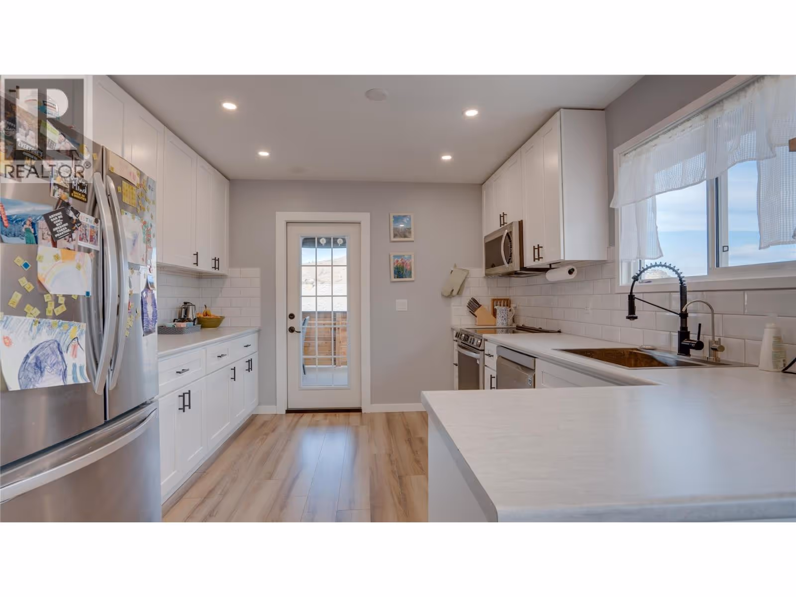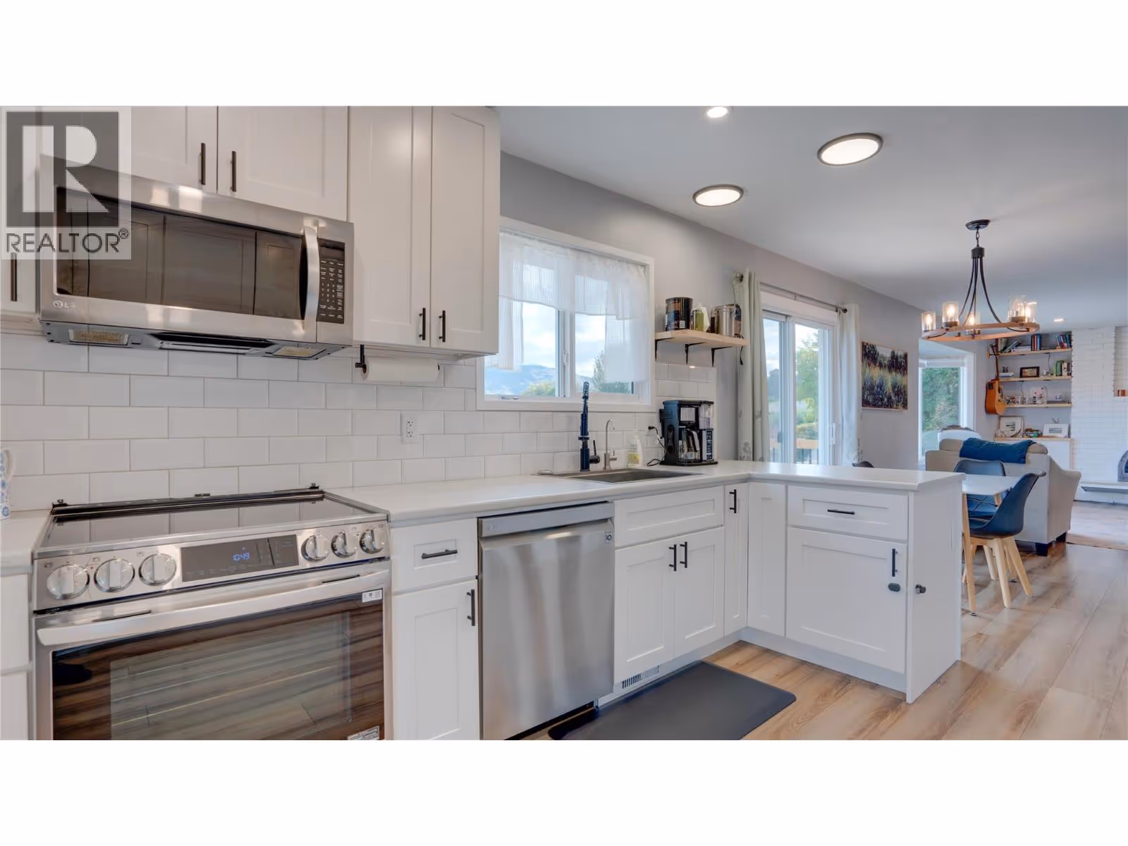 Million dollar view at an affordable price. The lovely modernised Vernon BC home is perfect for the first time home owners looking for a mortgage helper and plenty of room to entertain. Upstairs is a 3 bedroom 1.5 bathroom home with plenty of recent renovations. A new kitchen, flooring and windows give a modern feeling to this home. Downstairs has a bonus room/bedroom depending on how you choose to use downstairs. Summer kitchen, bathroom, laundry room and separate entrance make the downstairs easy to suite if one chose to have a mortgage helper. Enjoy the stunning view of the city of Vernon and the lights of world famous Silver Star in the distance. Or spend your time on the massive 300+ square foot covered deck that also ha a stunning view of Vernon and access to the large back yard. Enjoy back on to the Mission Hill Dog Park and having your own private access to the park. Two covered parking spaces with additional parking for trailers, boats or additional vehicles. And a good size workshop off the carport for the hobbyist looking for some separate space from the home. (id:58842)